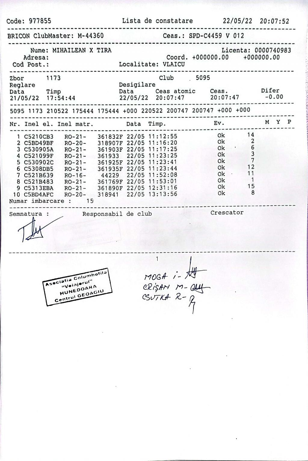 | 15 | Cioara Valentin + Andreea | HD1196 | BRAD |