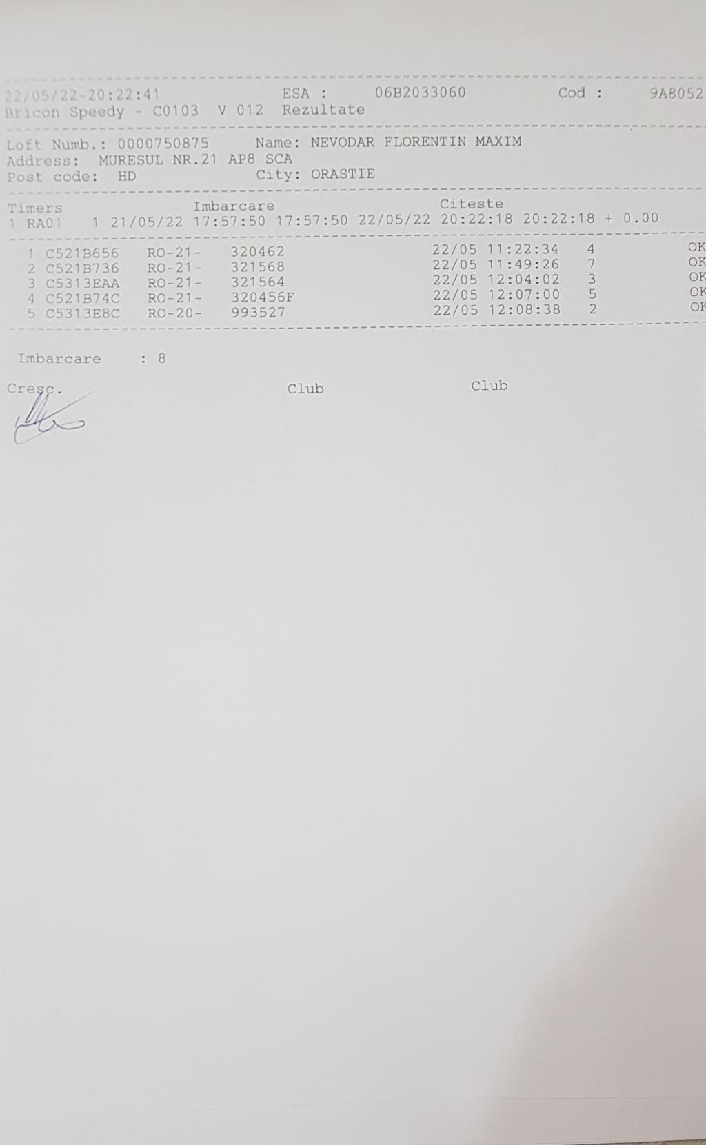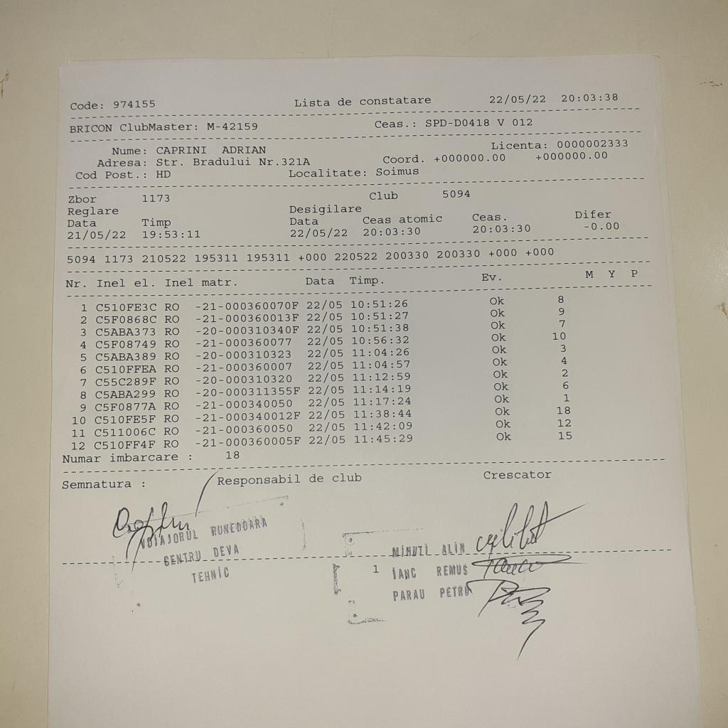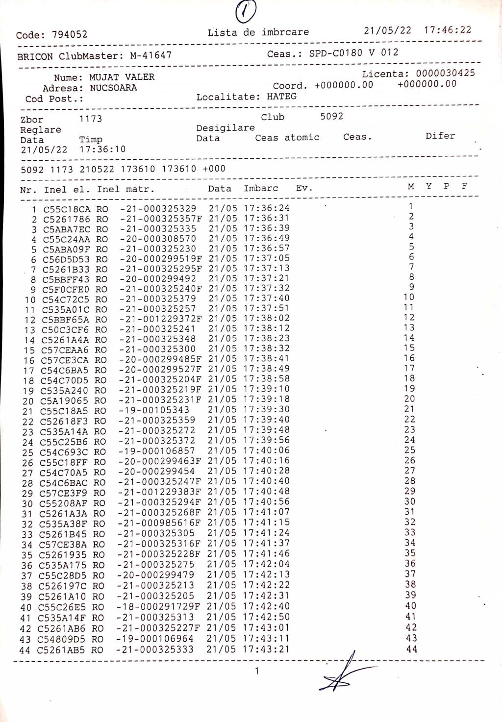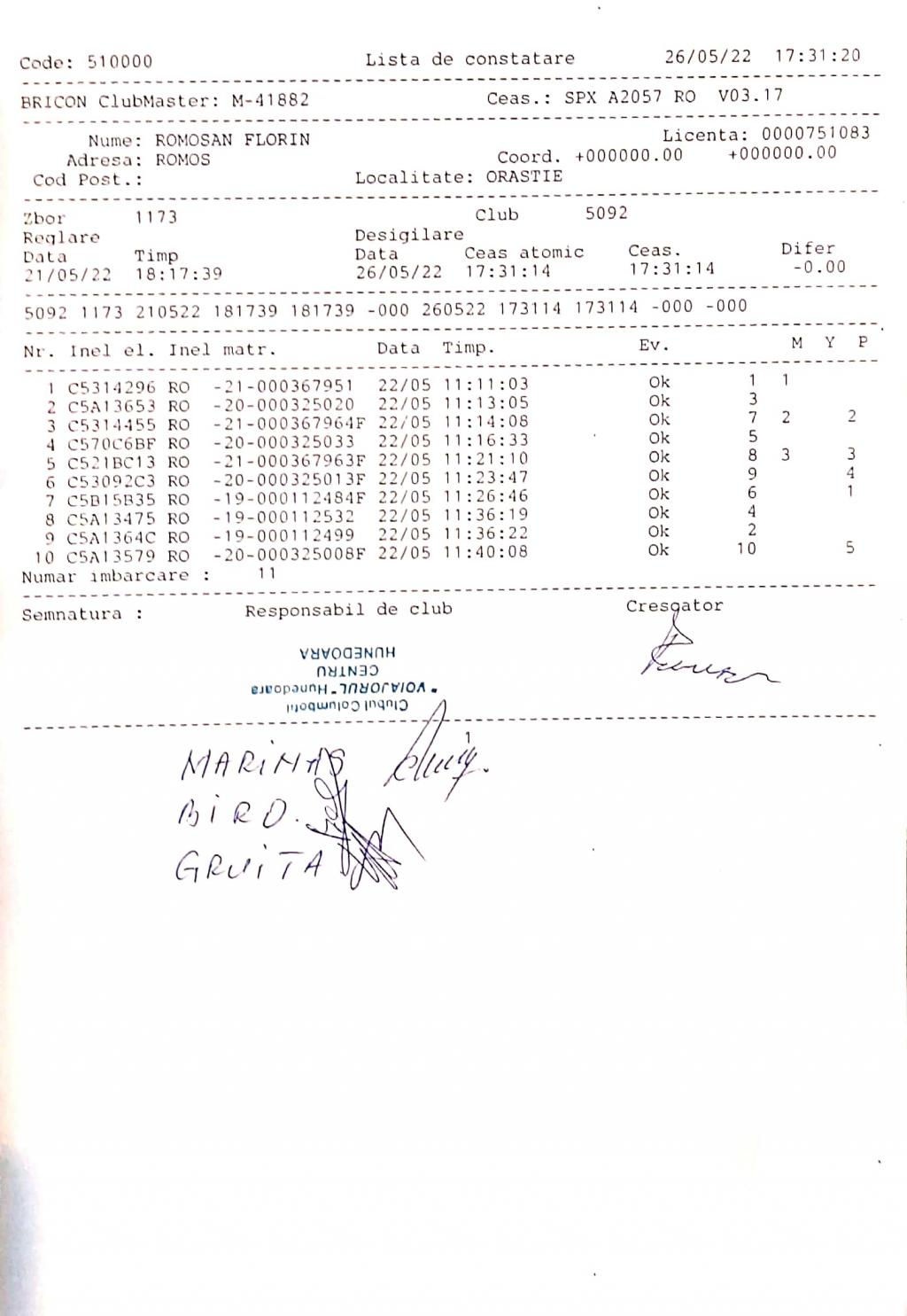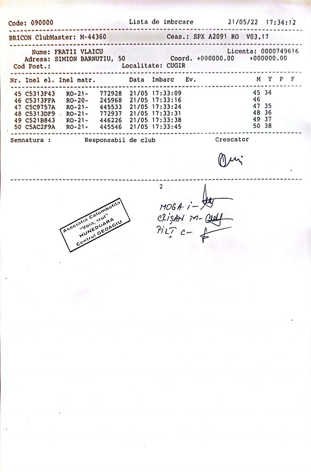 | 1 | Almasan Vasile + Ionut + Alin | HD1009 | BRAD |