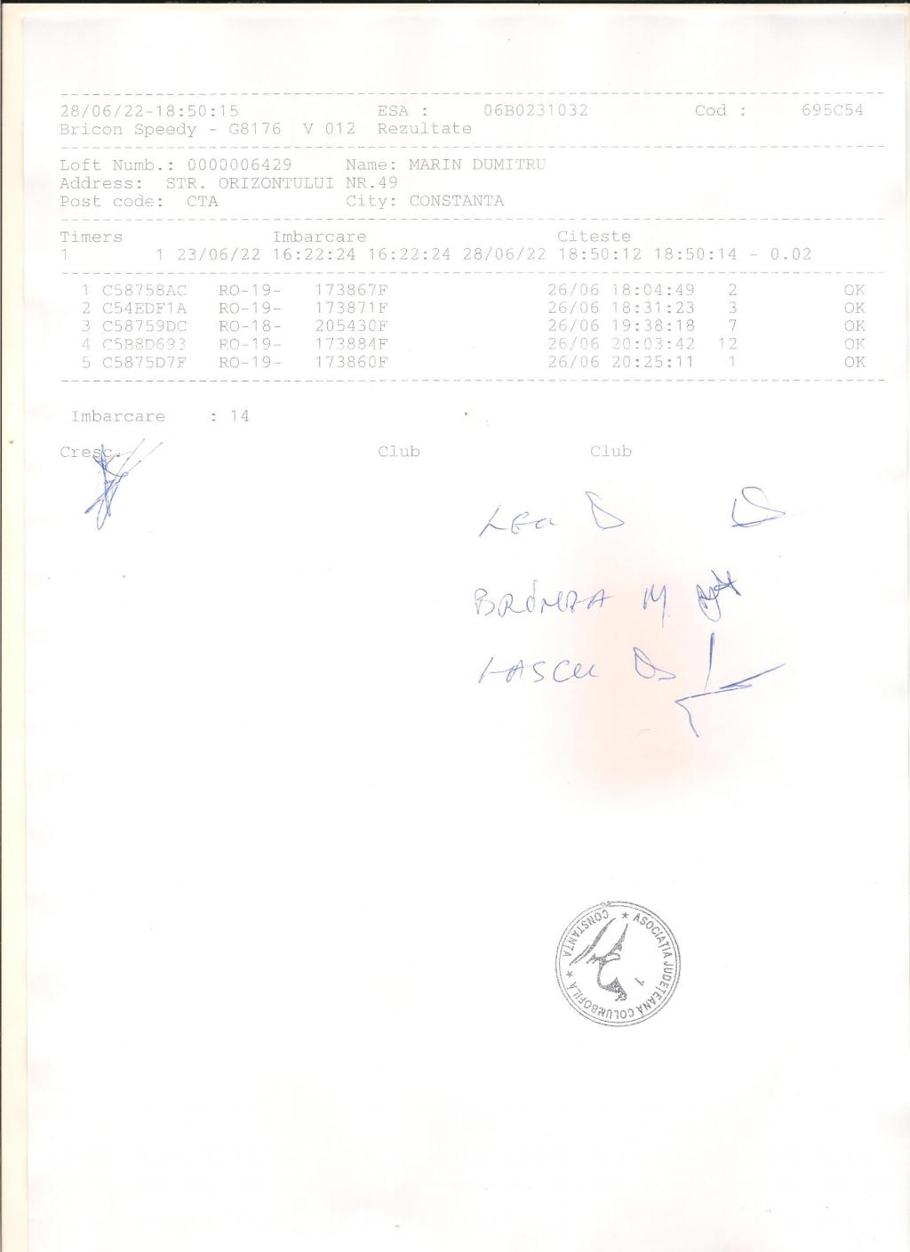 | 52 | Vartolomei Florin | CT674 | Cobadin | [IMB P0] | [DES P0] |