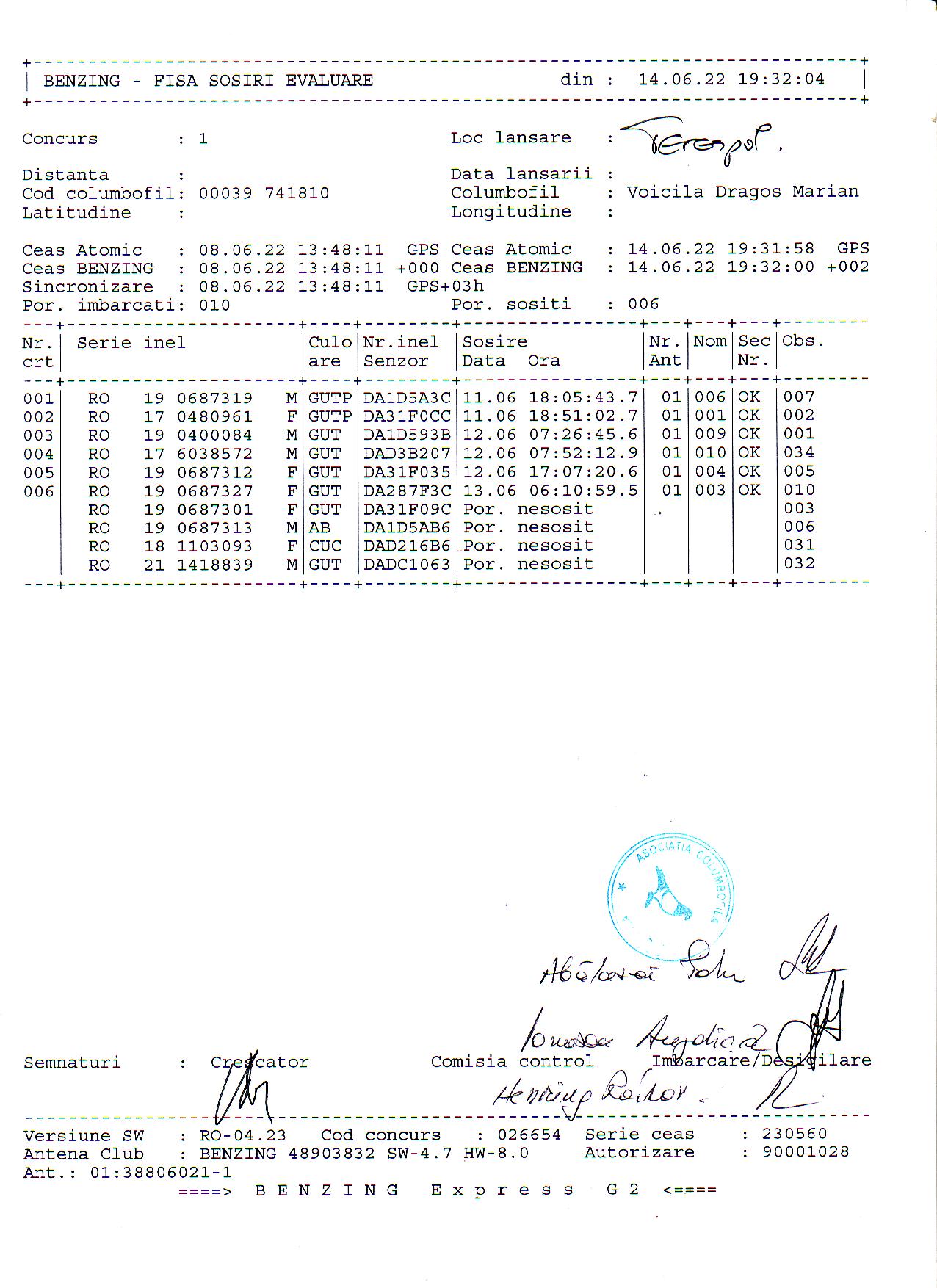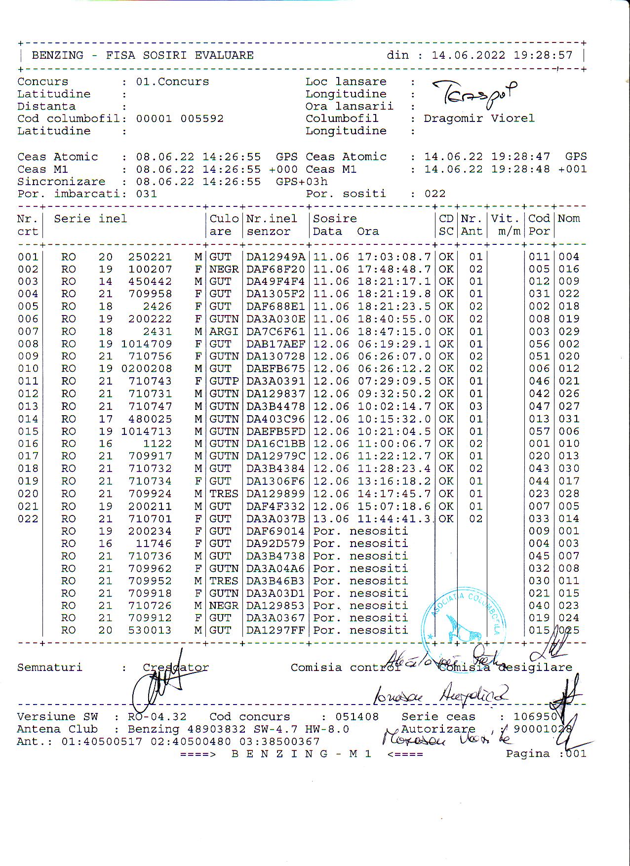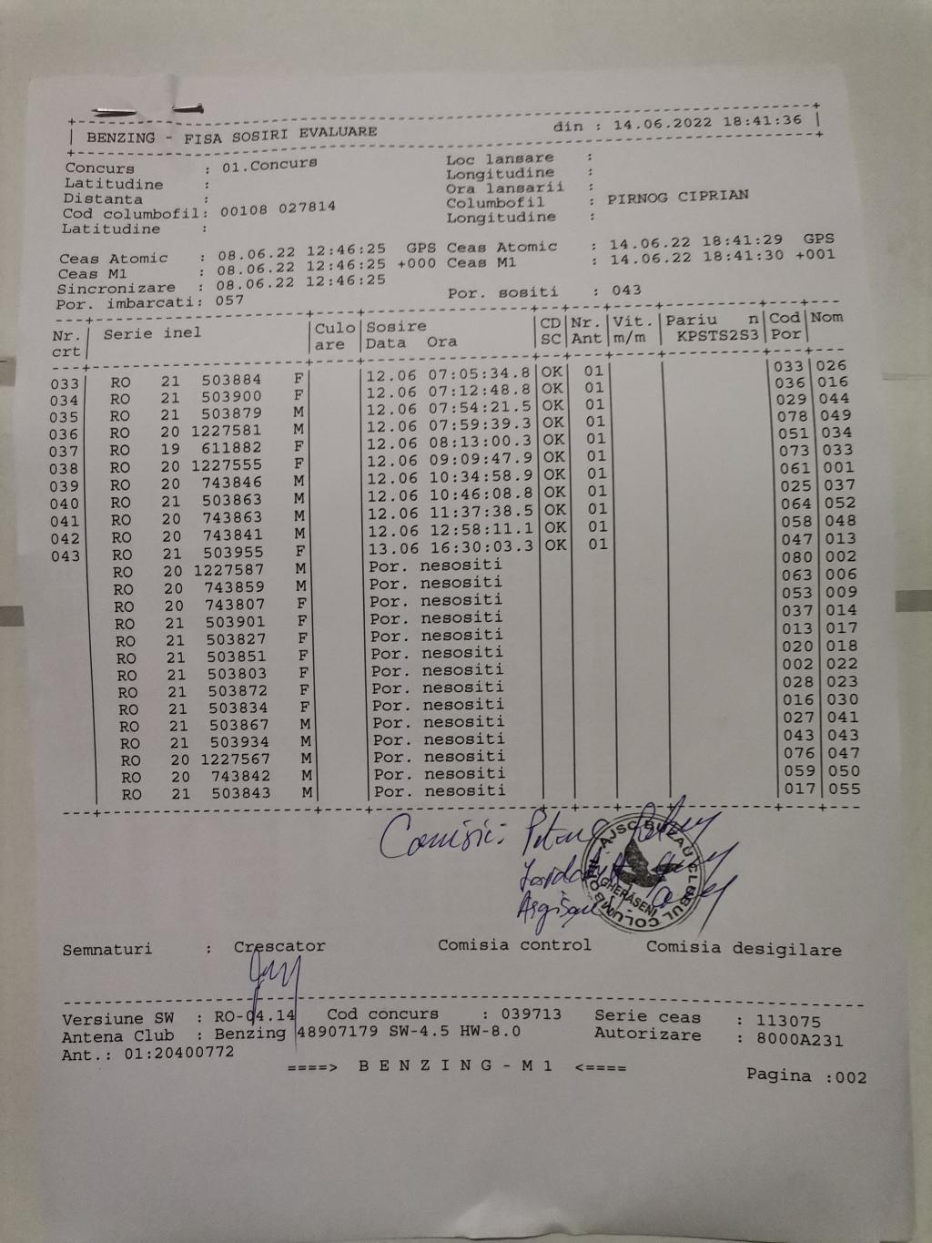| 234 | Oancea S.+ Sorescu P. | BZ9617 | Ramnicu Sarat |