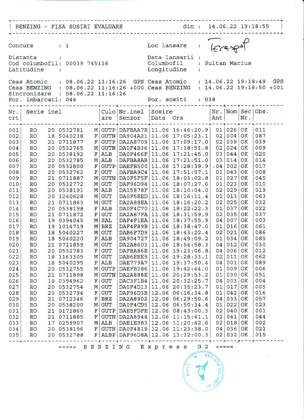 | 220 | Hotescu Alexandru | BZ9451 | Ramnicu Sarat | [IMB P0] | [DES P0] |