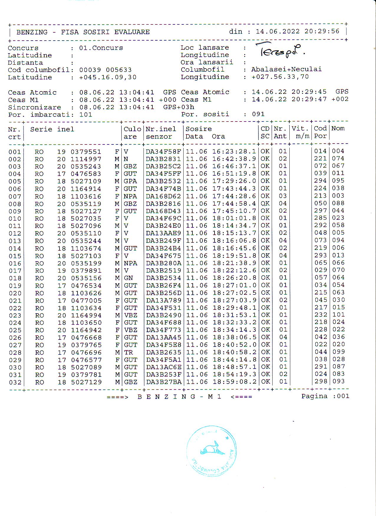 | 224 | Margarit Catalin | BZ9902 | Ramnicu Sarat | [IMB P0] | [DES P0] |