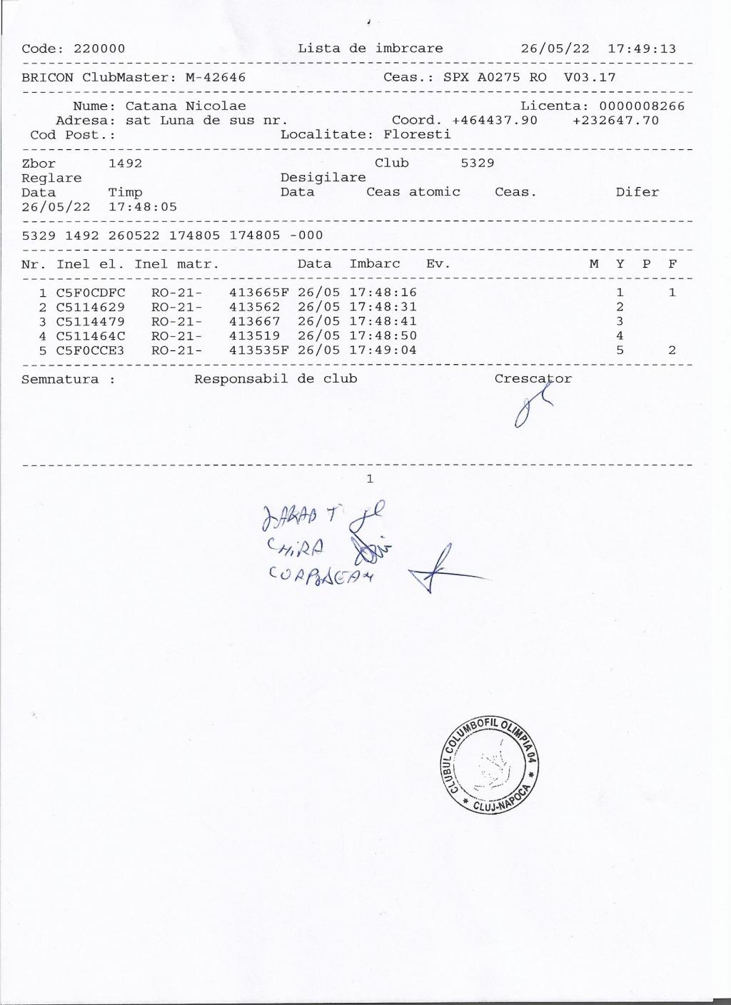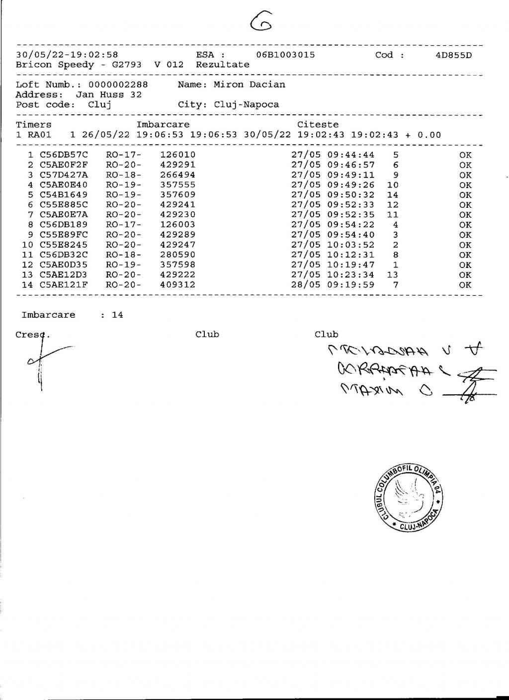 | 5 | Ilea Teodor | CJ163 | Mihai Viteazu |