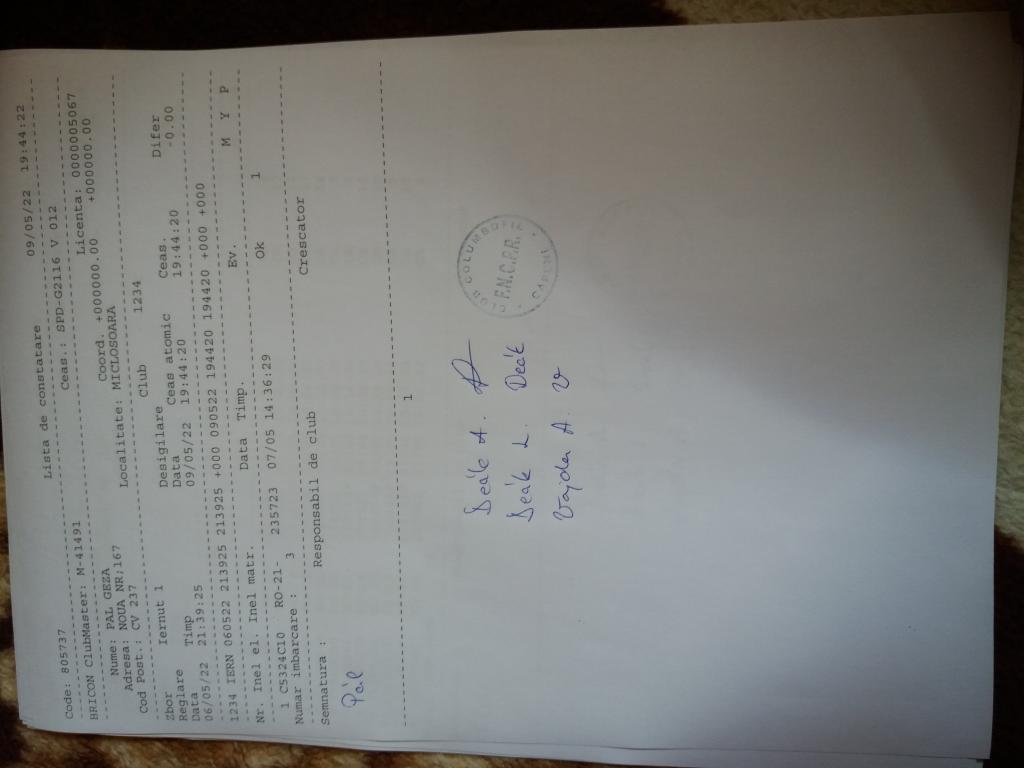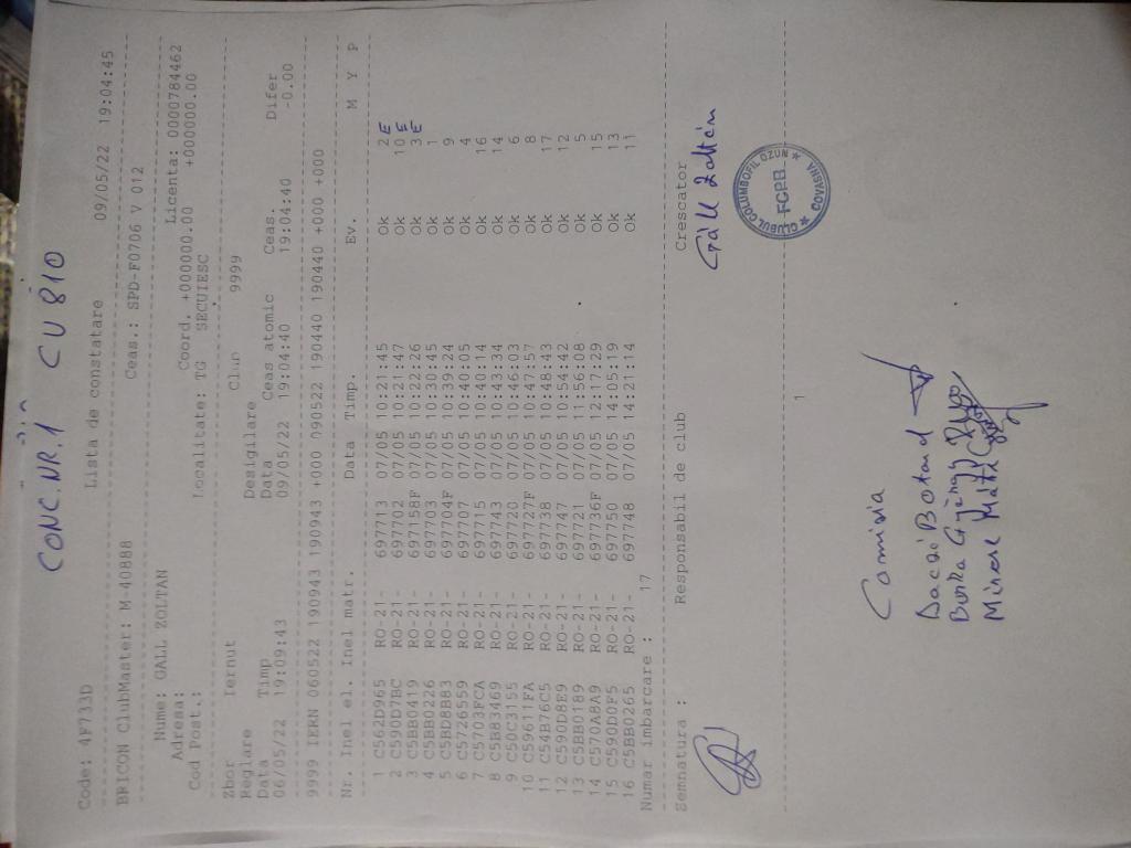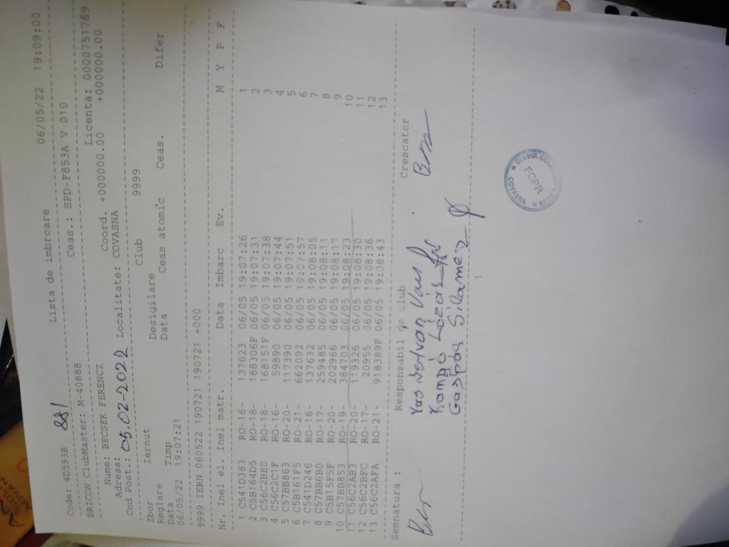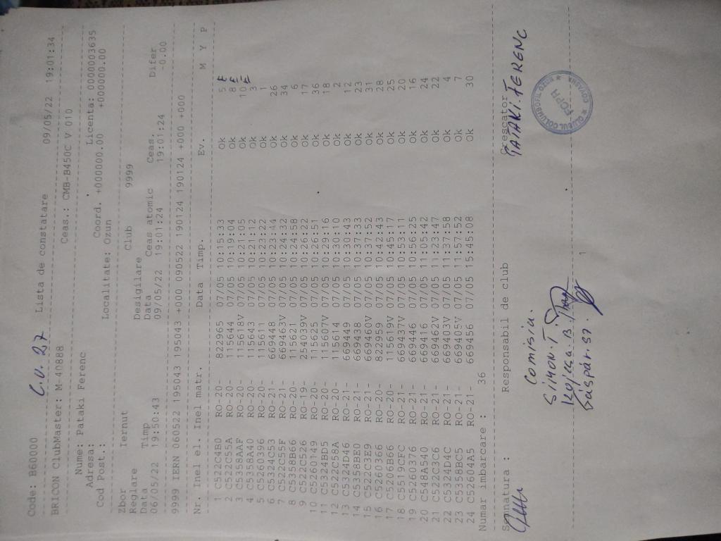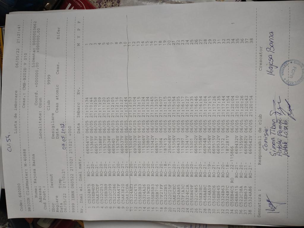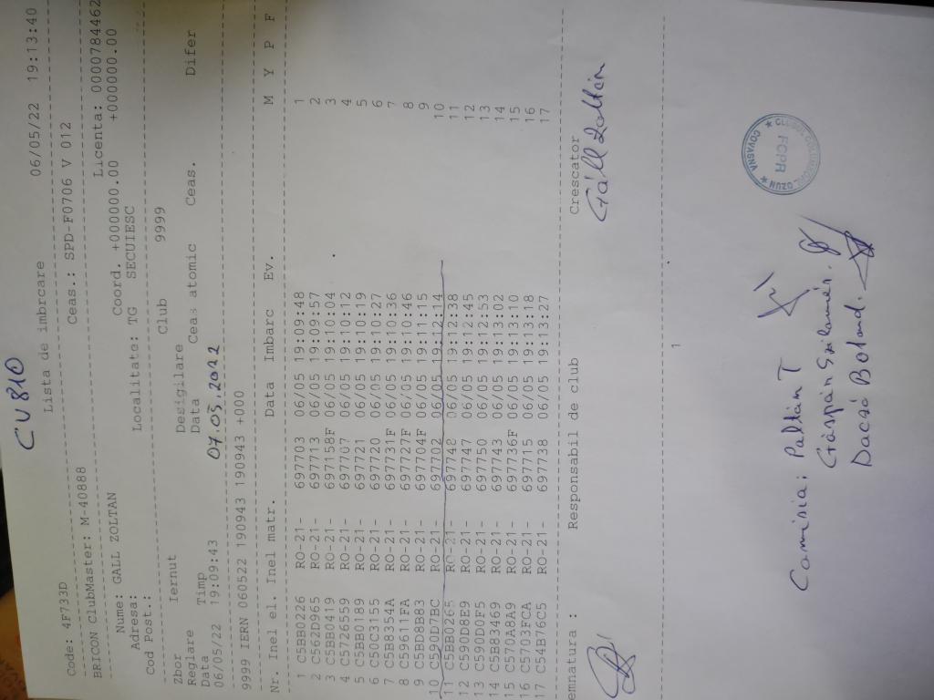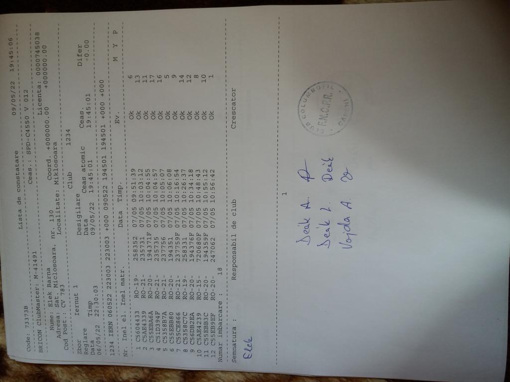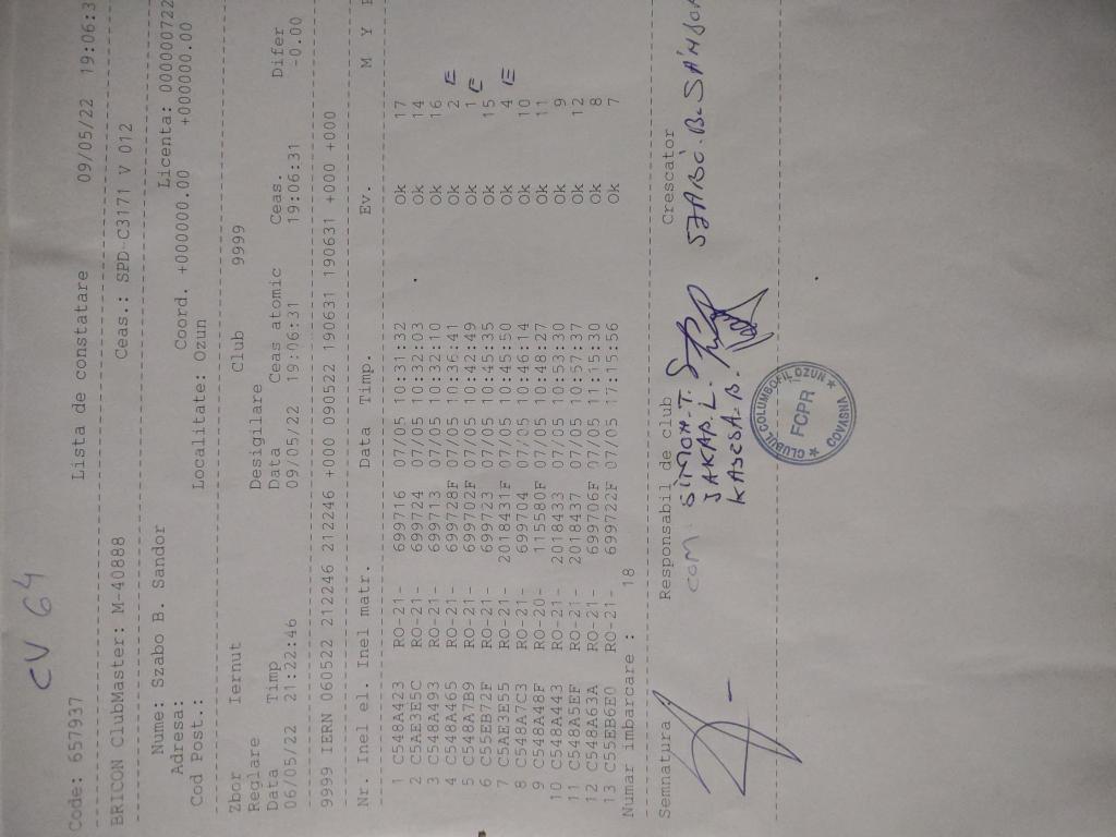 | 109 | Teglas Zoltan | CV830 | Valea Crisului | [IMB P0] | [DES P0] |