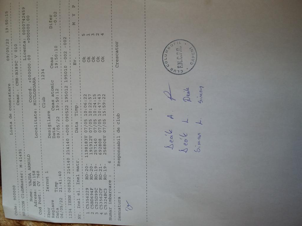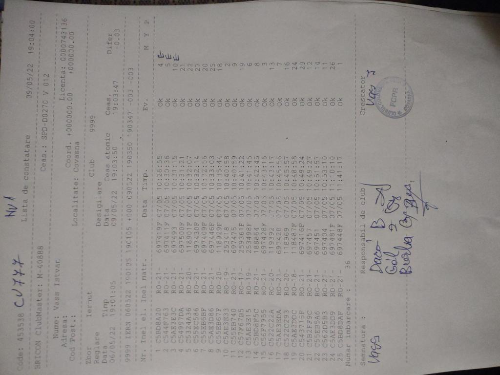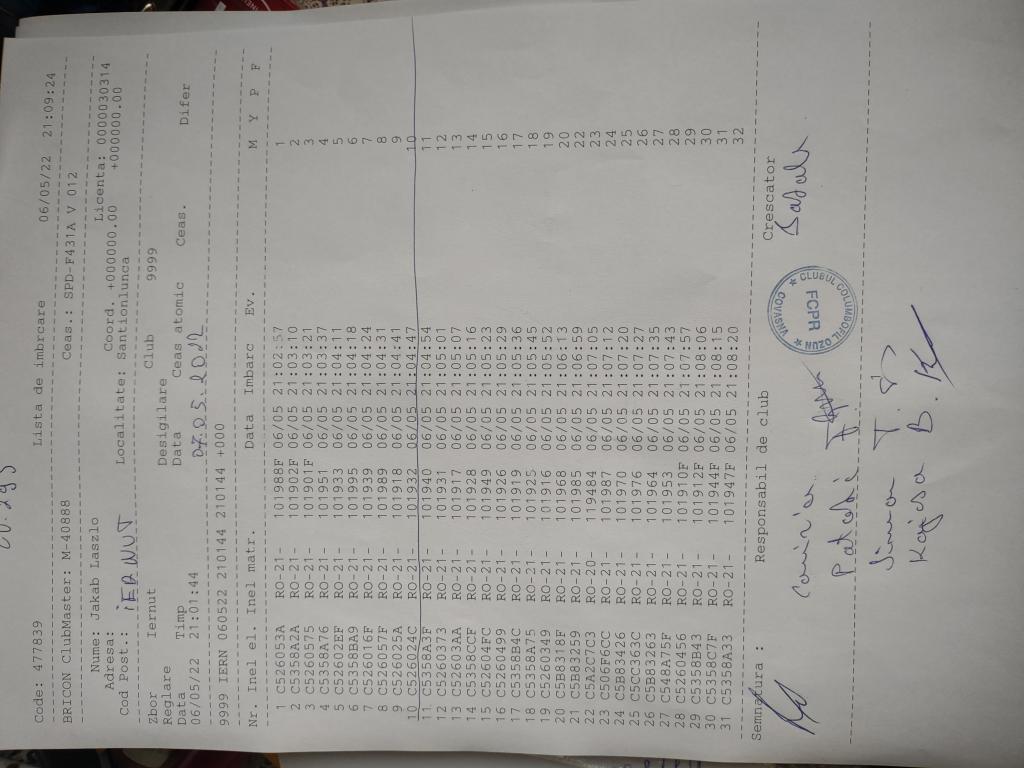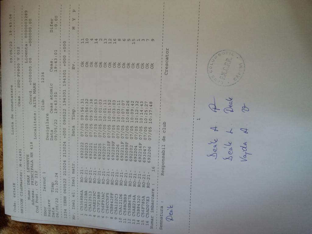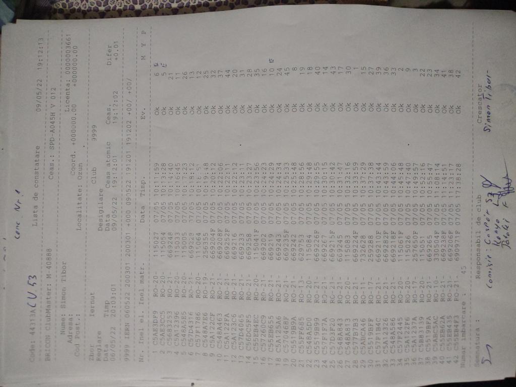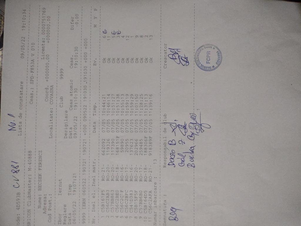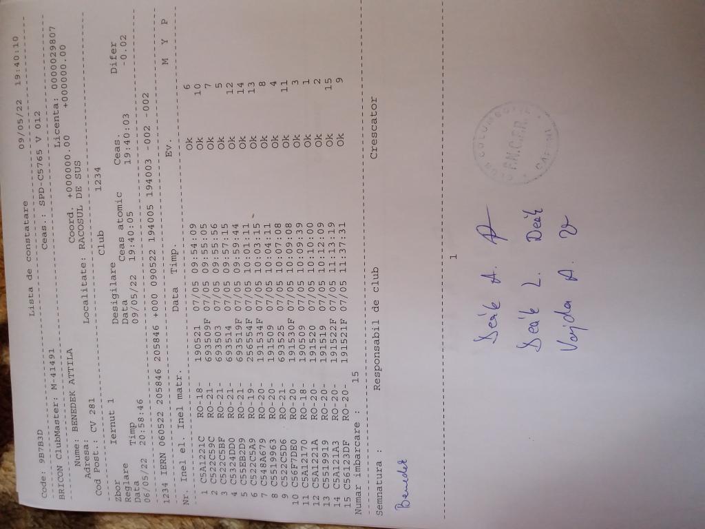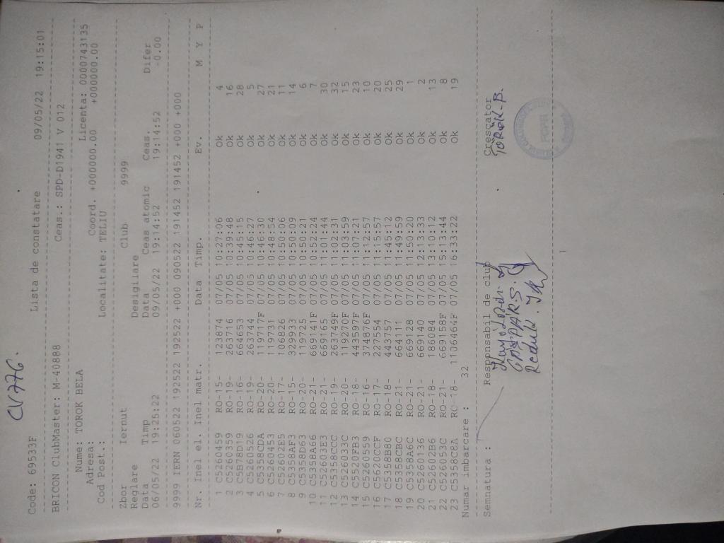 | 109 | Teglas Zoltan | CV830 | Valea Crisului | [IMB P0] | [DES P0] |