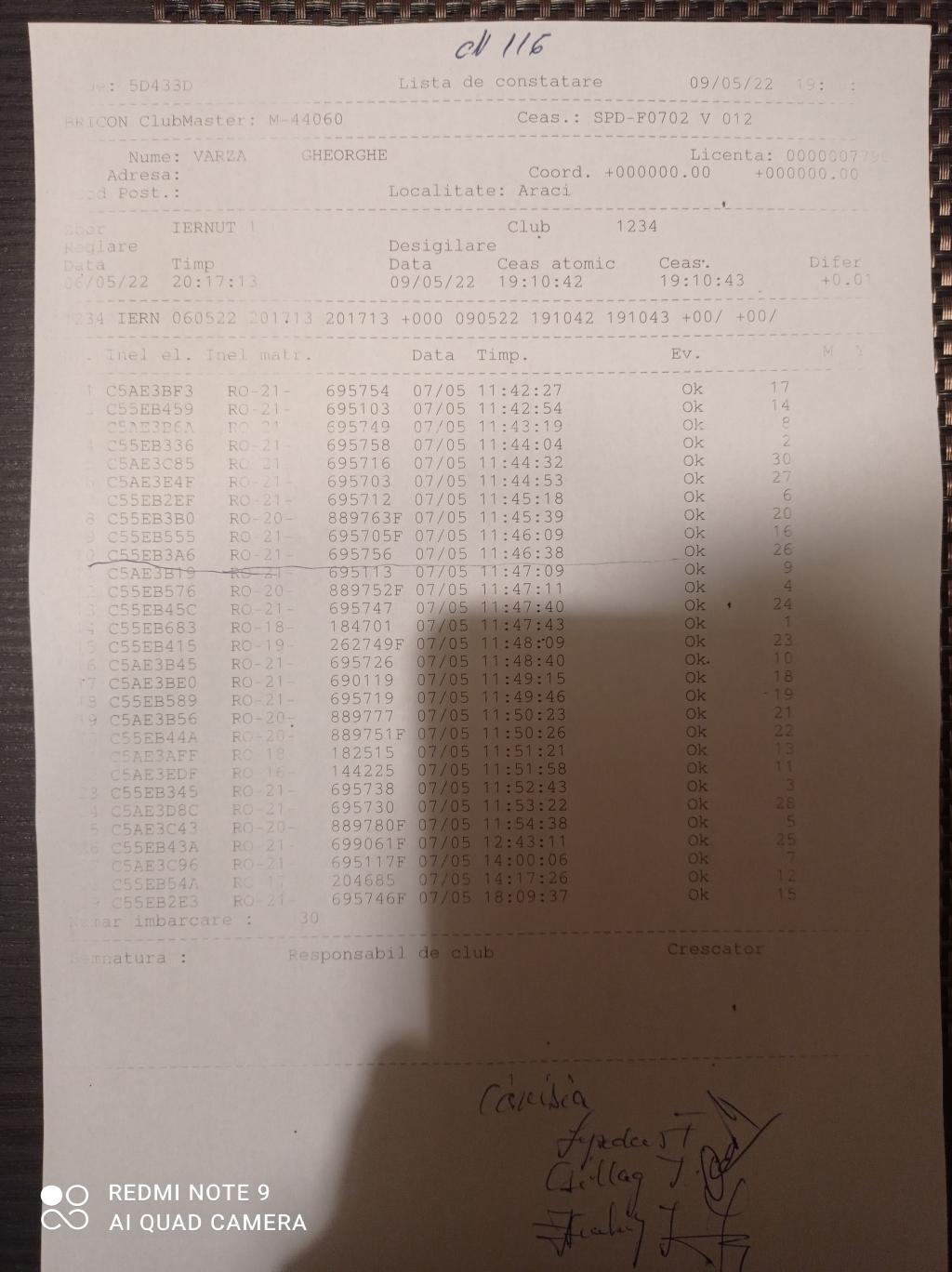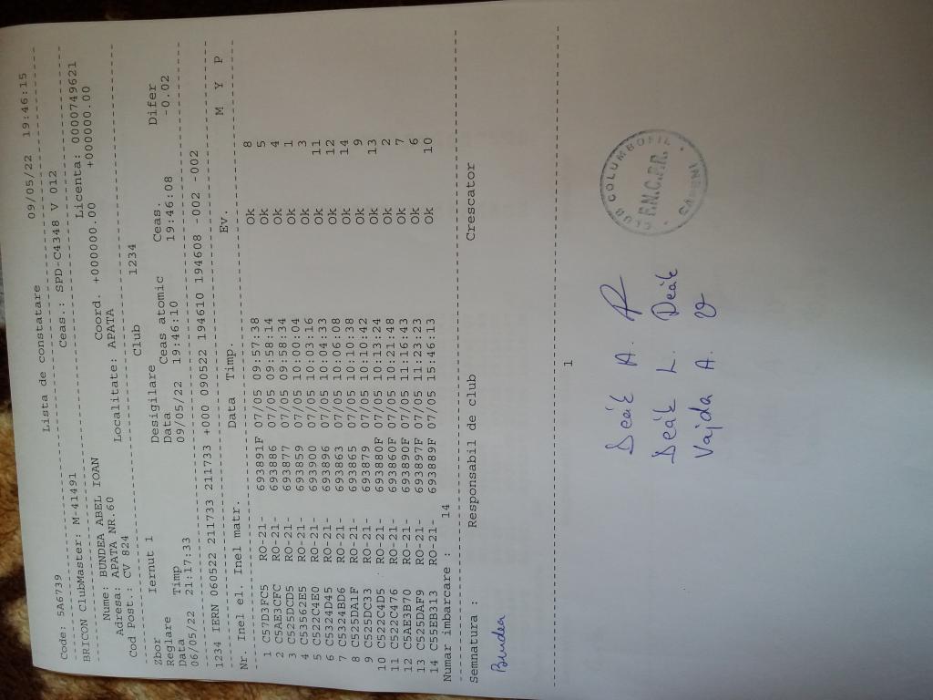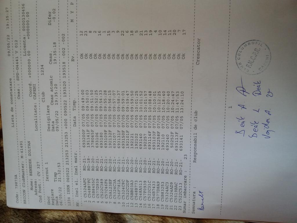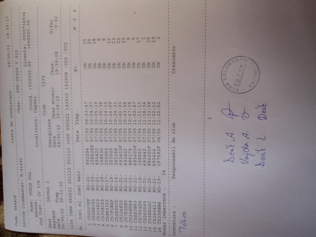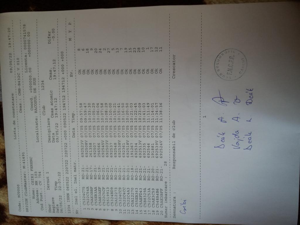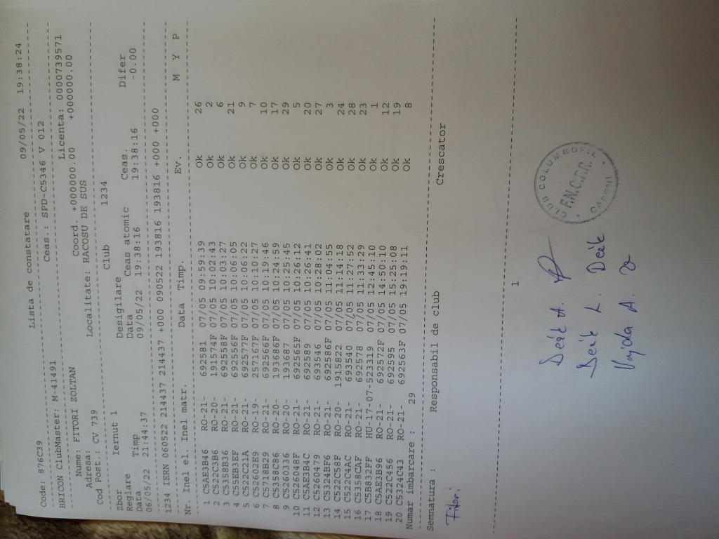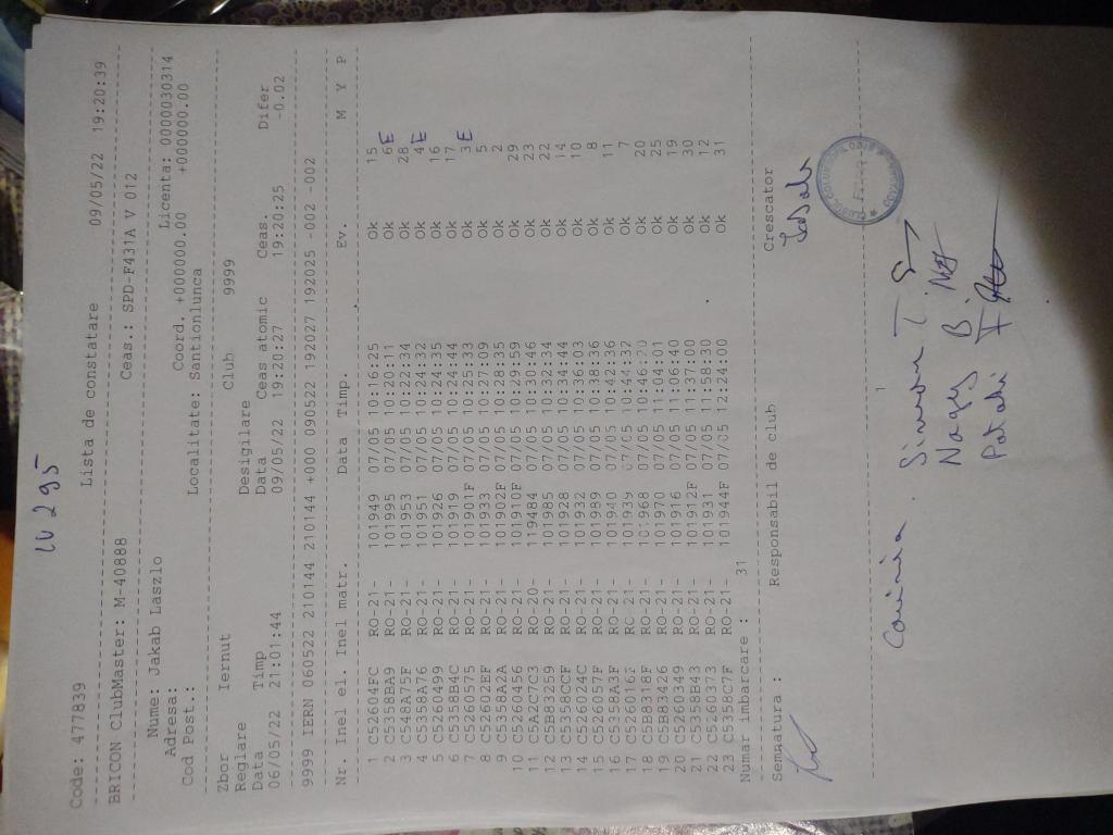 | 109 | Teglas Zoltan | CV830 | Valea Crisului | [IMB P0] | [DES P0] |