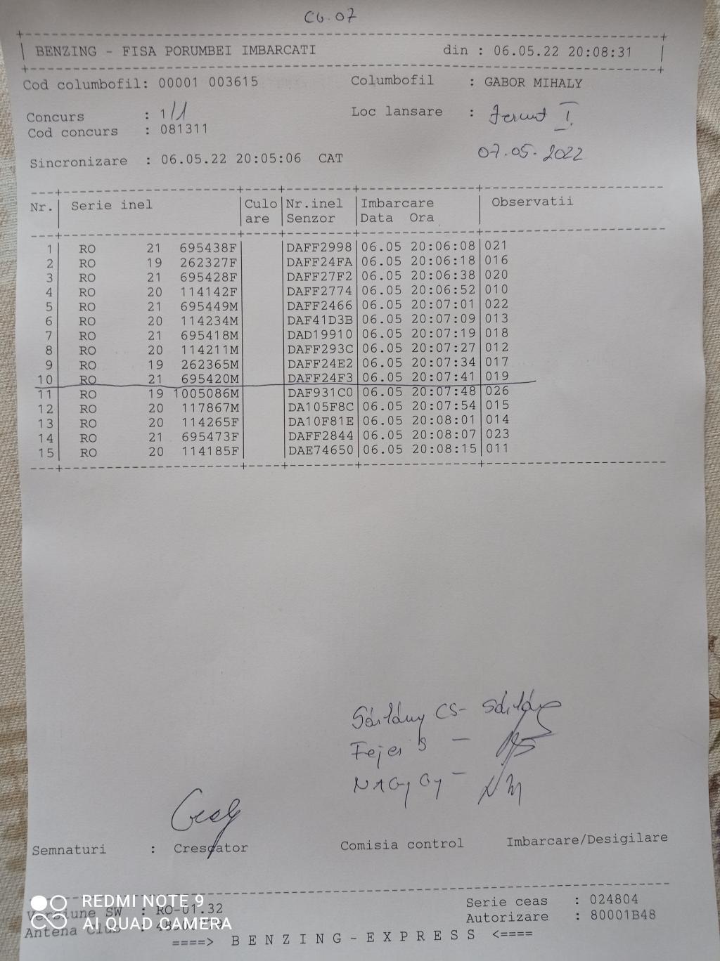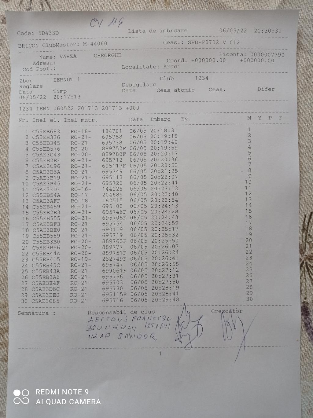 | 93 | Ban Csaba | CV796 | Valea Crisului | [IMB P0] |
