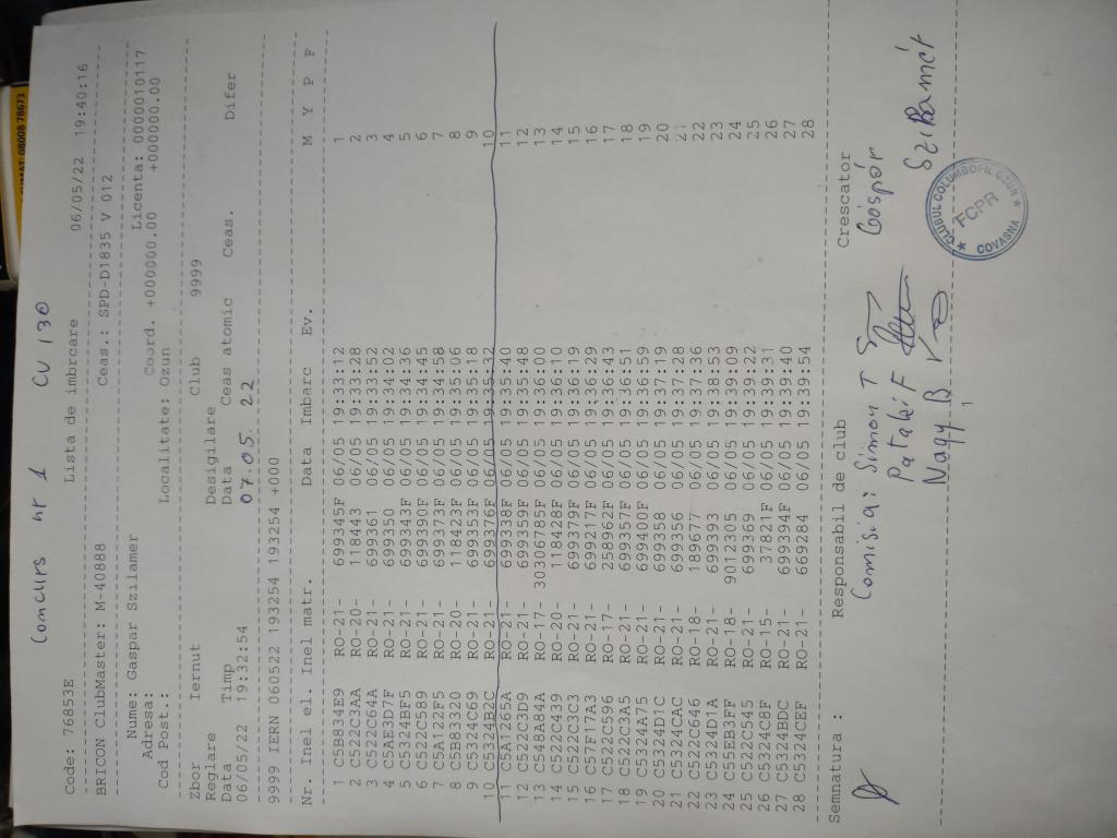 | 97 | Gabor Barna | CV821 | Valea Crisului | [IMB P0] | [DES P0] |