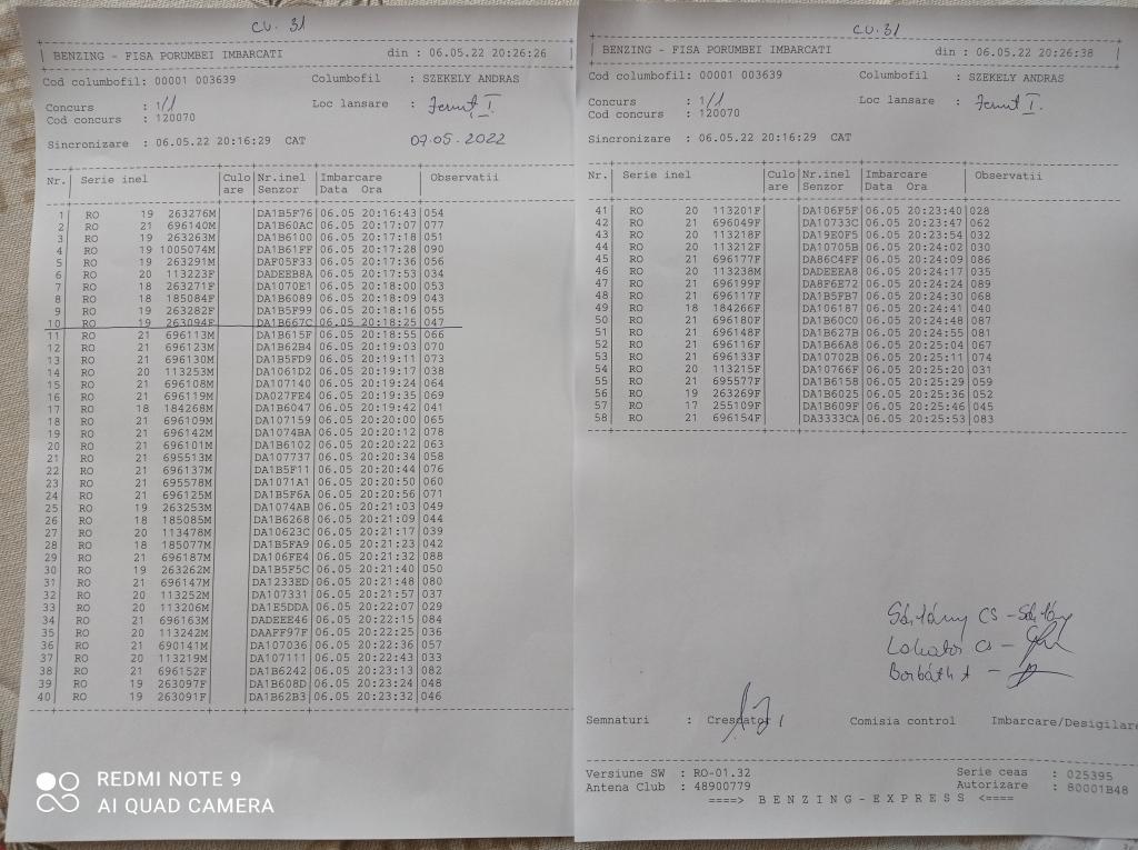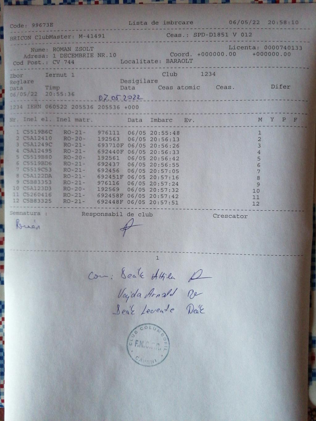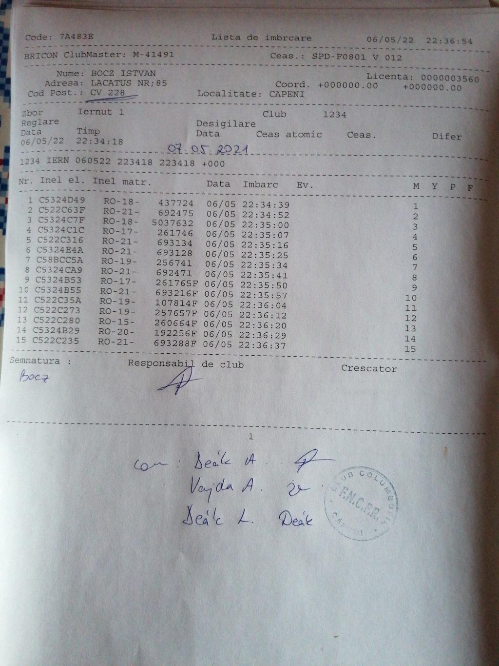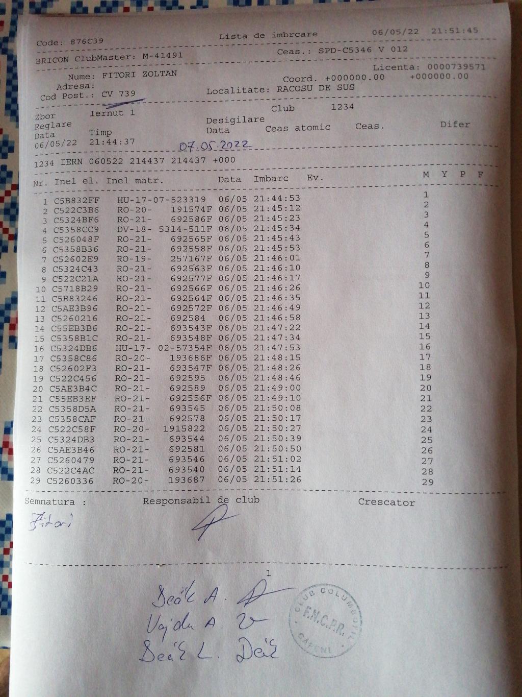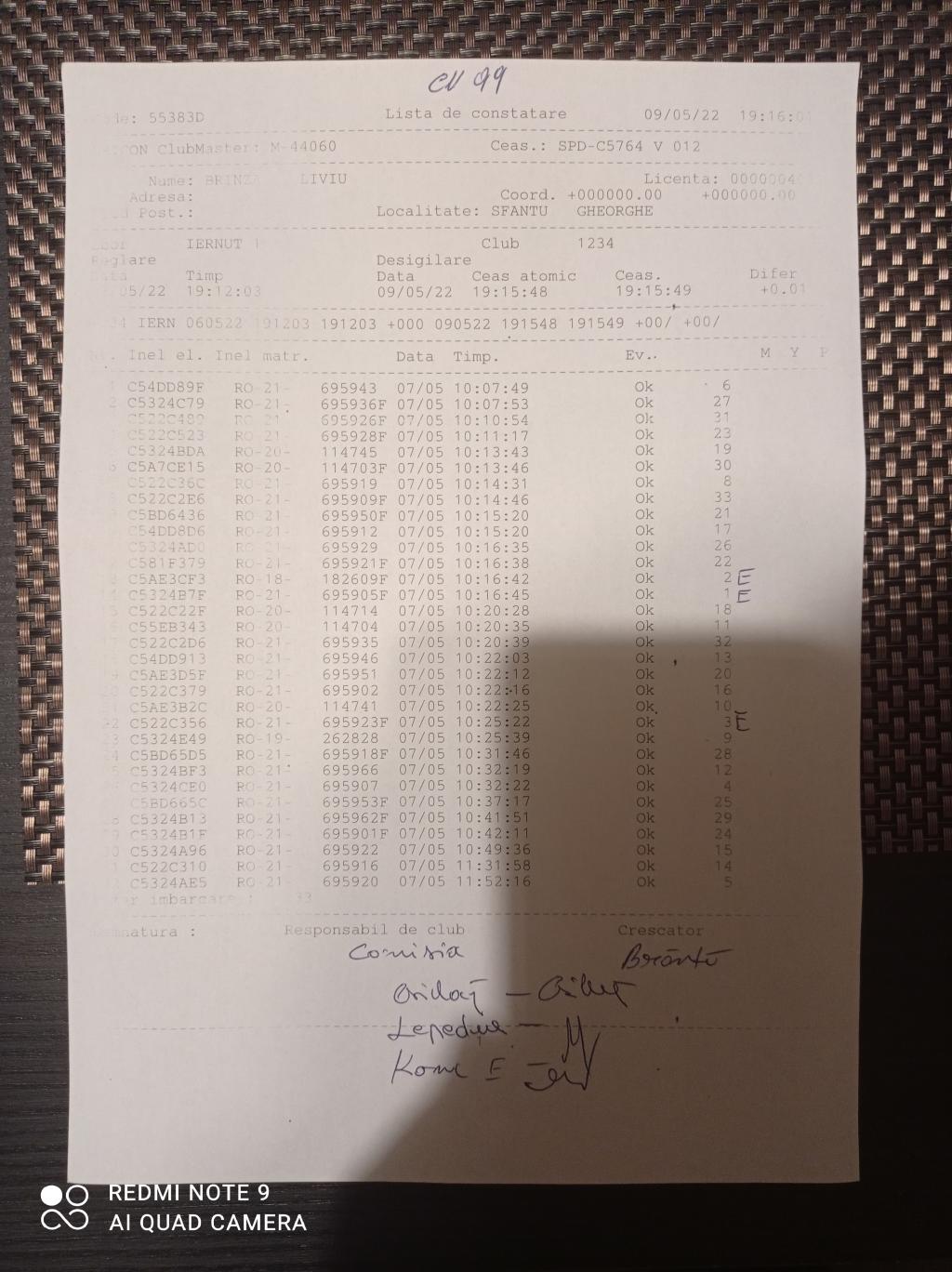 | 99 | Incze Lorand + Incze Sandor | CV779 | Valea Crisului | [IMB P0] |