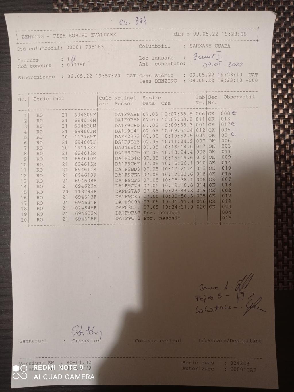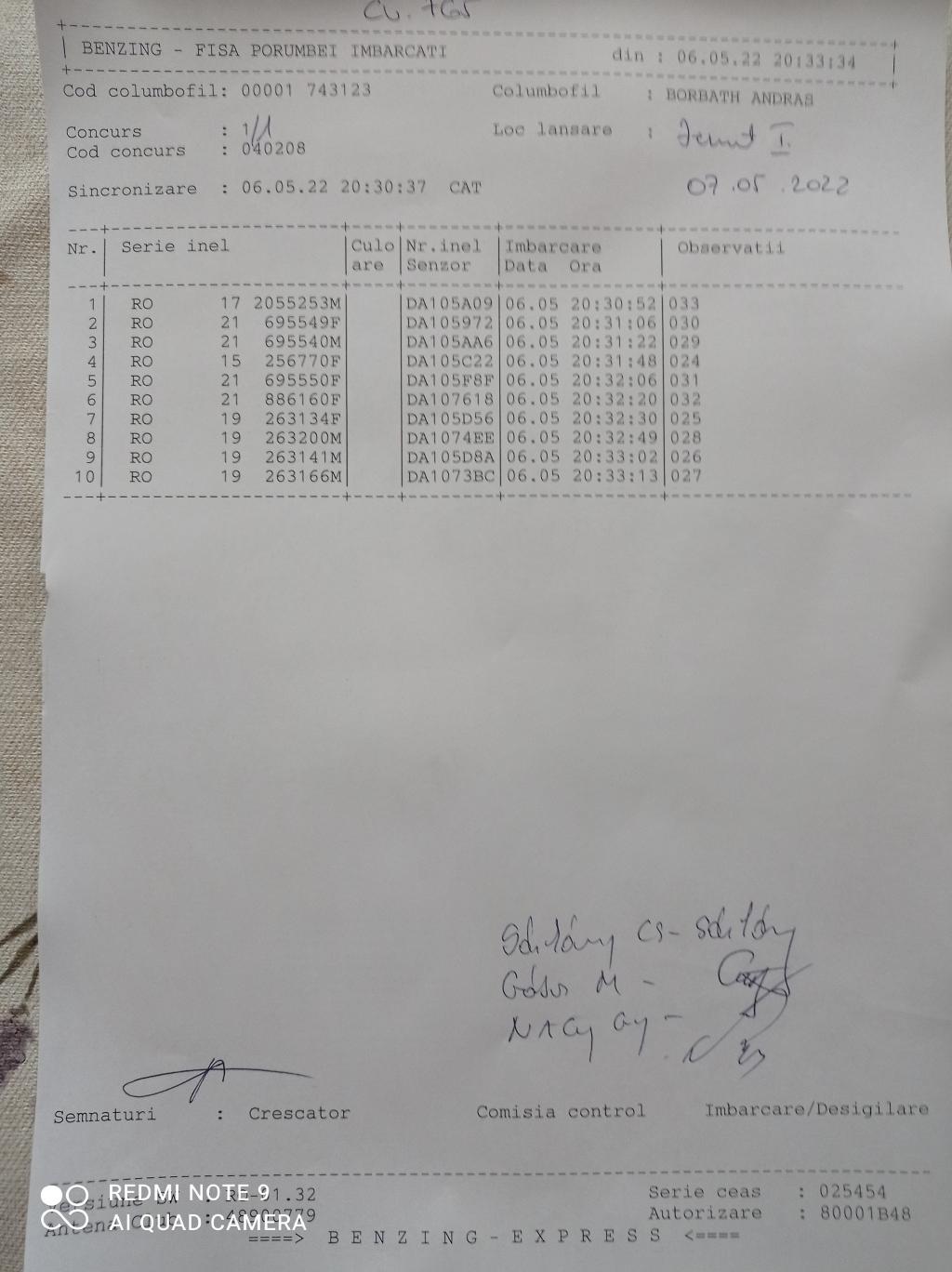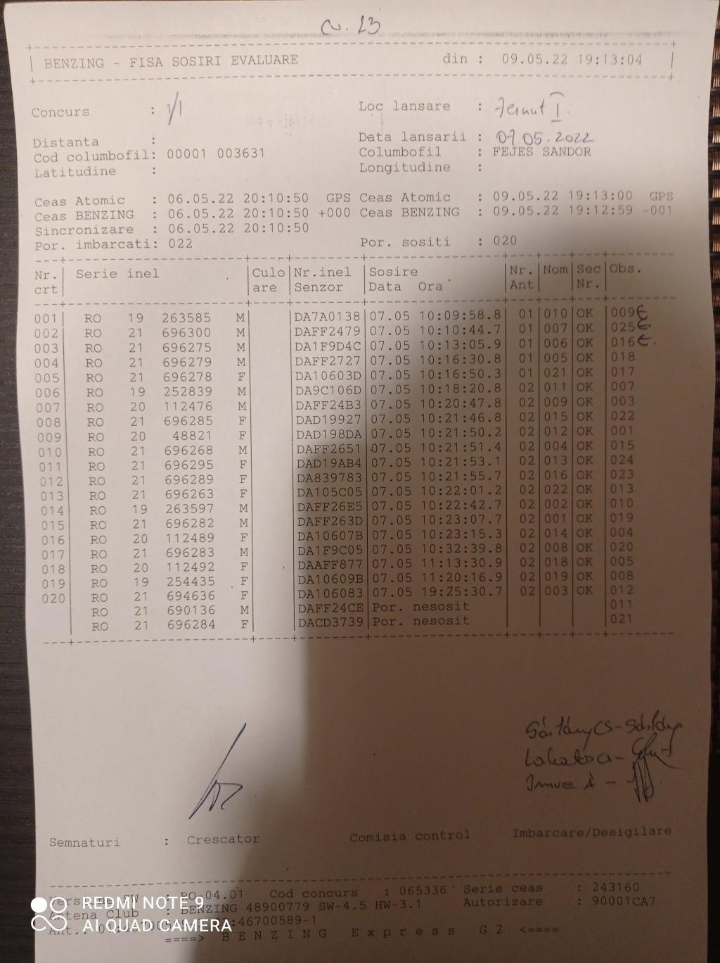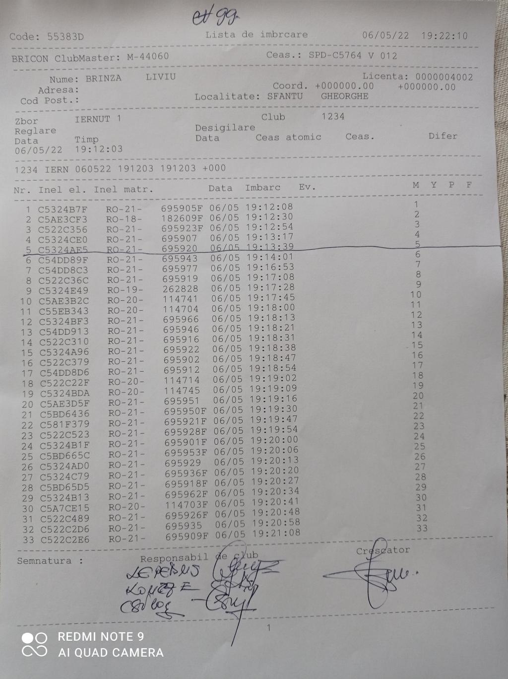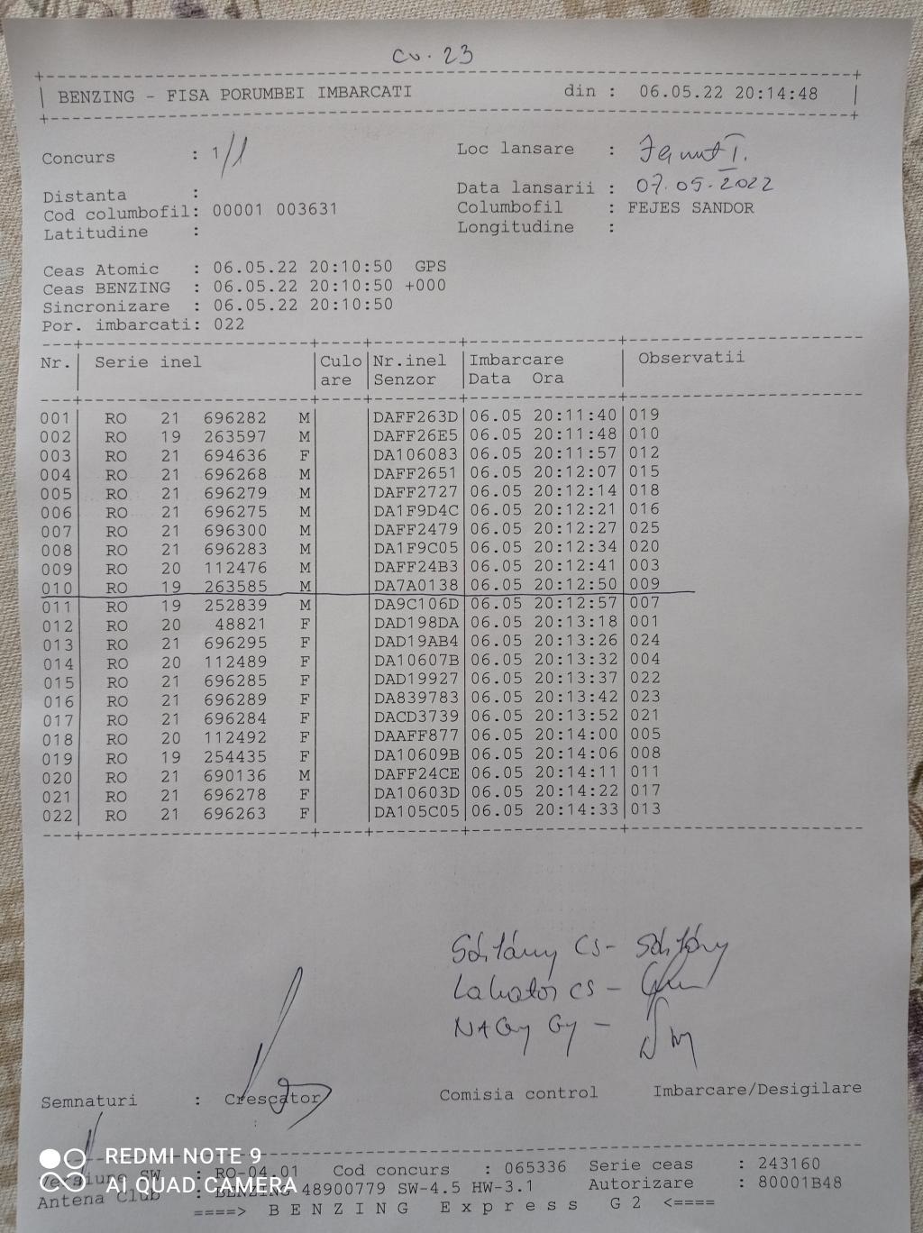 | 99 | Incze Lorand + Incze Sandor | CV779 | Valea Crisului | [IMB P0] |