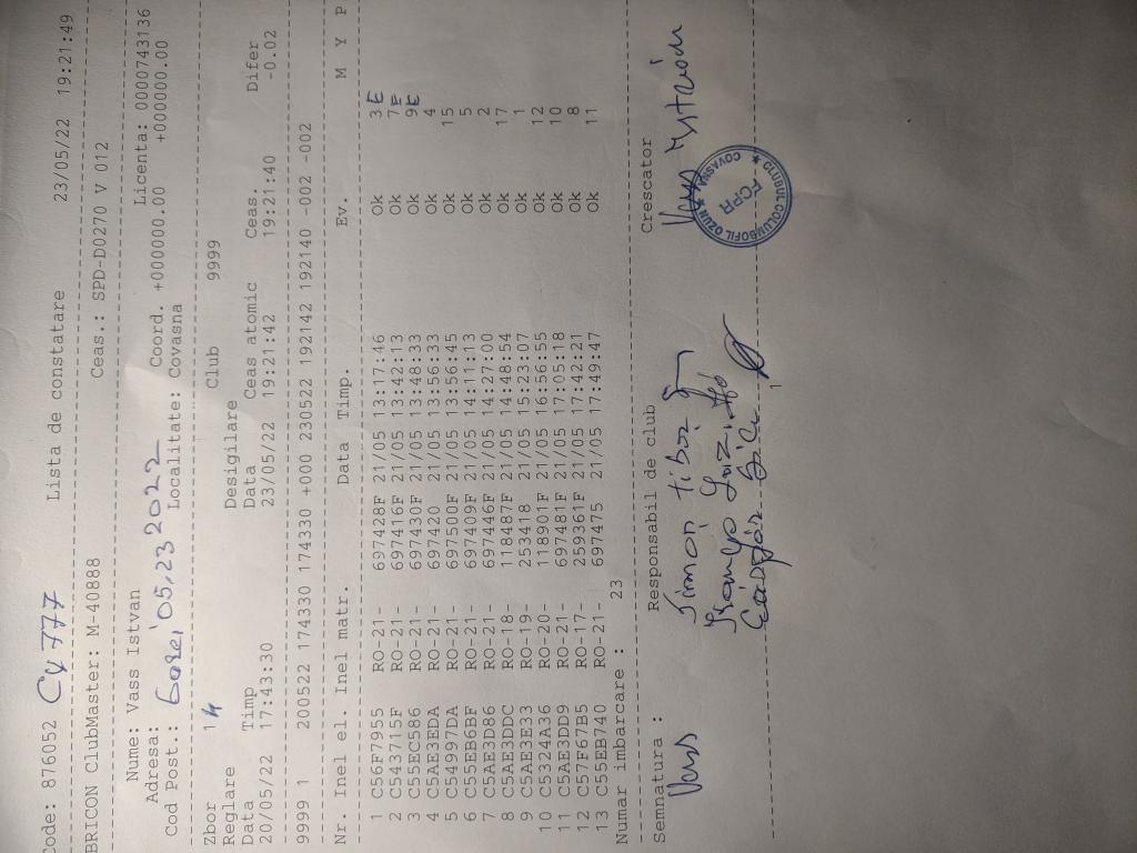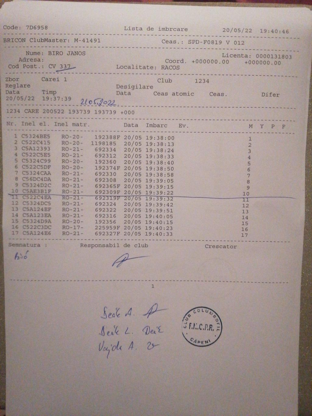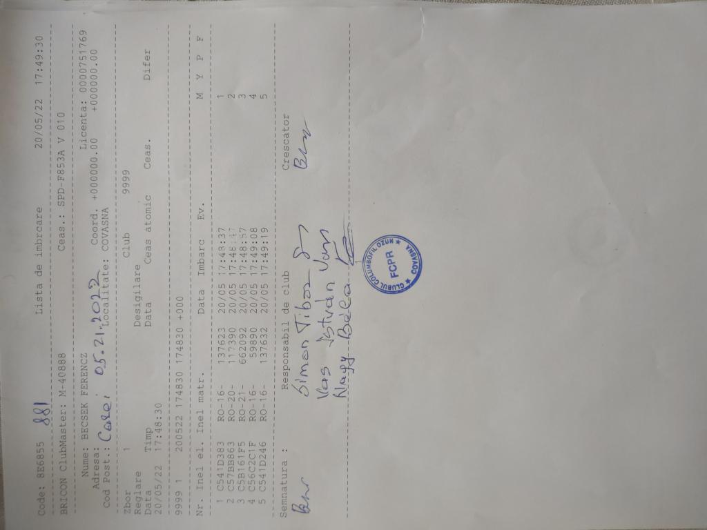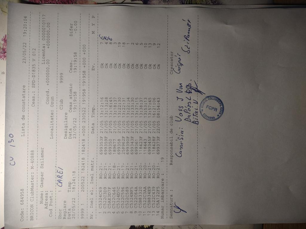 | 106 | Teglas Zoltan | CV830 | Valea Crisului | [IMB P0] | [DES P0] |