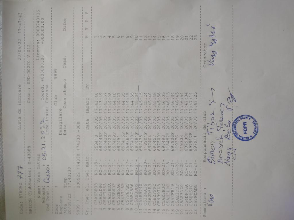 | 23 | Szocs Imre | CV208 | Capeni | [IMB P0] | [DES P0] |