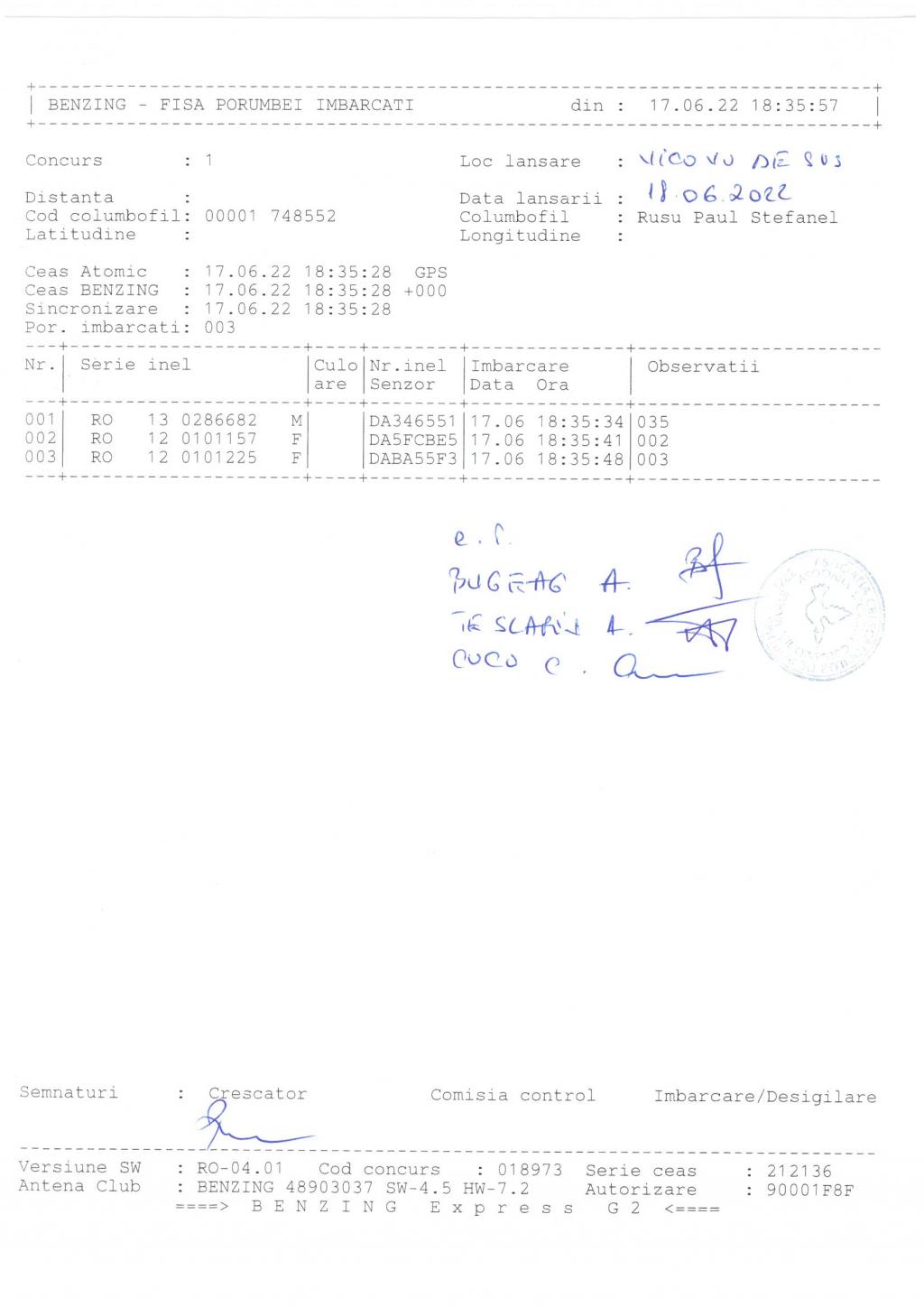 | 1. Procese verbale de imbarcare: | ||||||