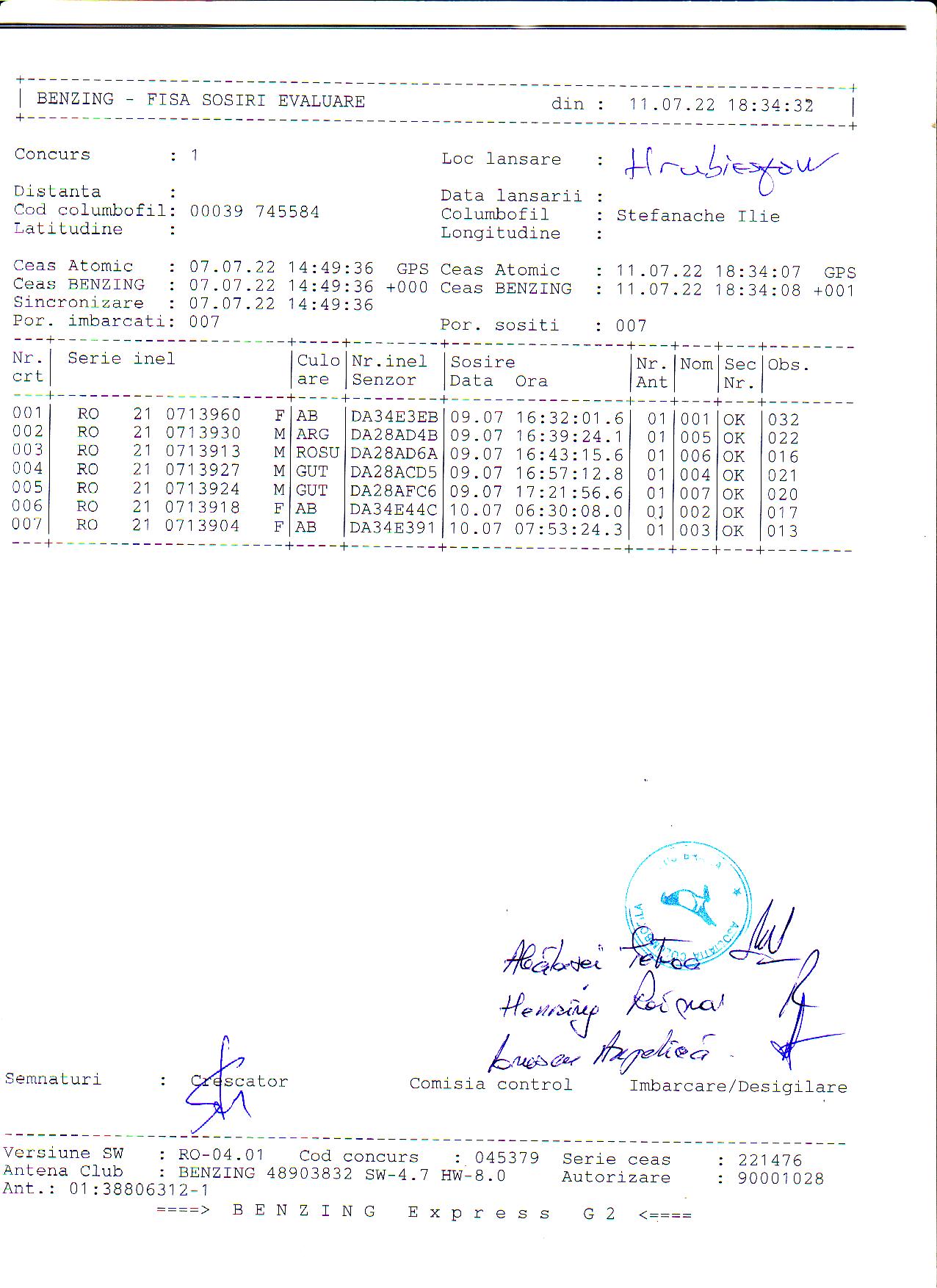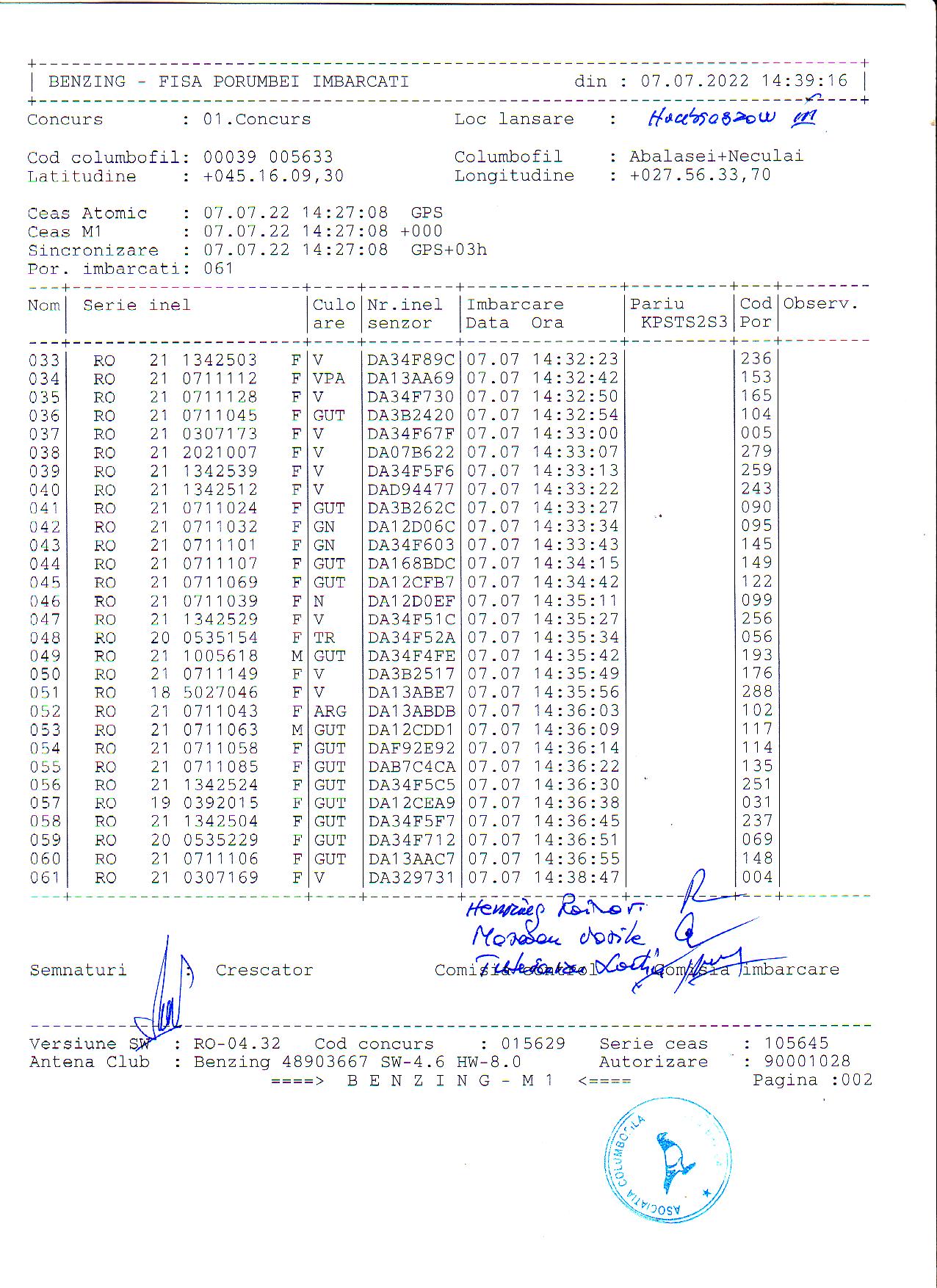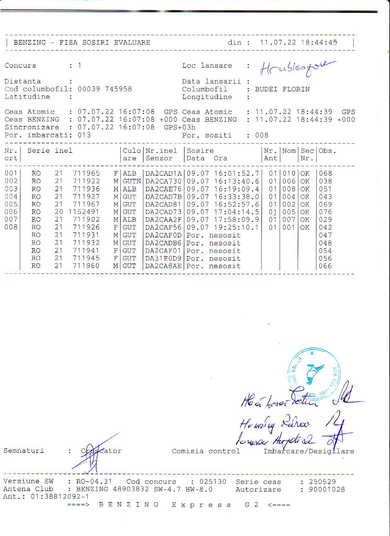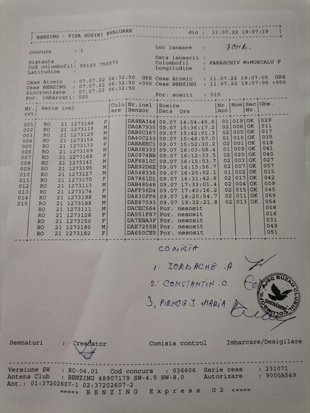 | 1 | Anghel Gheorghe | BZ9704 | Berca | [IMB P0] | [DES P0] |