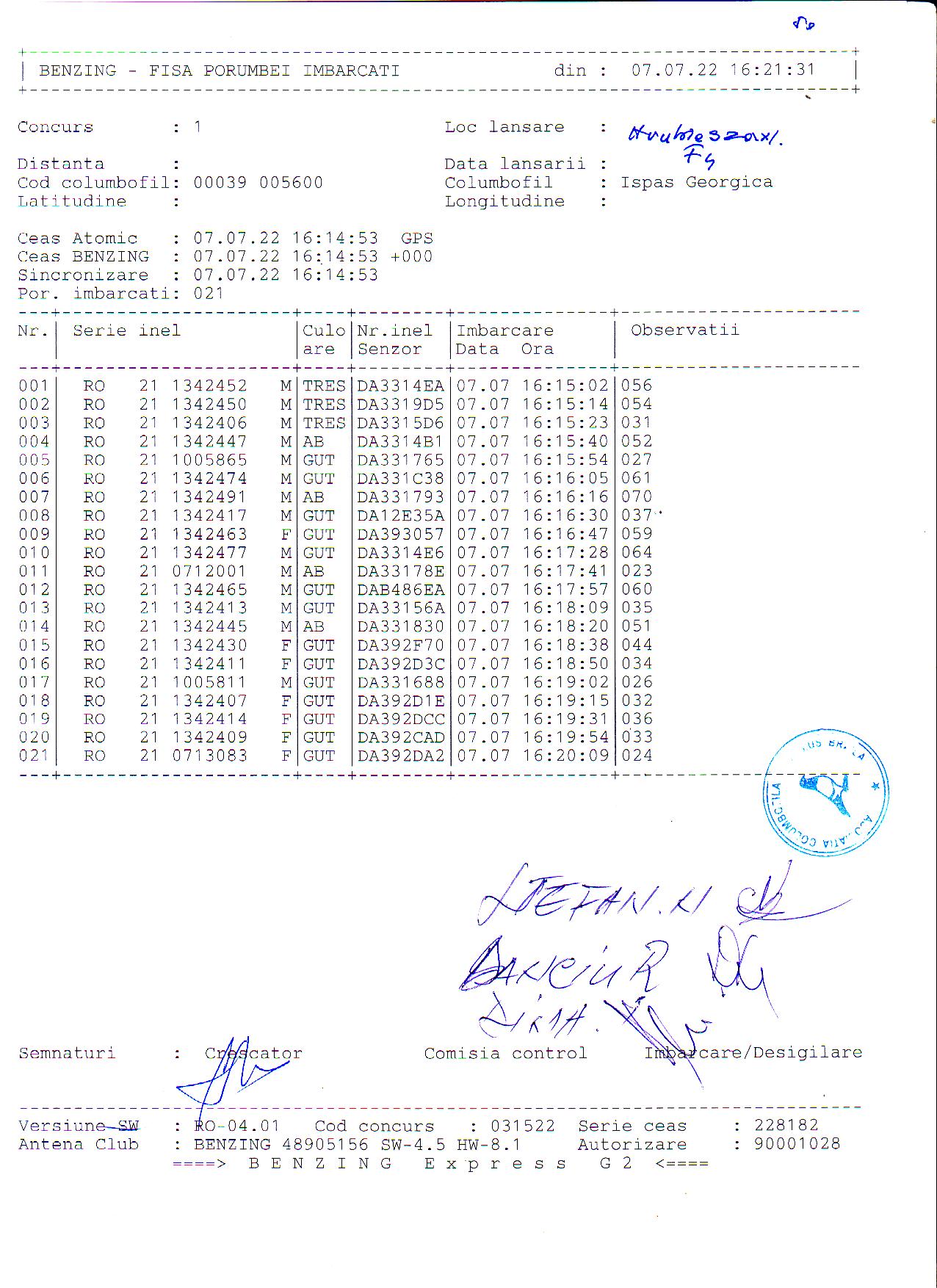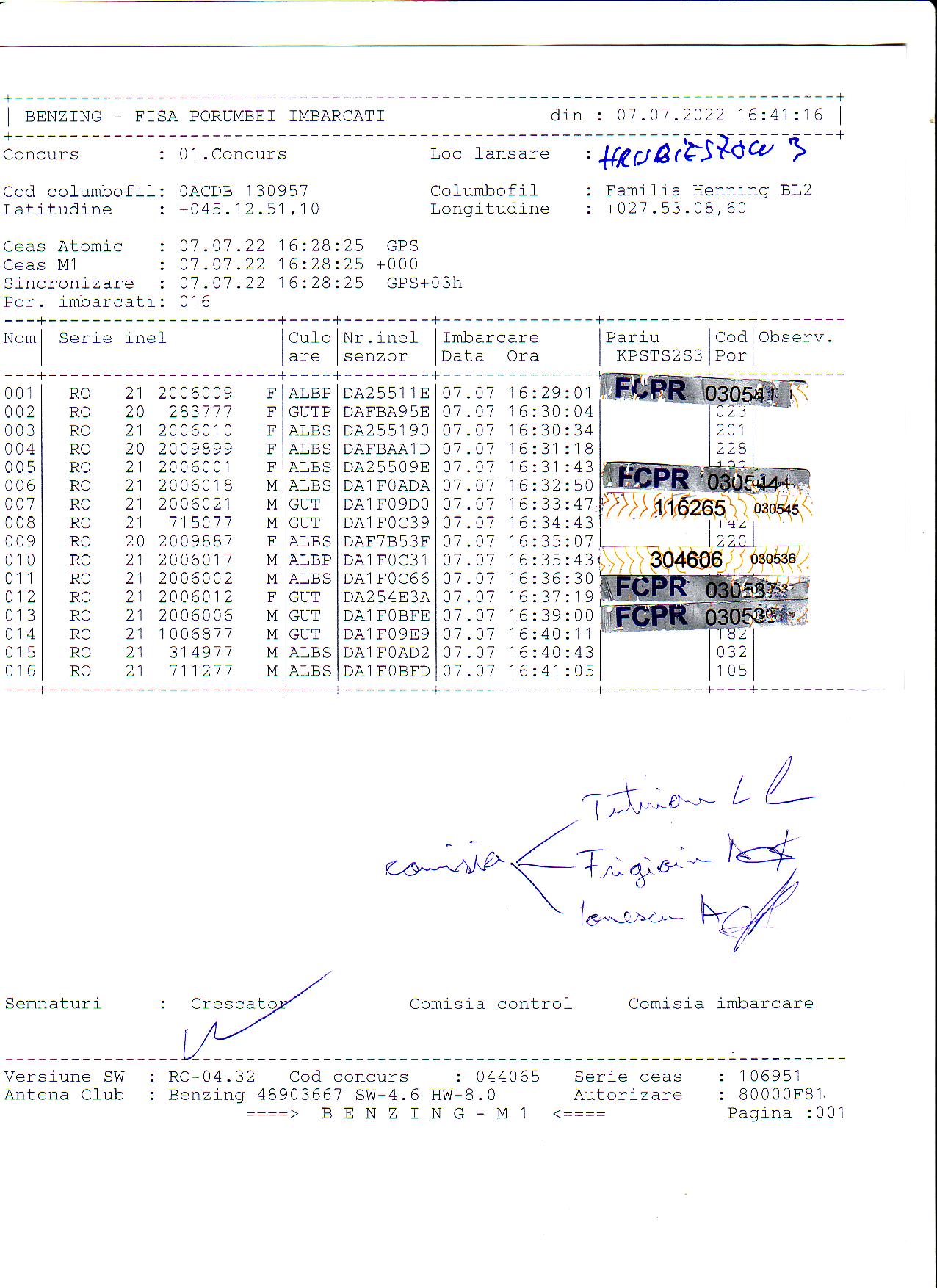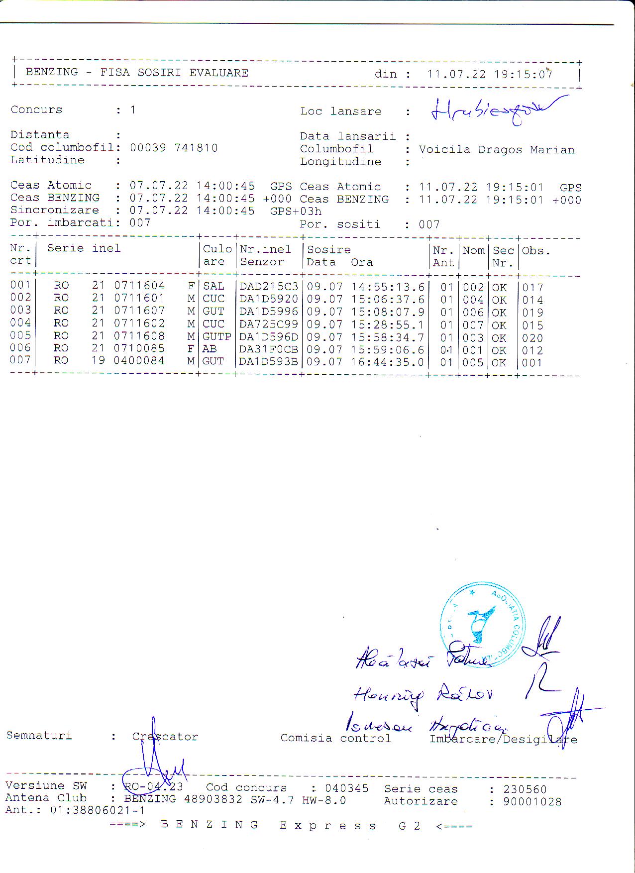 | 1 | Anghel Gheorghe | BZ9704 | Berca | [IMB P0] | [DES P0] |