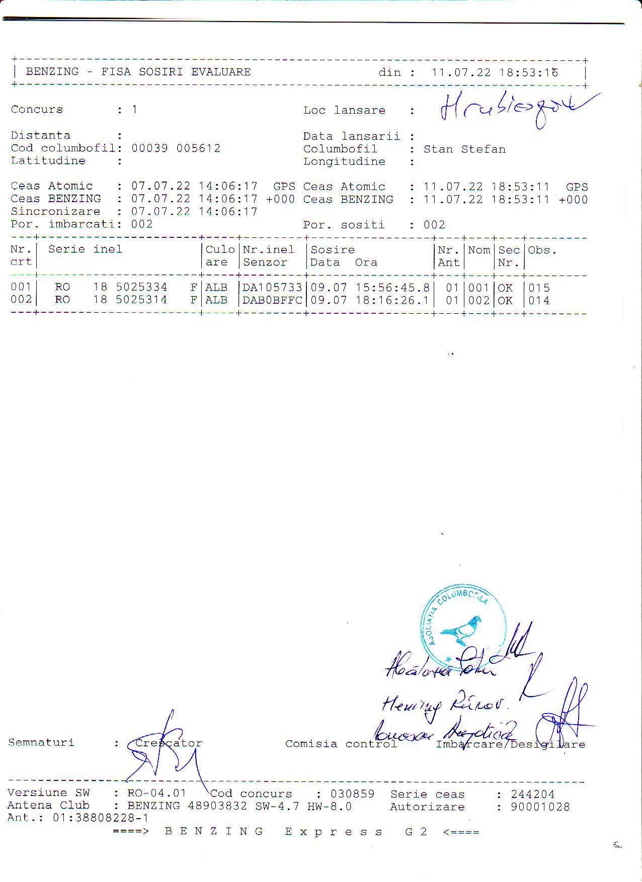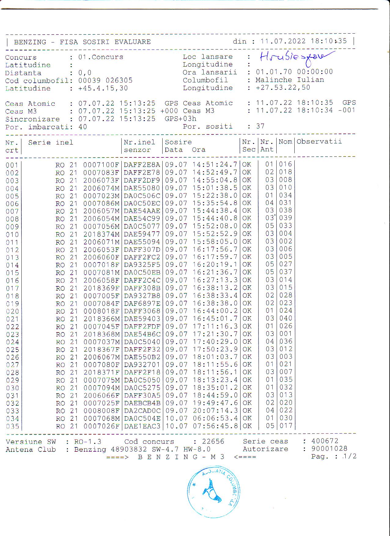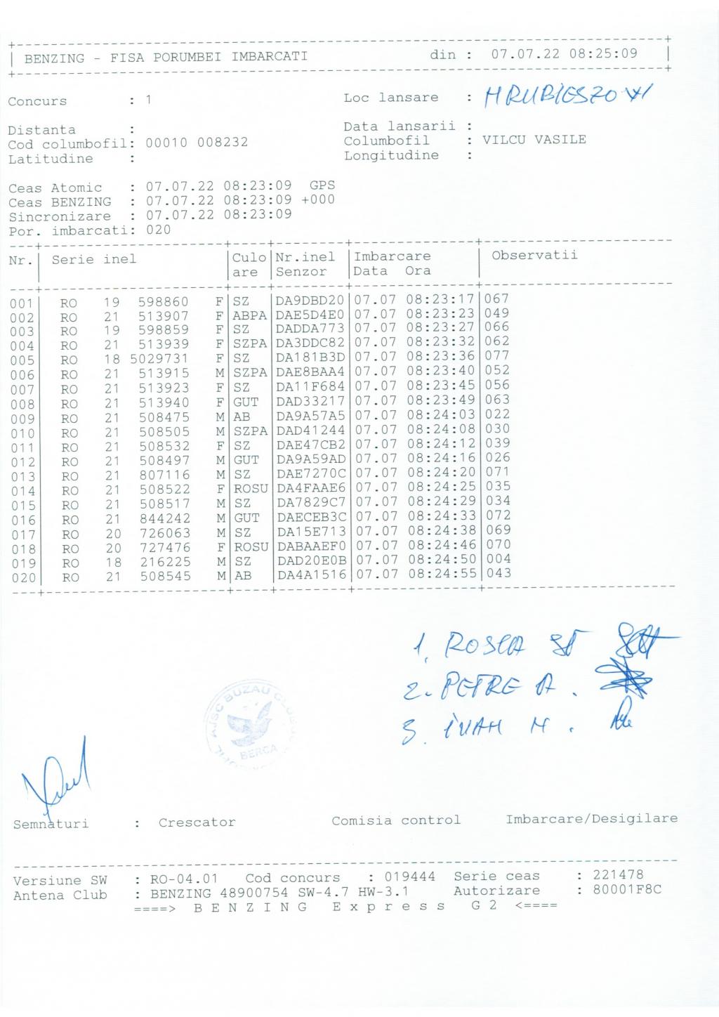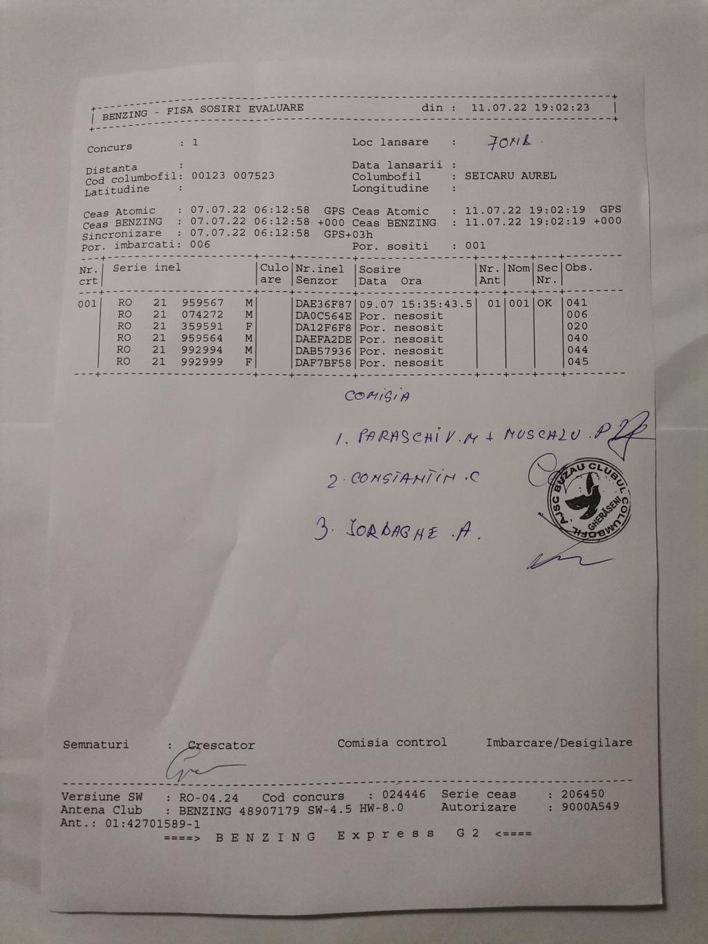 | 1 | Anghel Gheorghe | BZ9704 | Berca | [IMB P0] | [DES P0] |