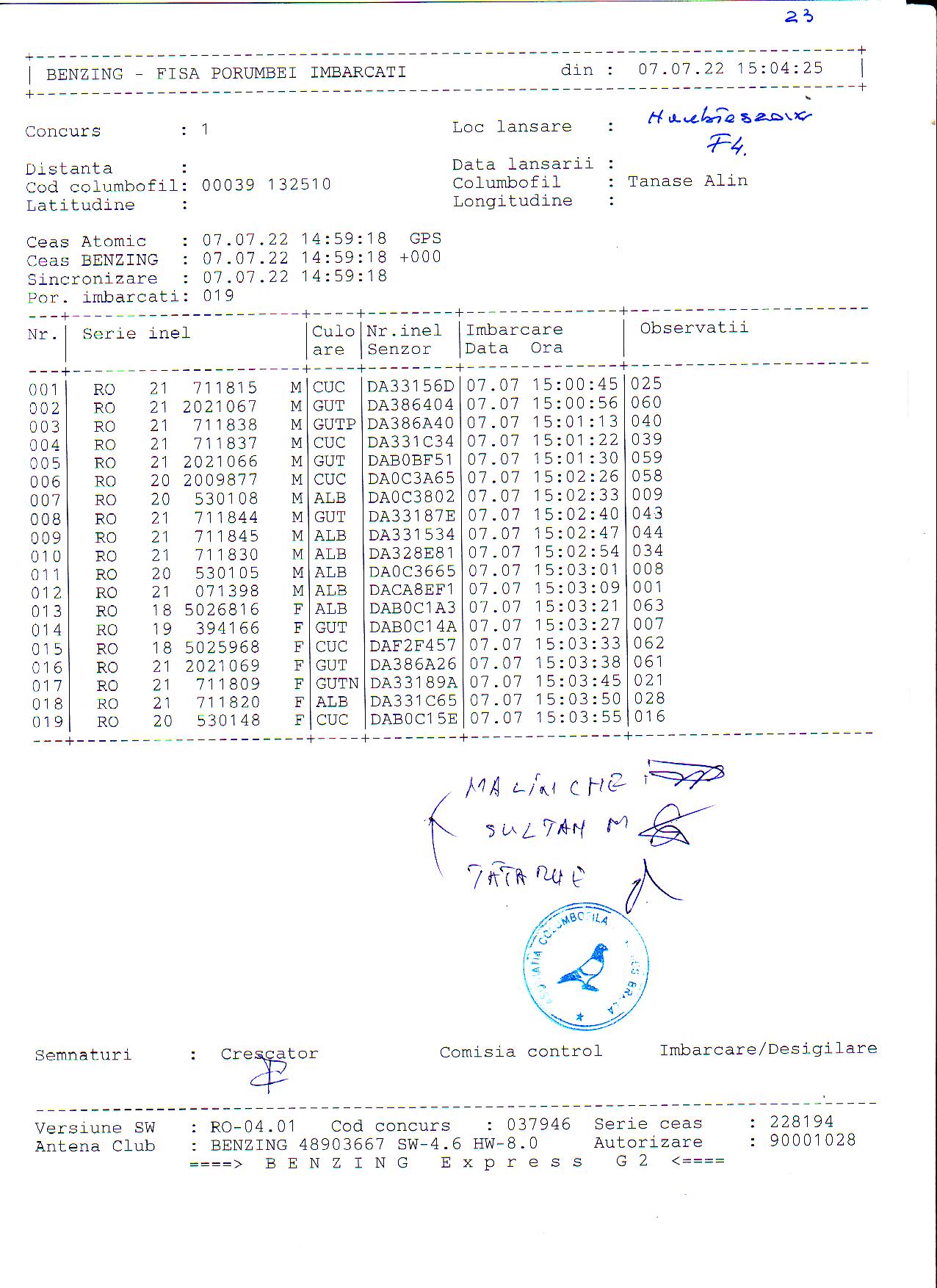 | 110 | Georgescu Marius Antonel | BZ9969 | Maracineni | [IMB P0] | [DES P0] |