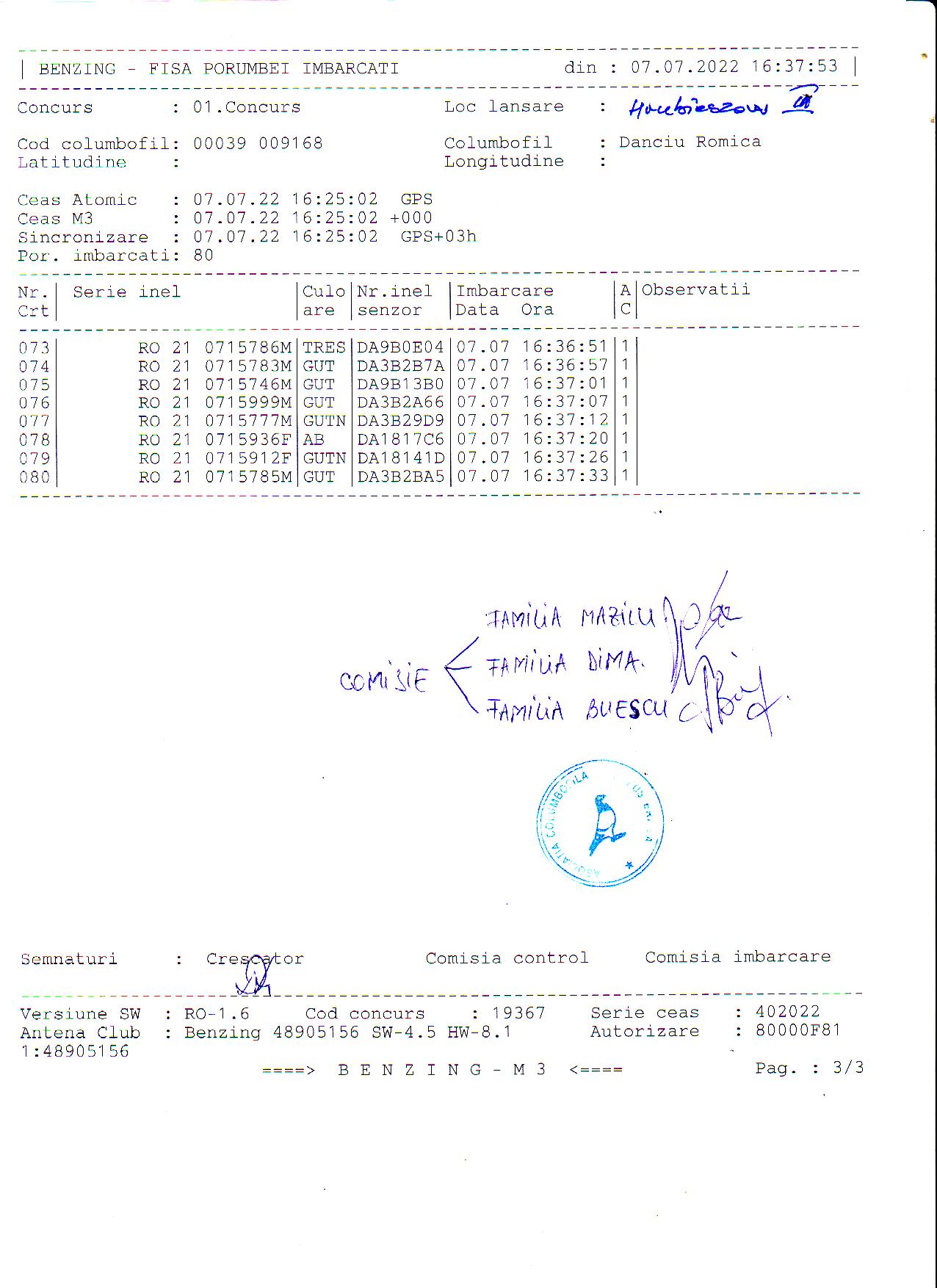 | 3 | Cojocaru Ionut | BZ9286 | Berca | [IMB P0] | |