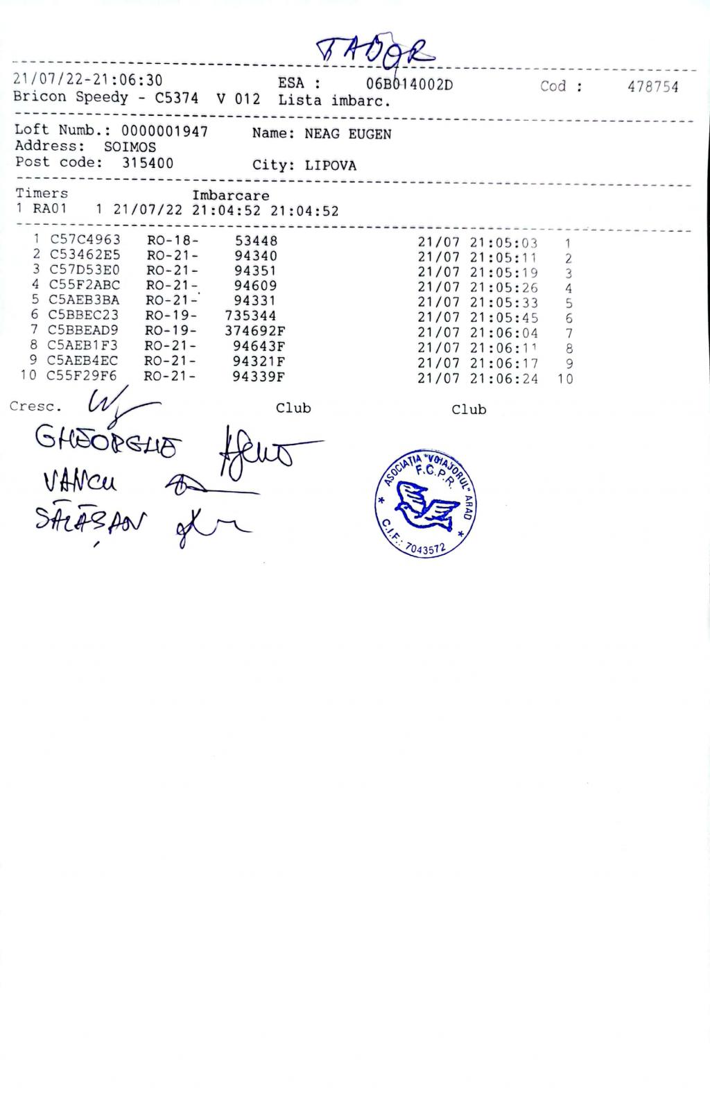 SIGILARE: [Sigilare masina tabor ] [2017869 reclemare ] [desigilarea camion AR14BUX etapa fond Tabor] RECLEMARE: [Reclemare 678257-20 Lihet ] [Rechemare porumbel 373825-19 Tricolor] SIGILARE: [Desigilare AR 14 BUX Sosit? de la Centrul Santana ] [Sigilare Ar14 bux Centrul Arad ] |