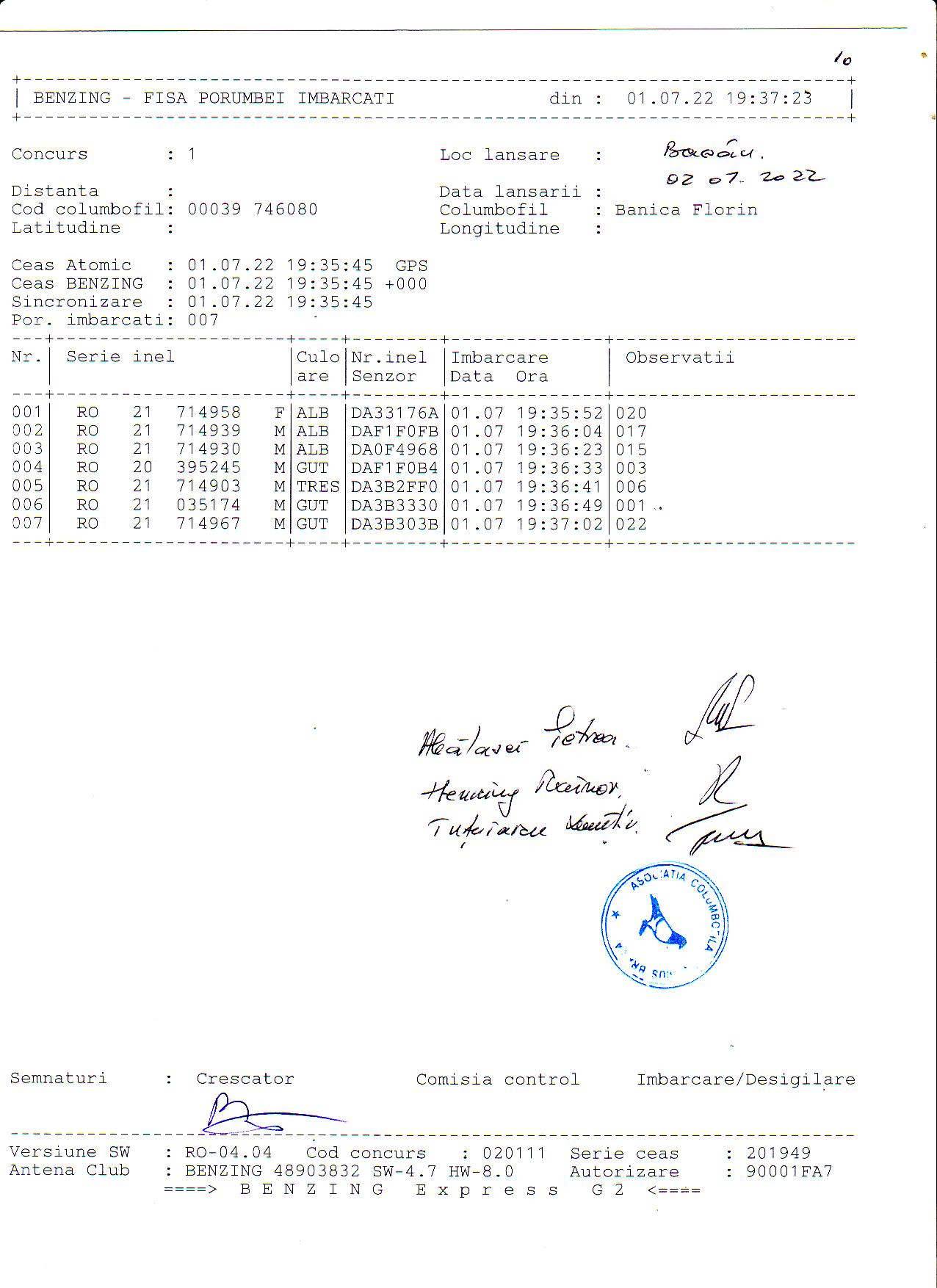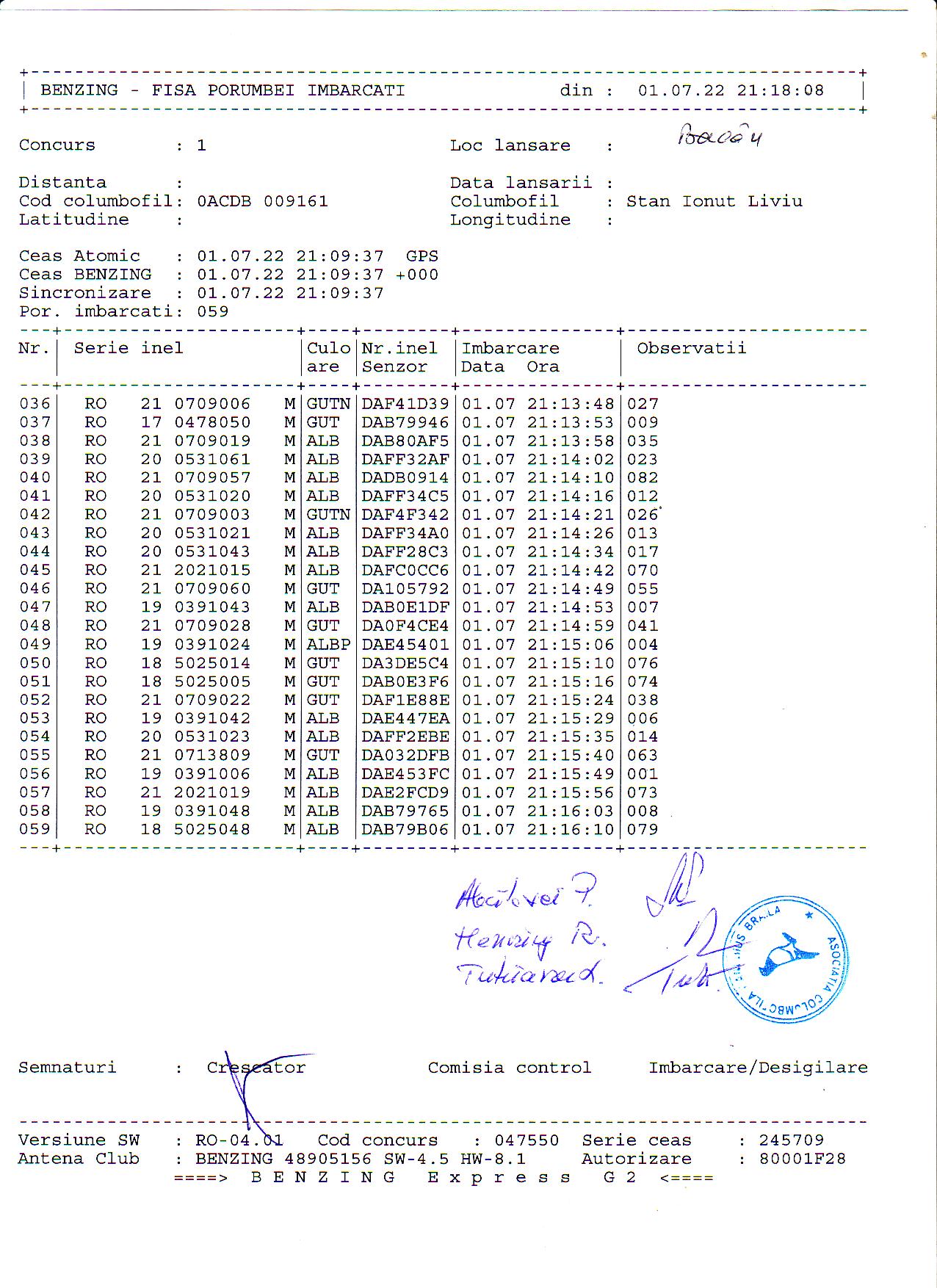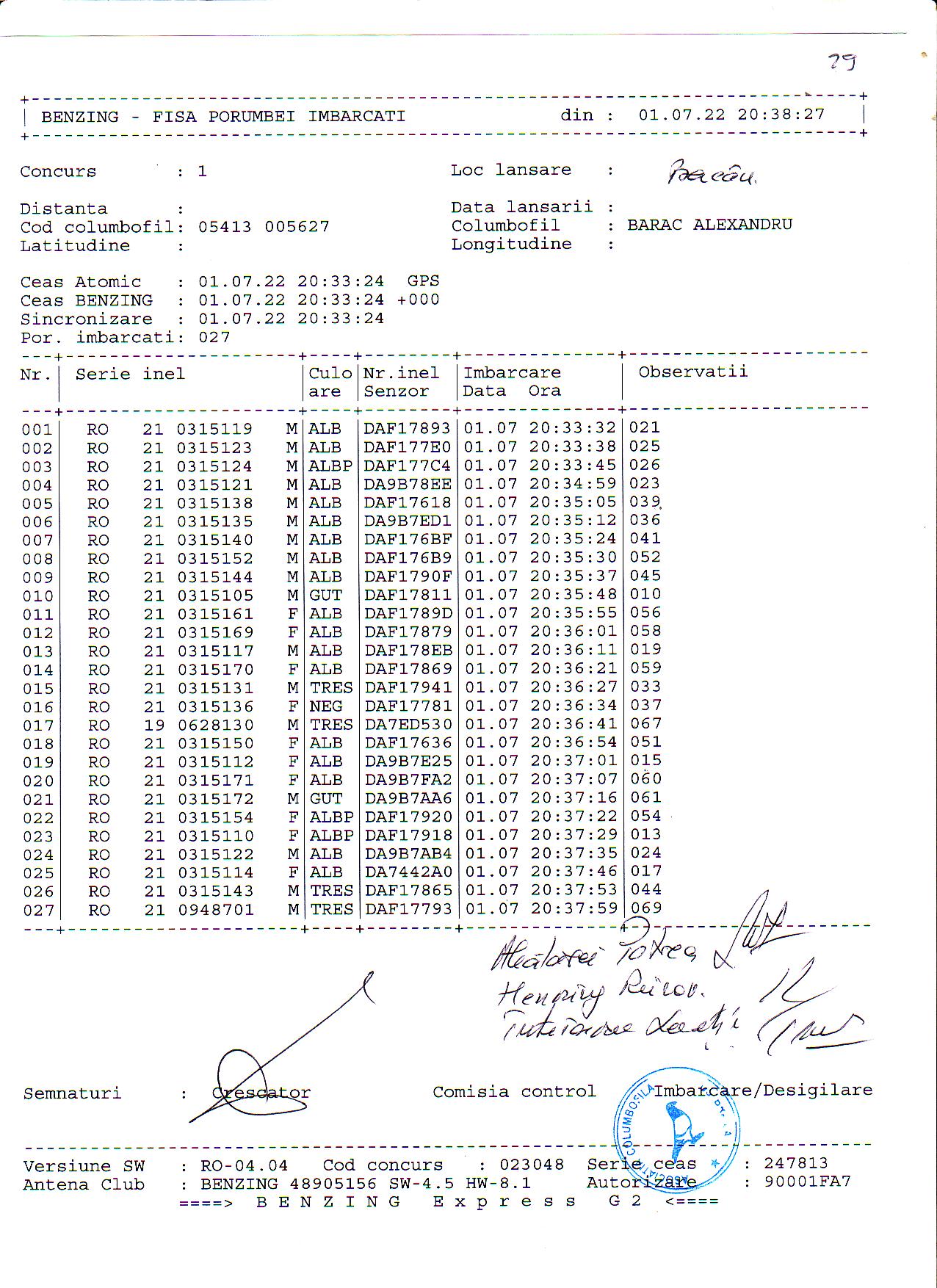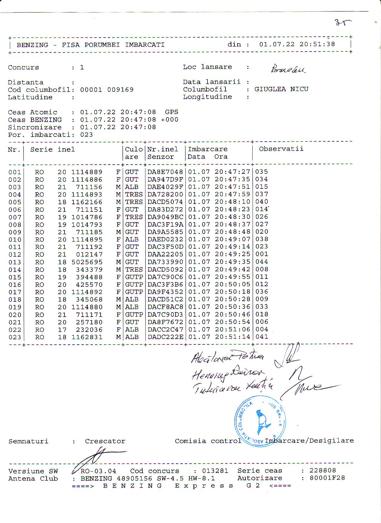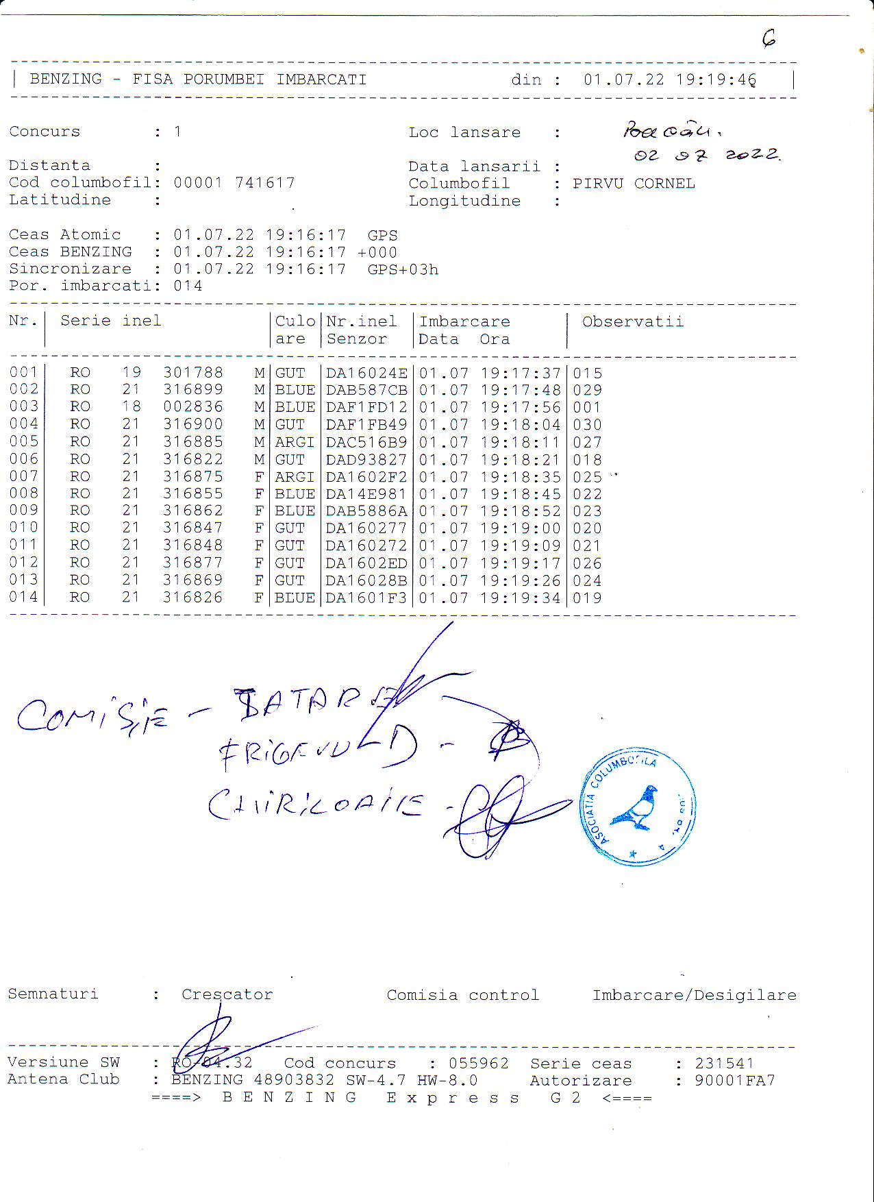 | 1. Procese verbale de imbarcare: | ||