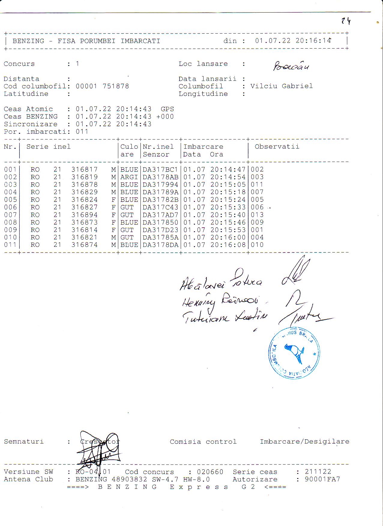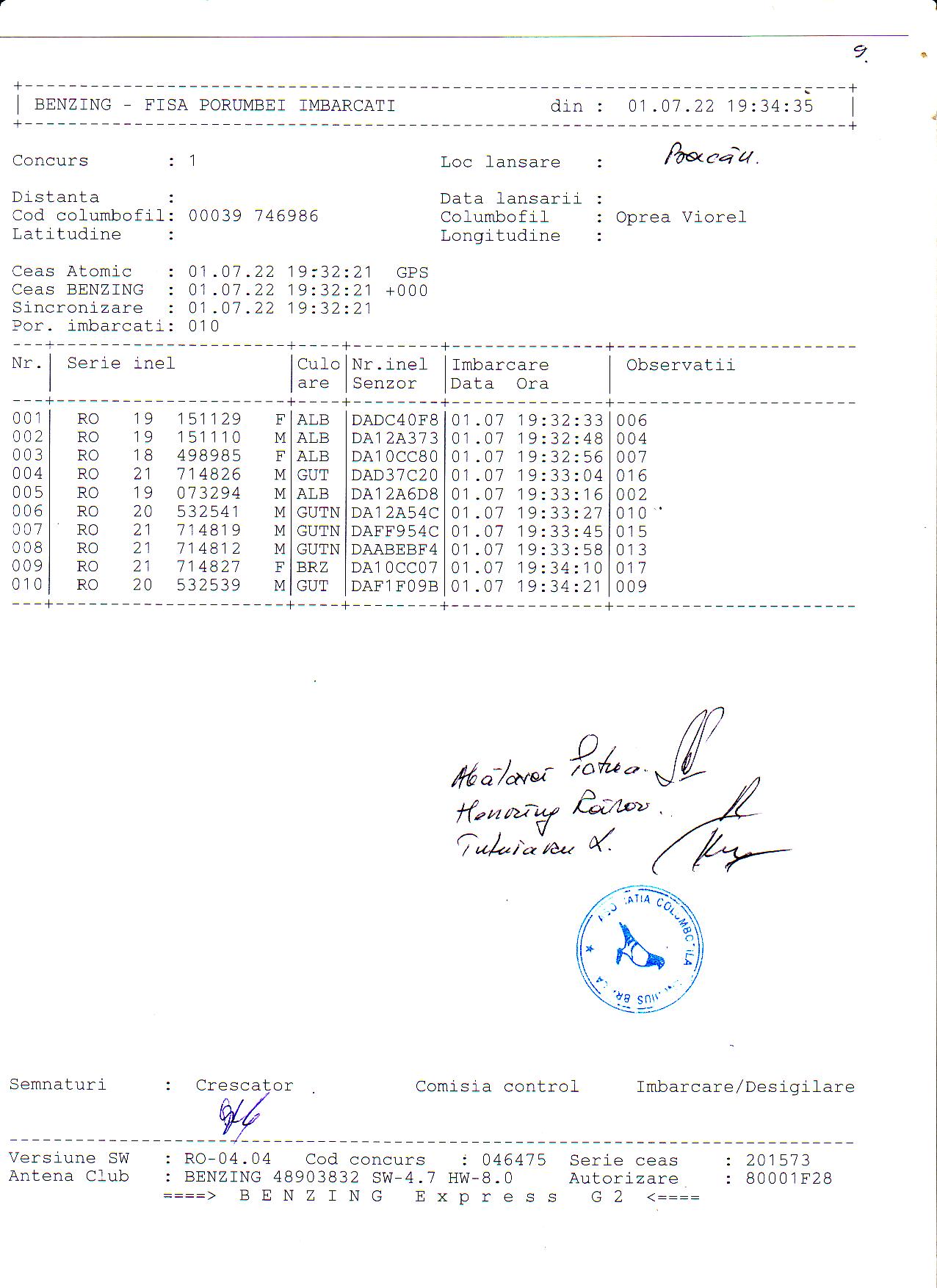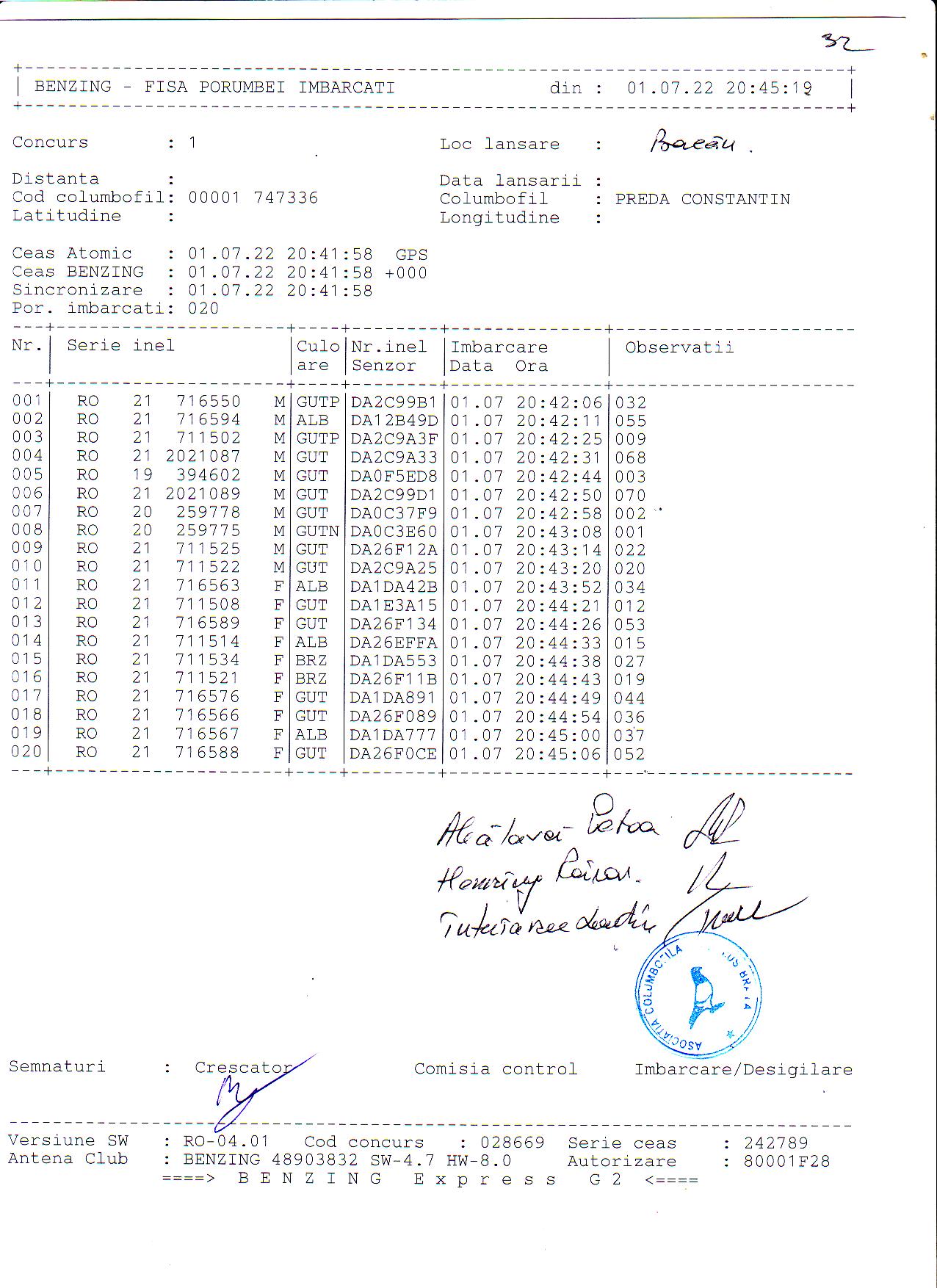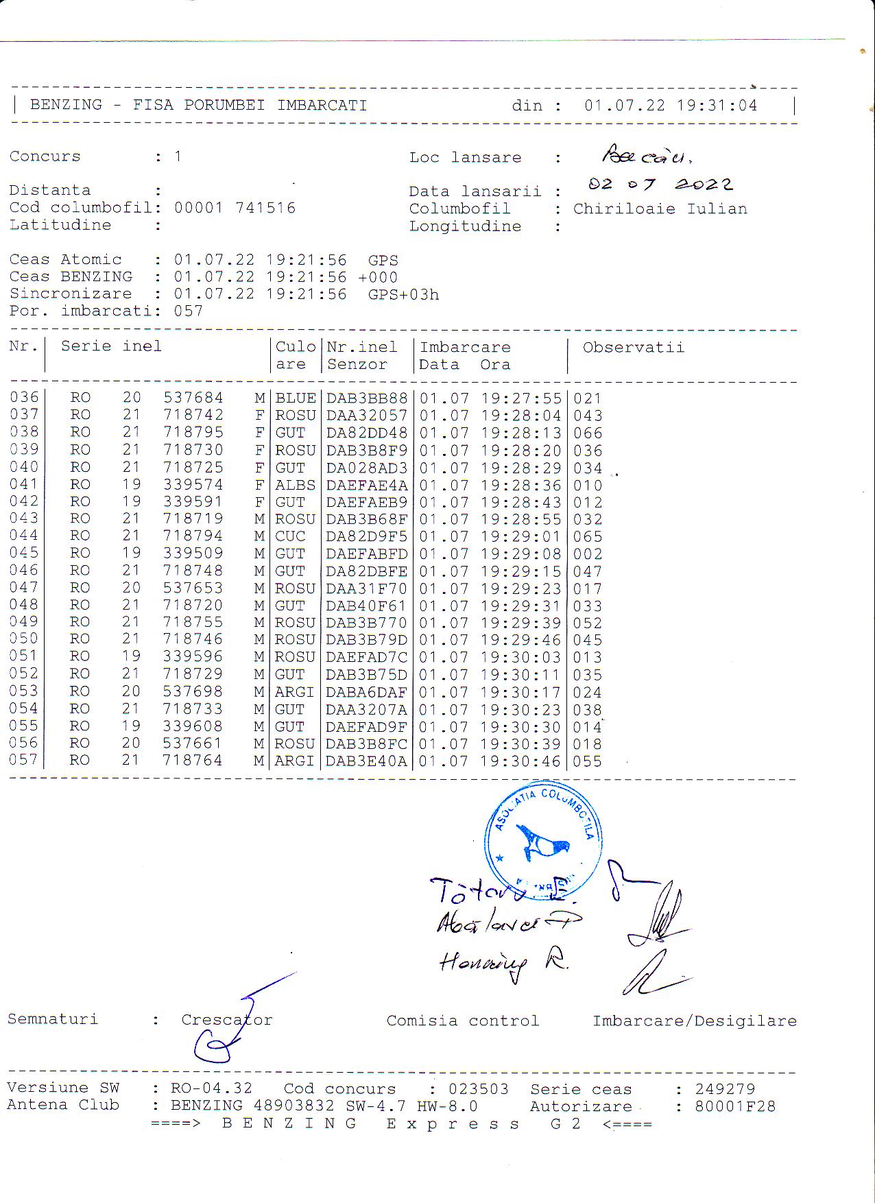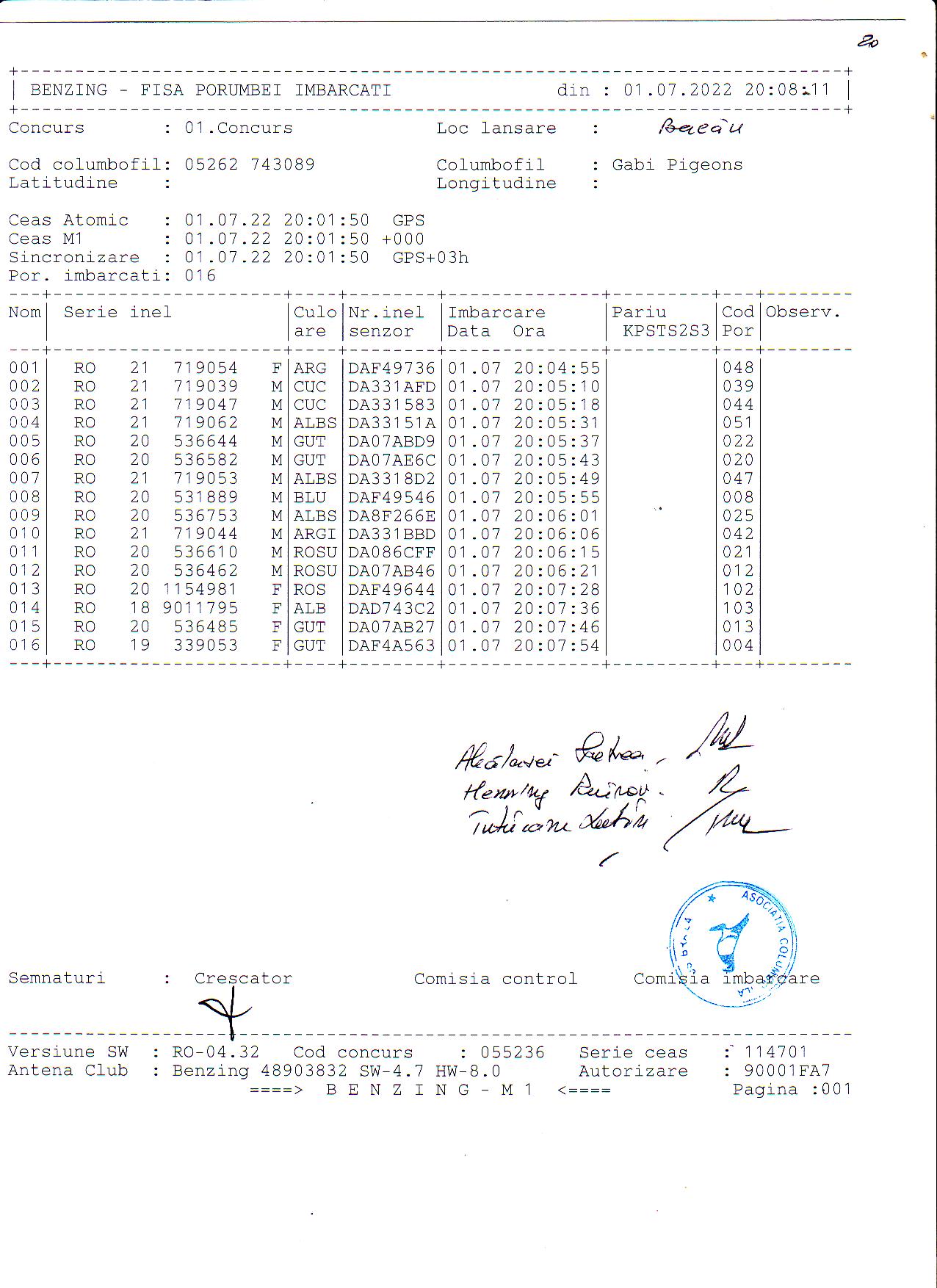 | 1. Procese verbale de imbarcare: | ||