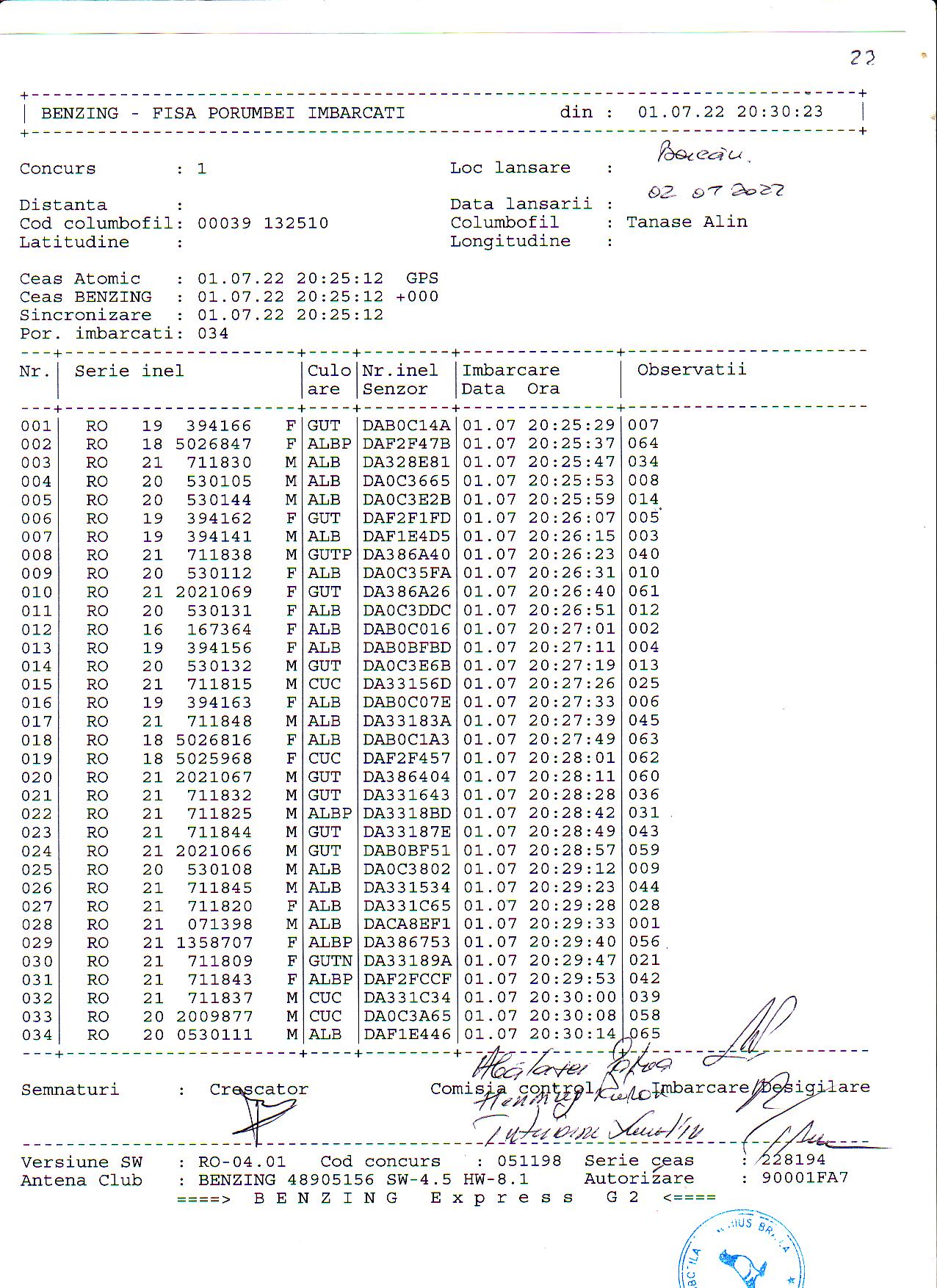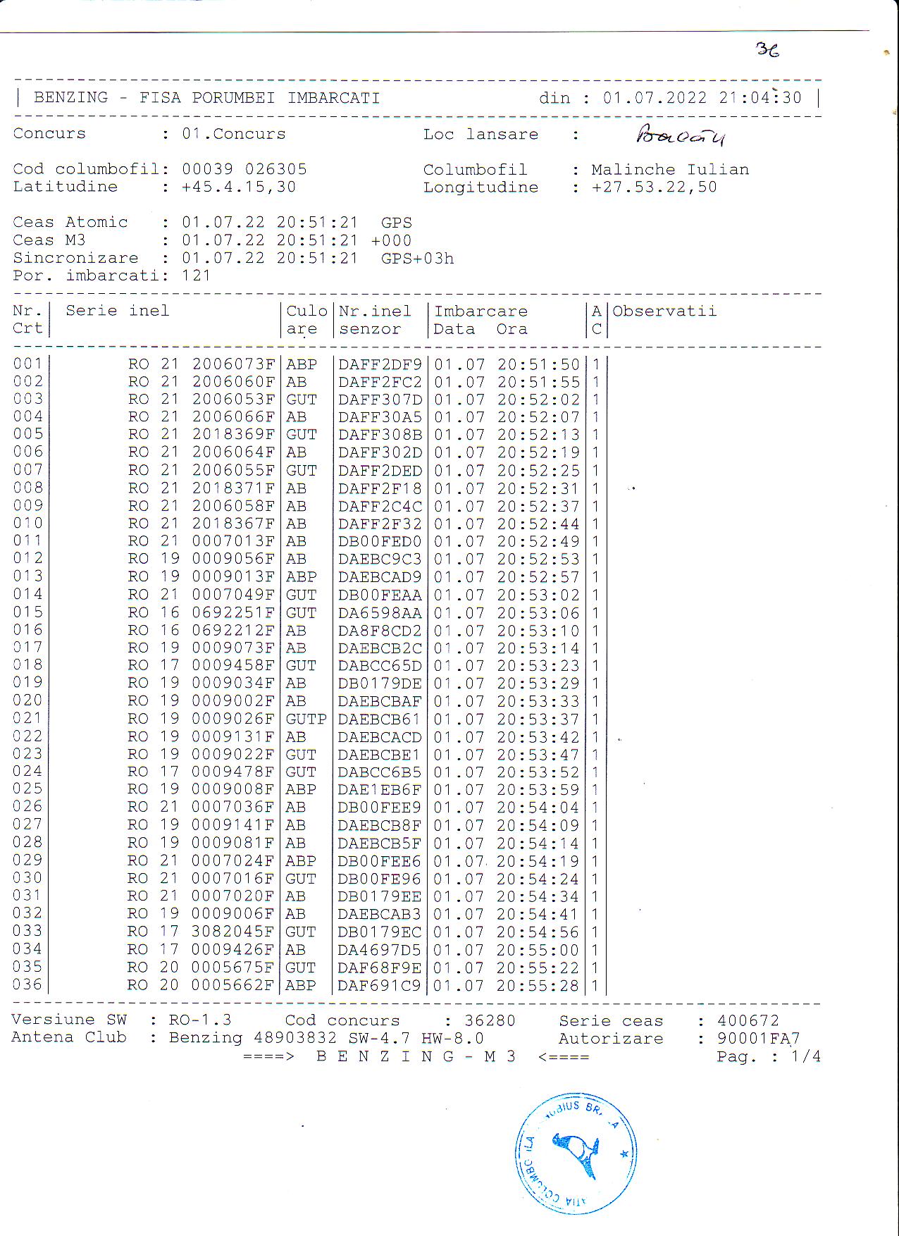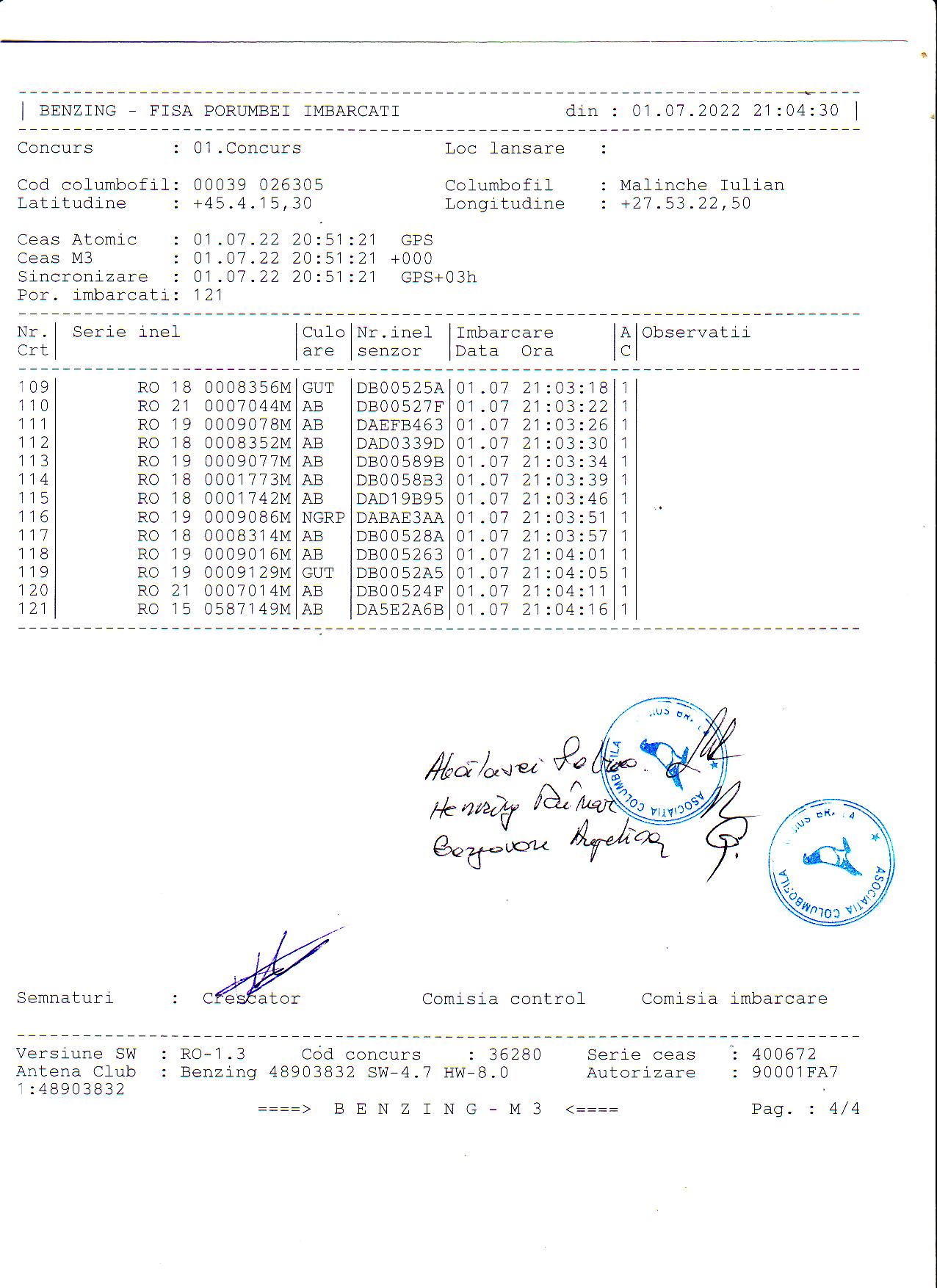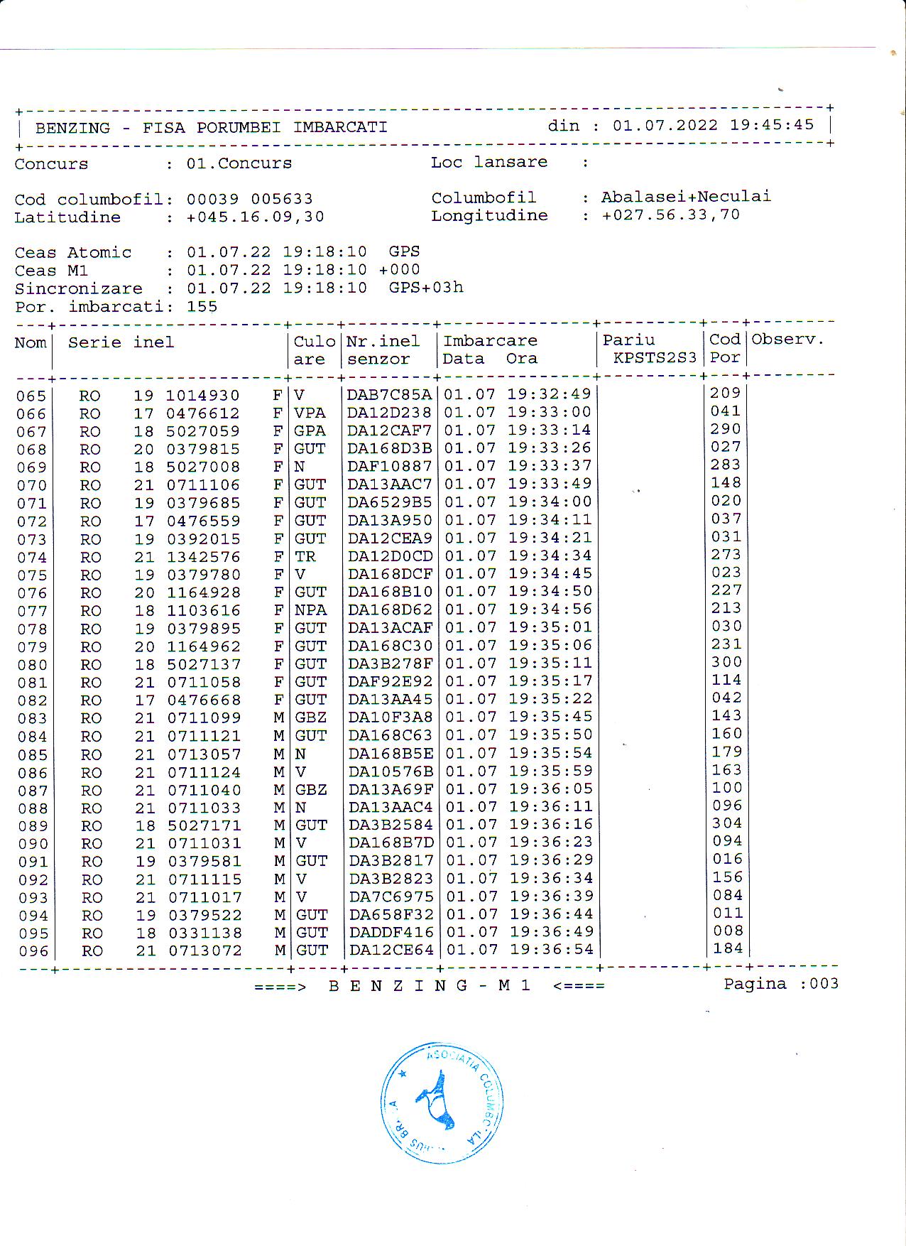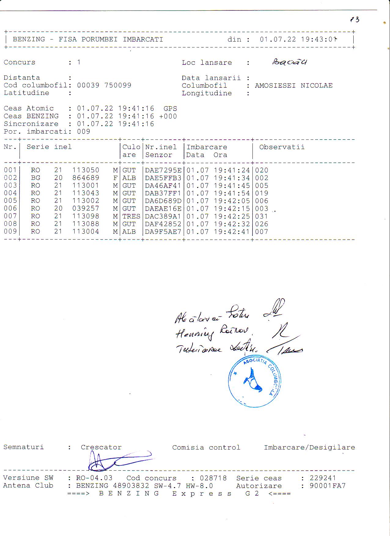 | 1. Procese verbale de imbarcare: | ||
