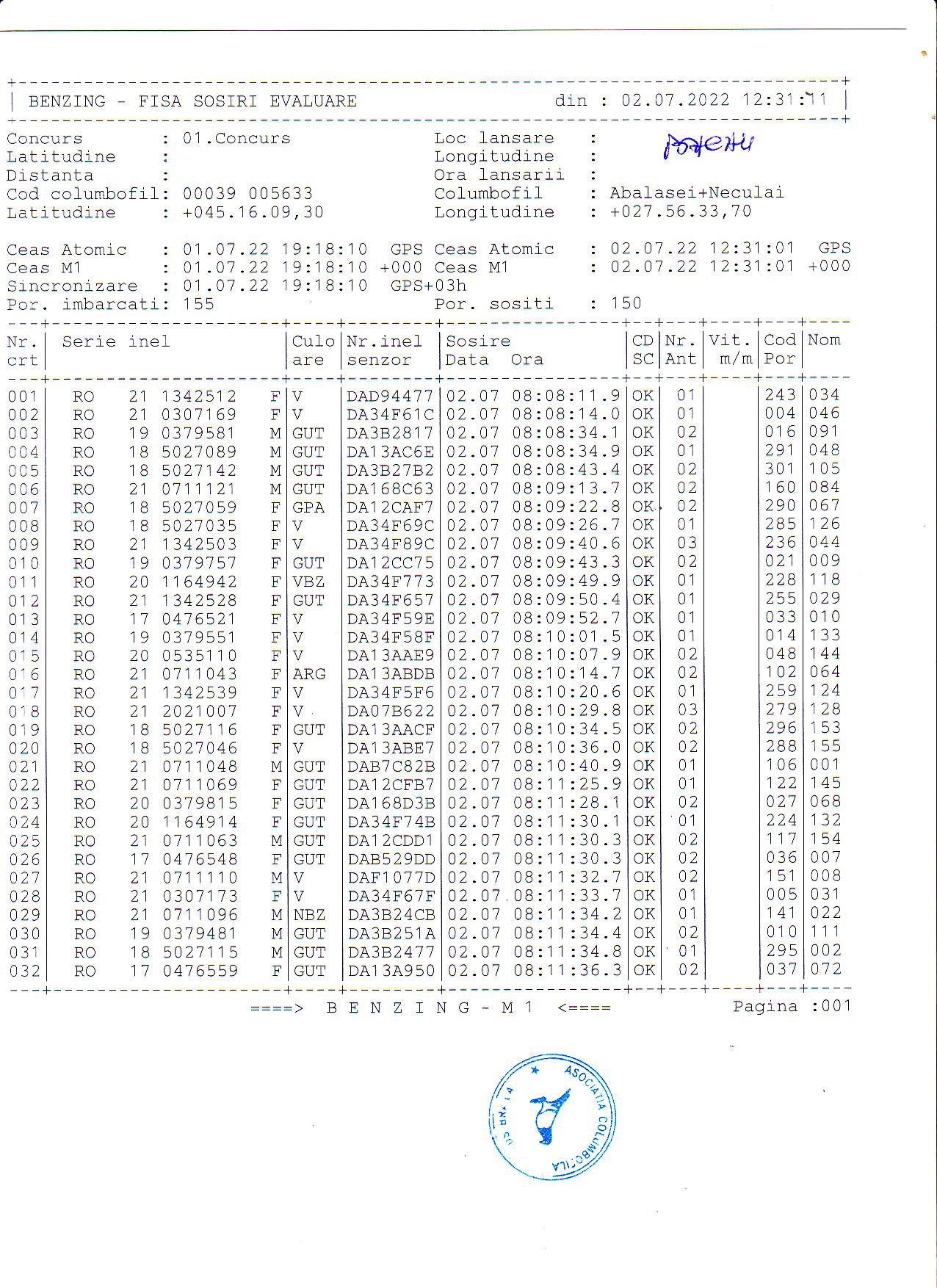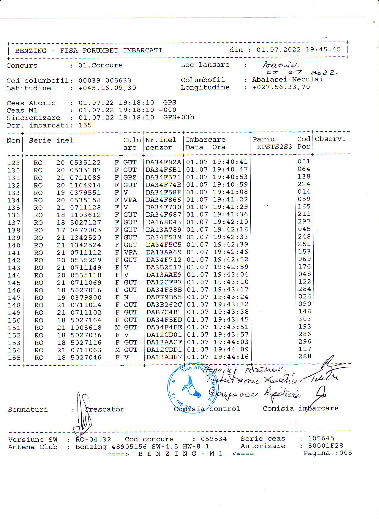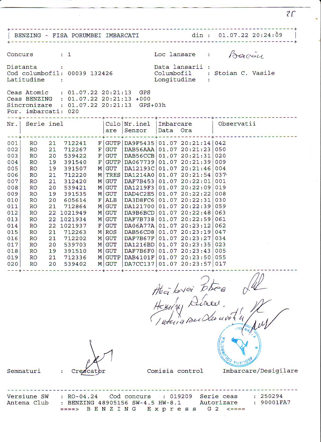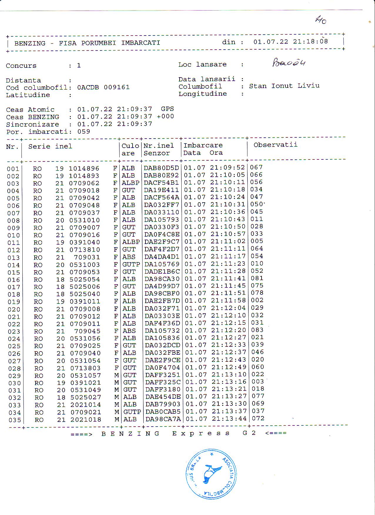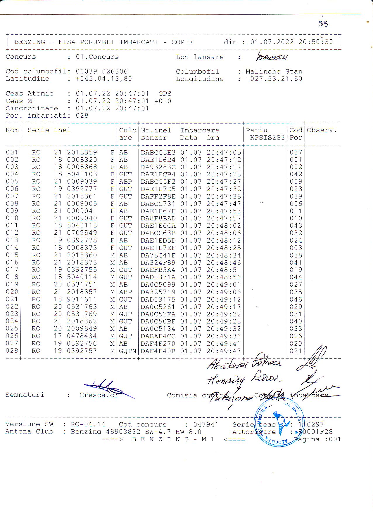 | 1. Procese verbale de imbarcare: | ||