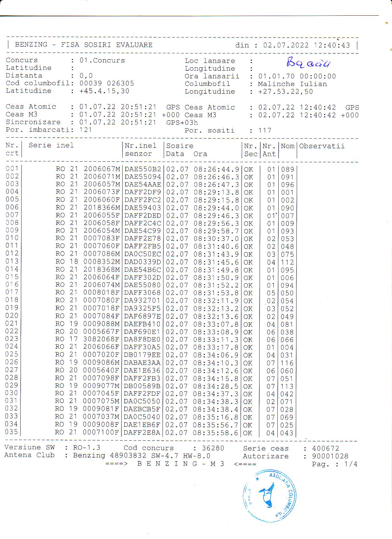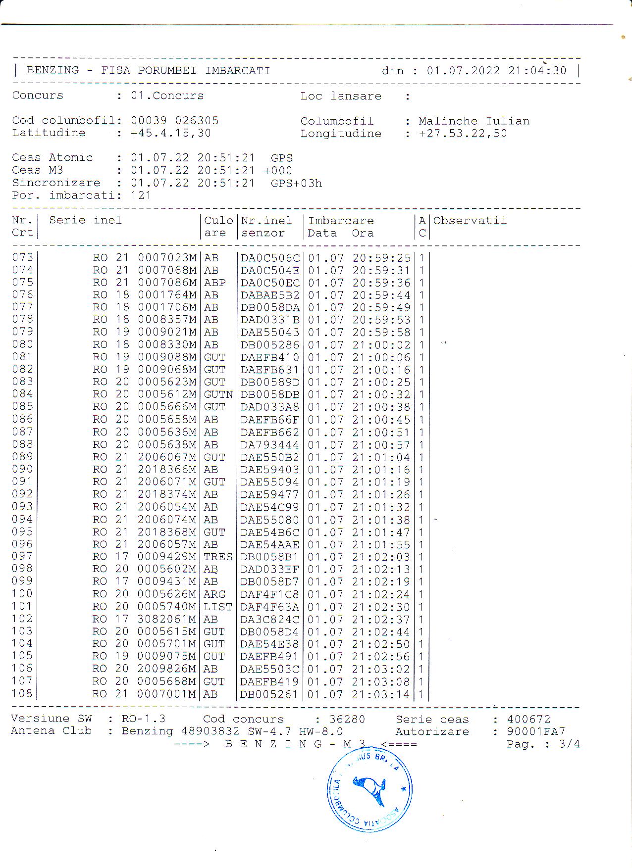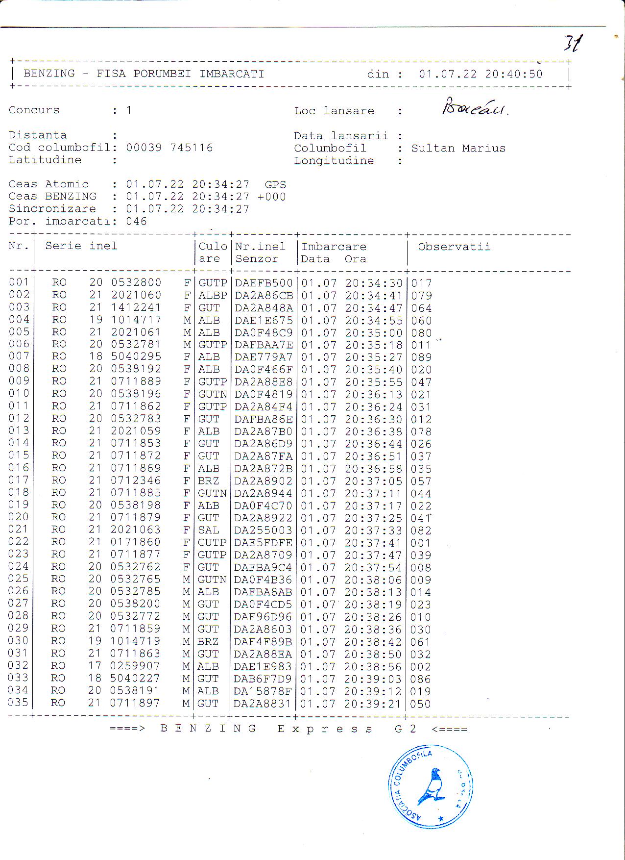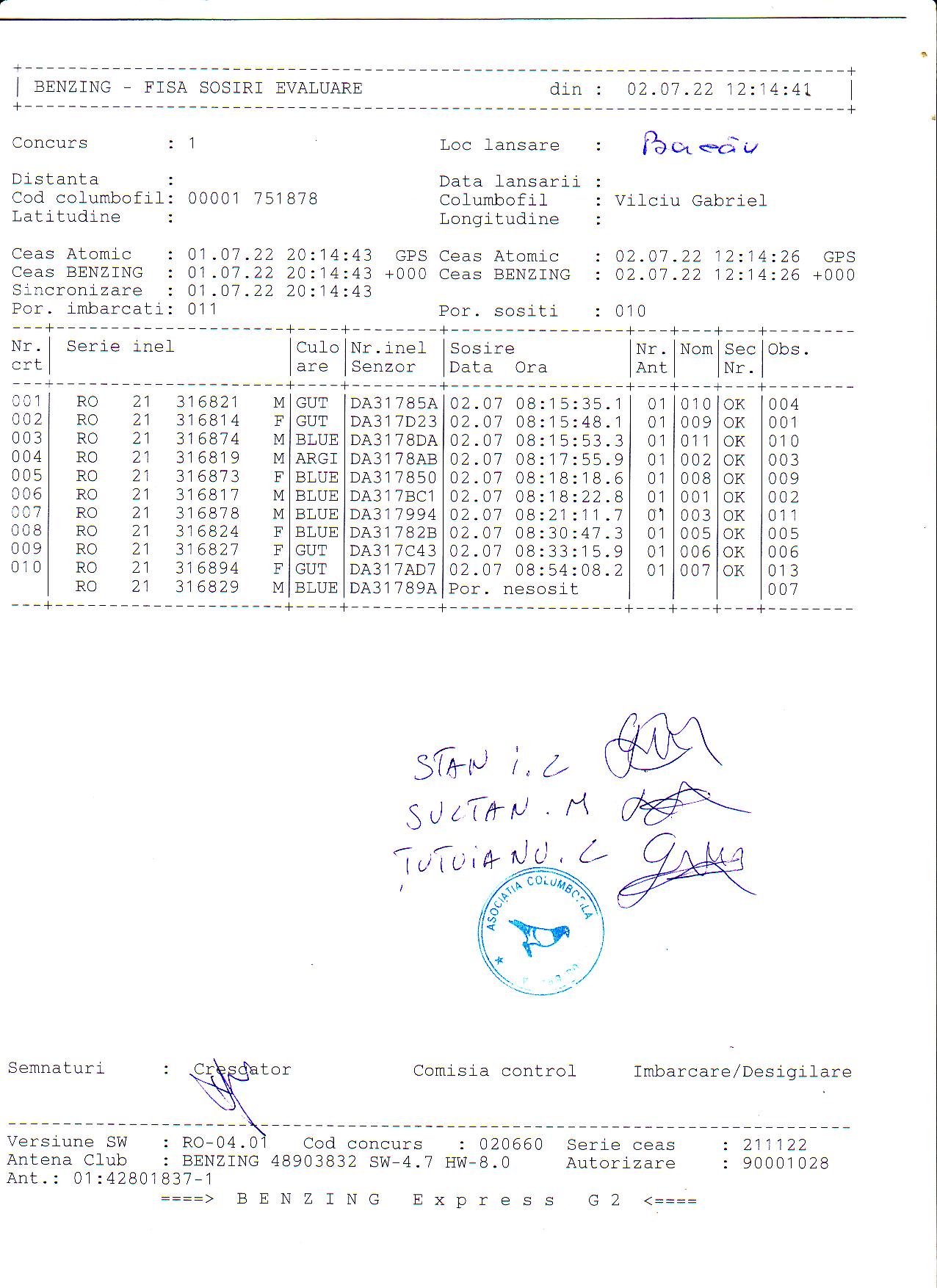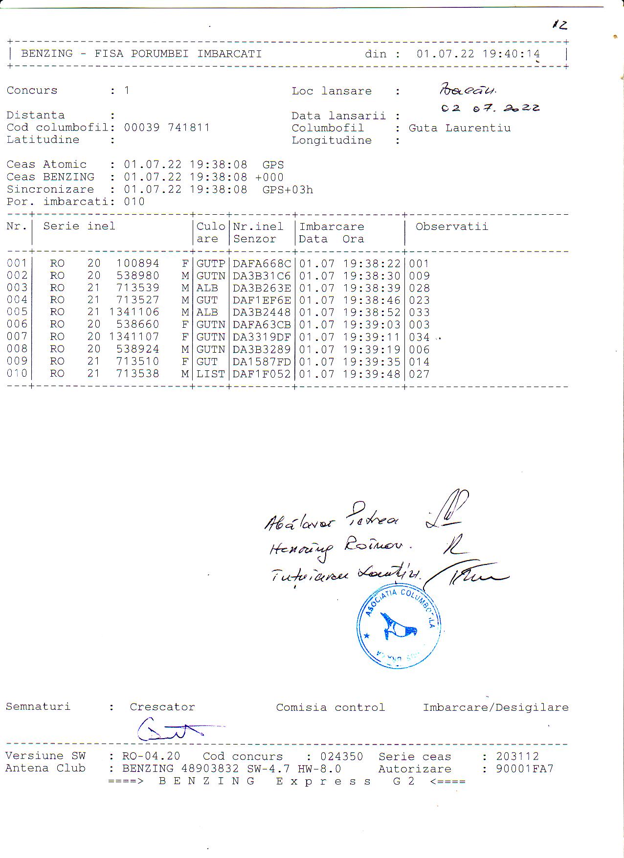 | 1. Procese verbale de imbarcare: | ||