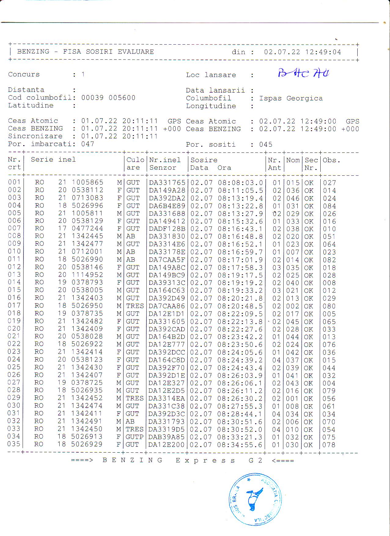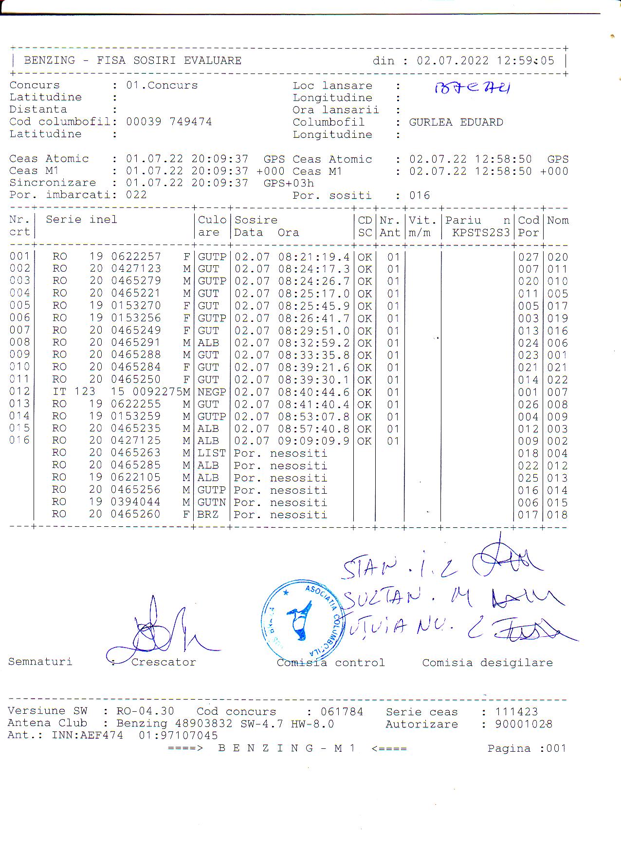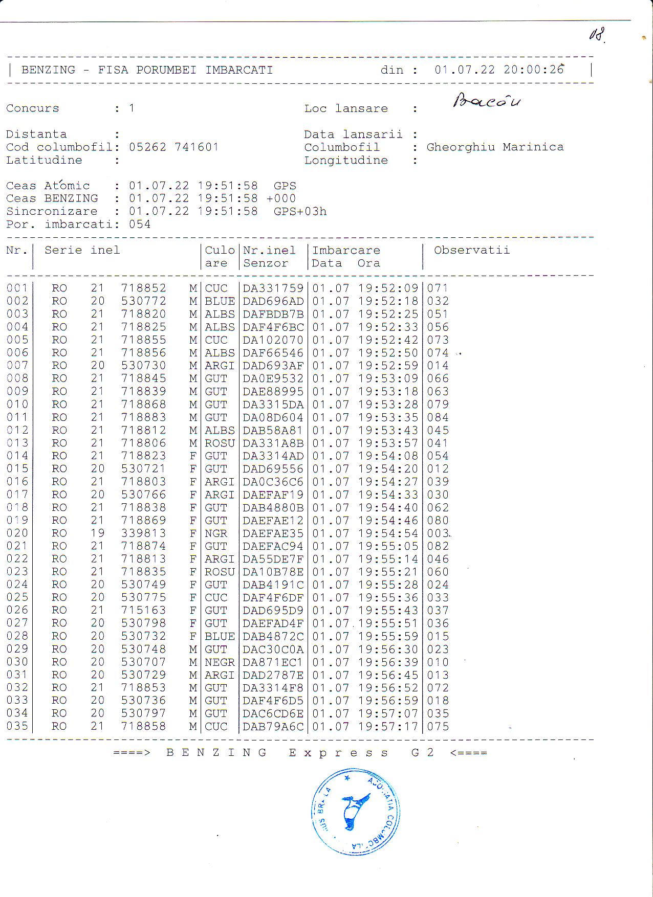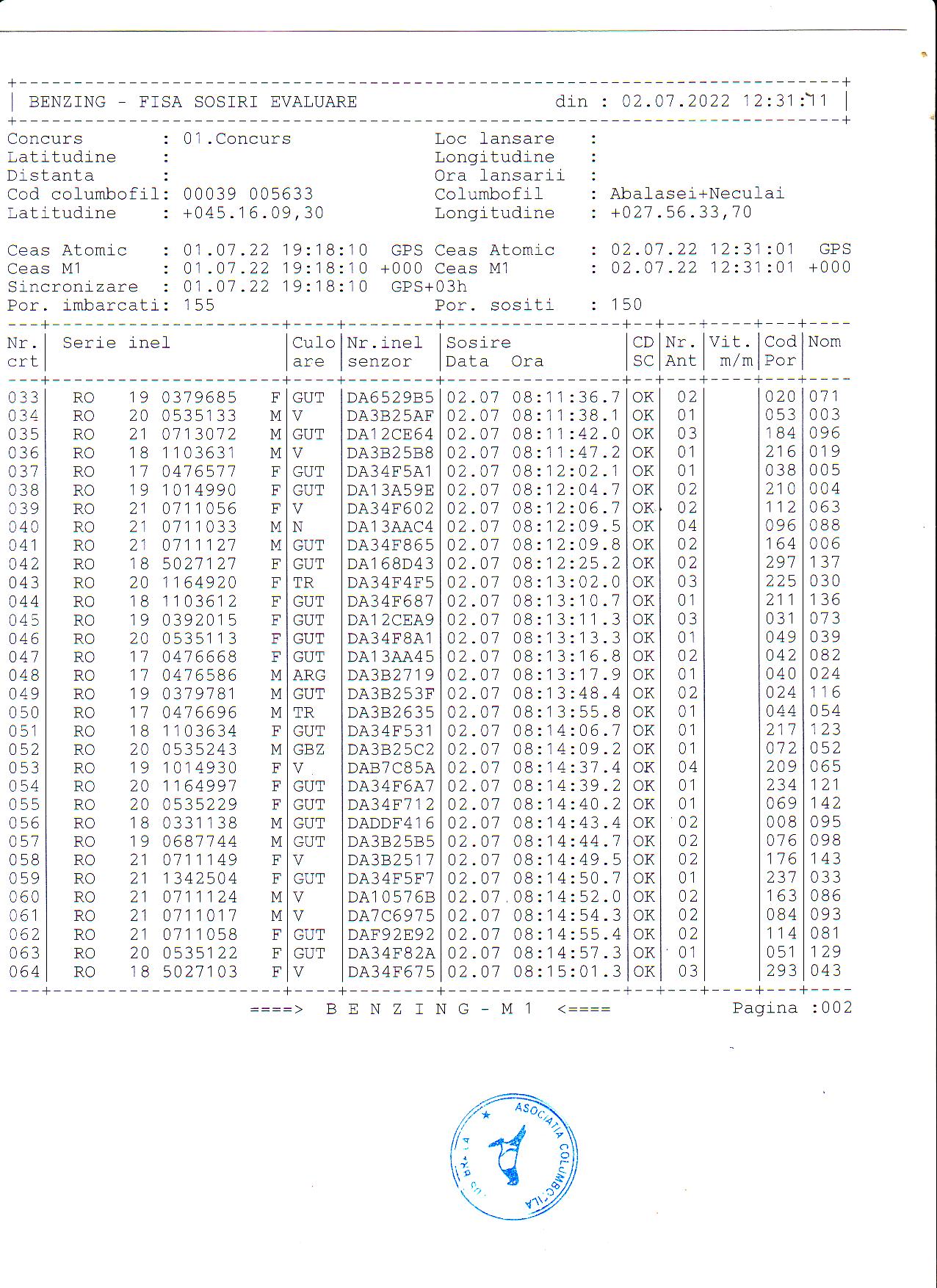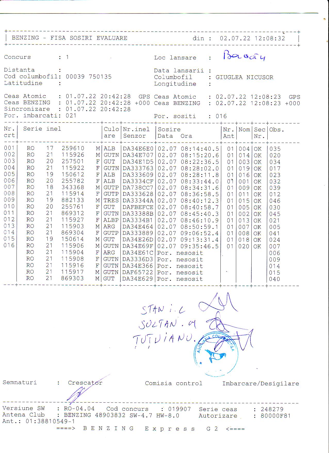 | 1. Procese verbale de imbarcare: | ||