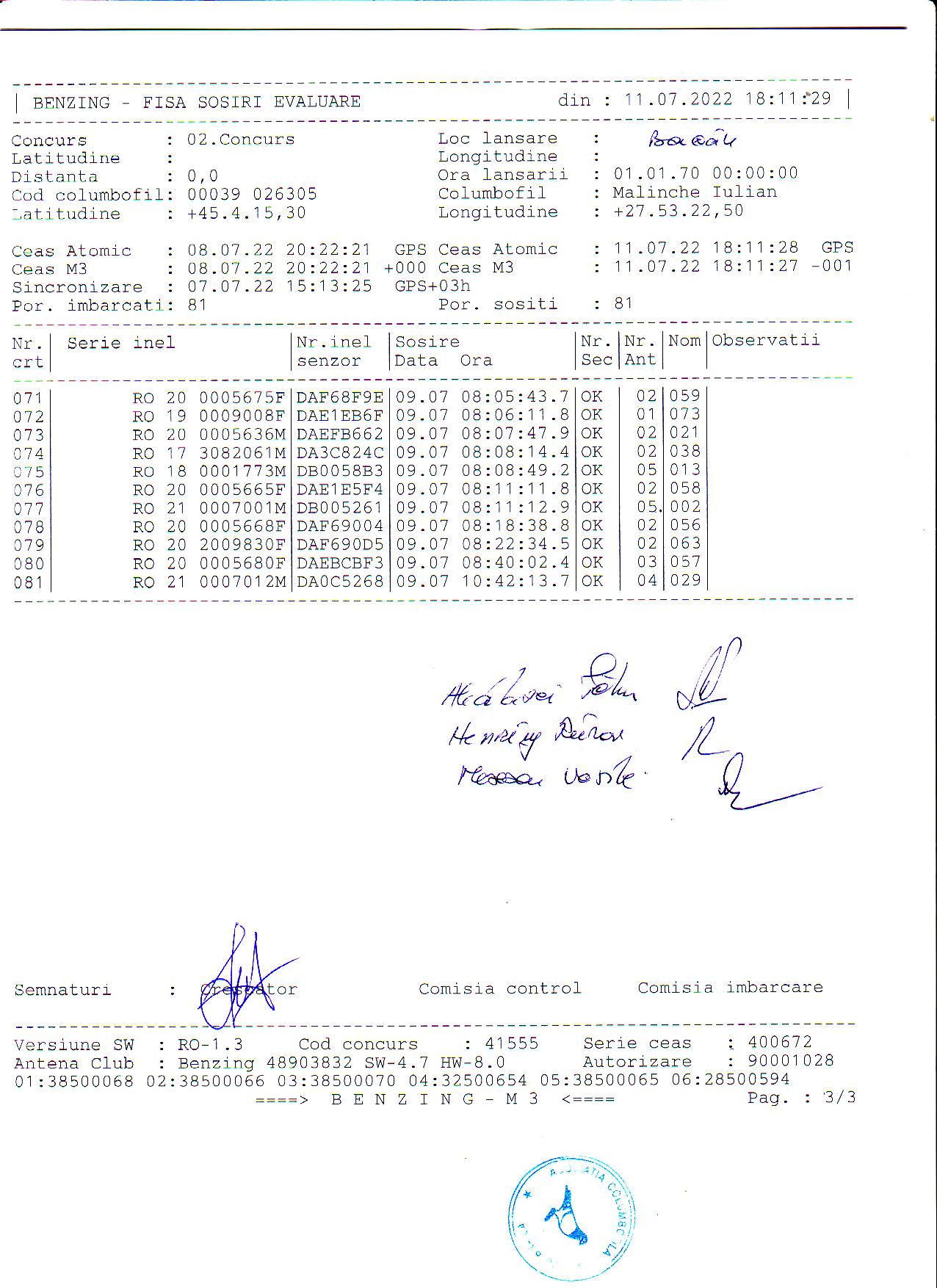 | 3 | Amosiesei Nicolae | BR384 | Braila | [IMB P0] | [DES P0] |