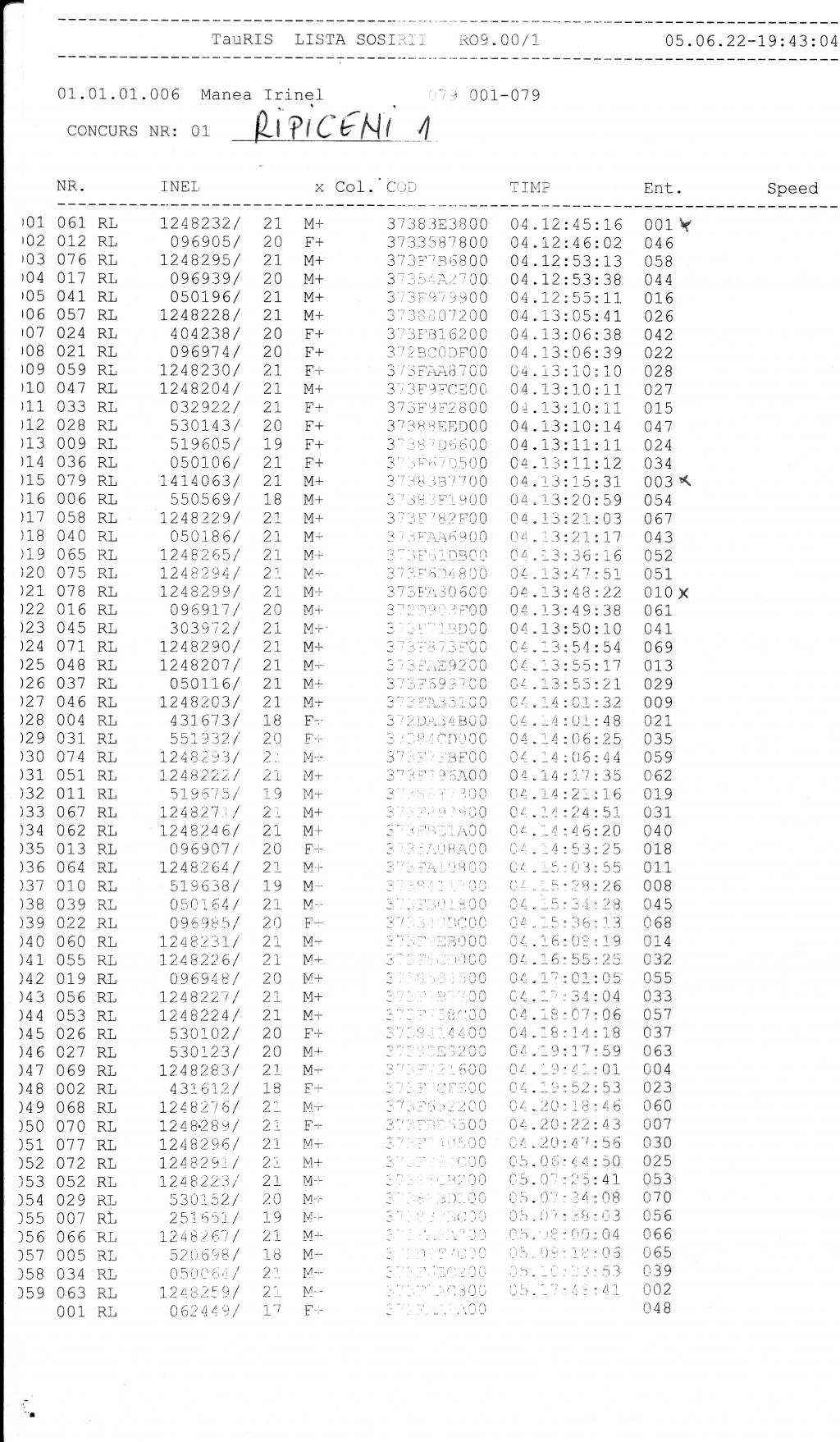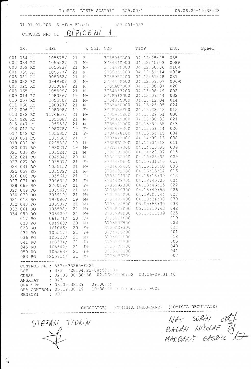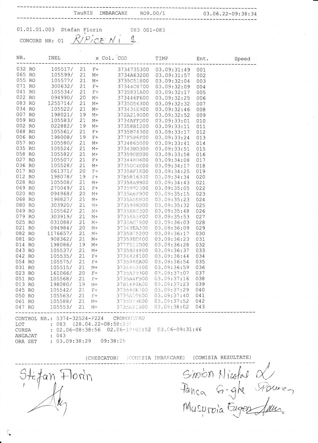 | 212 | Negutu Alexandru Silviu | DB823 | Top Pigeon Lunguletu |