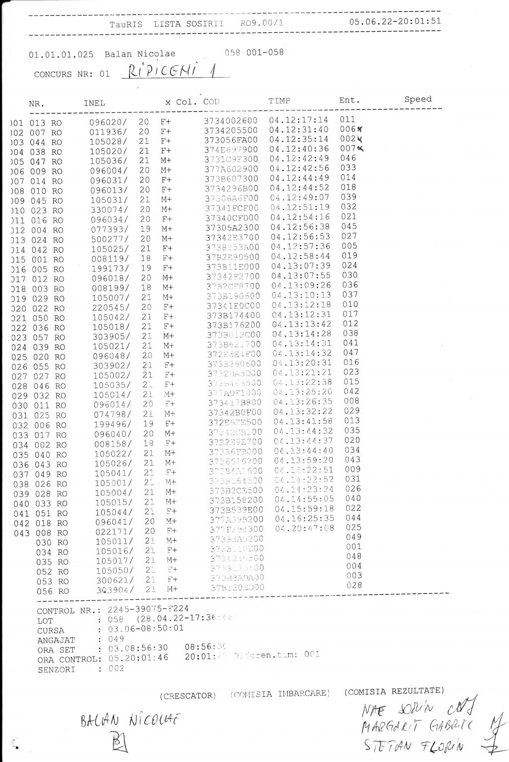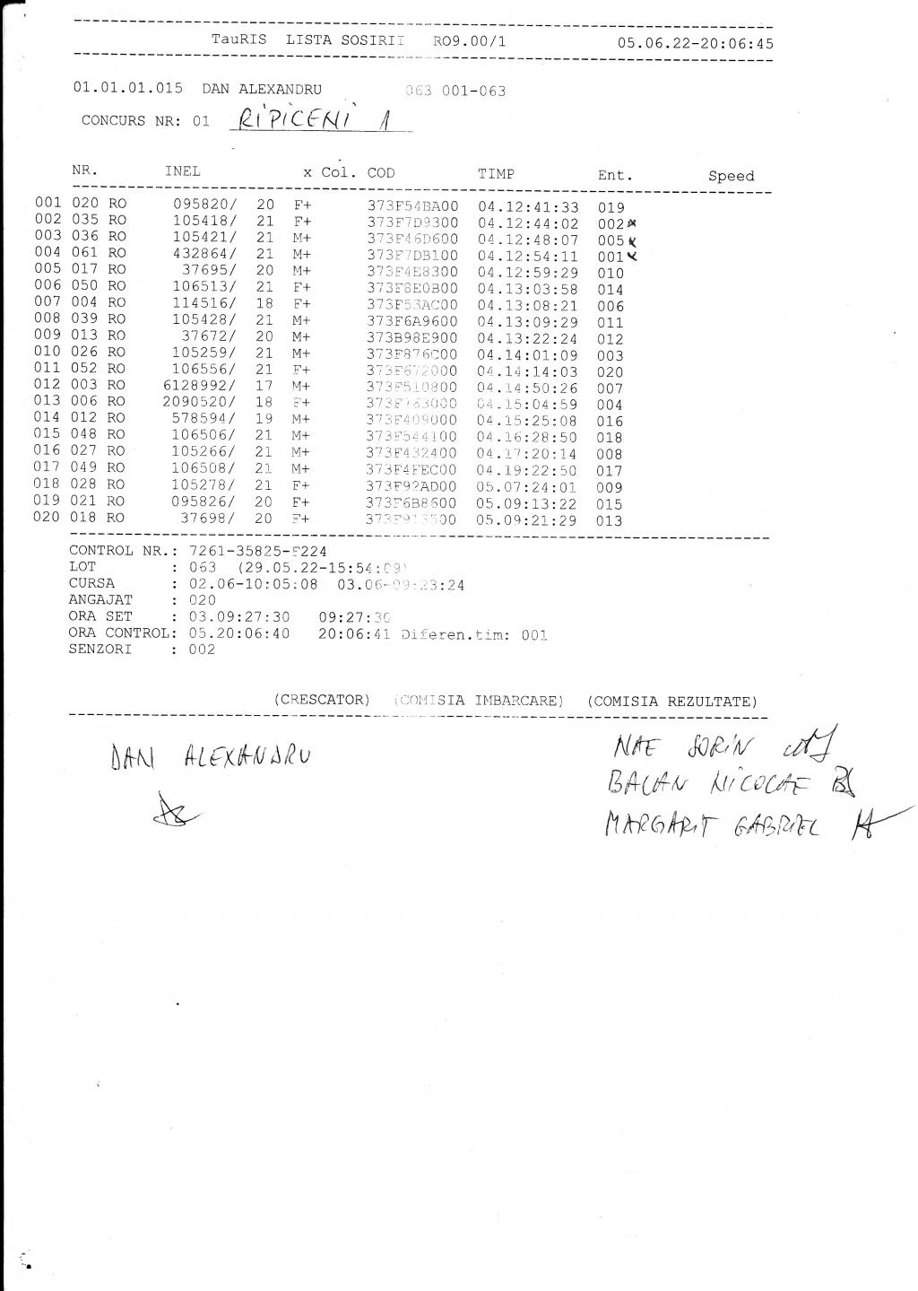 | 204 | Avramescu Cristian | DB820 | Top Pigeon Lunguletu |