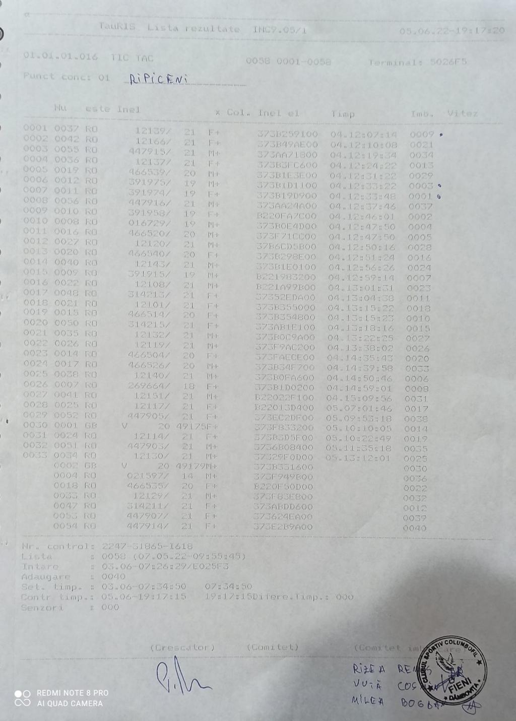 | 205 | Craciun Mihail | DB822 | Top Pigeon Lunguletu |