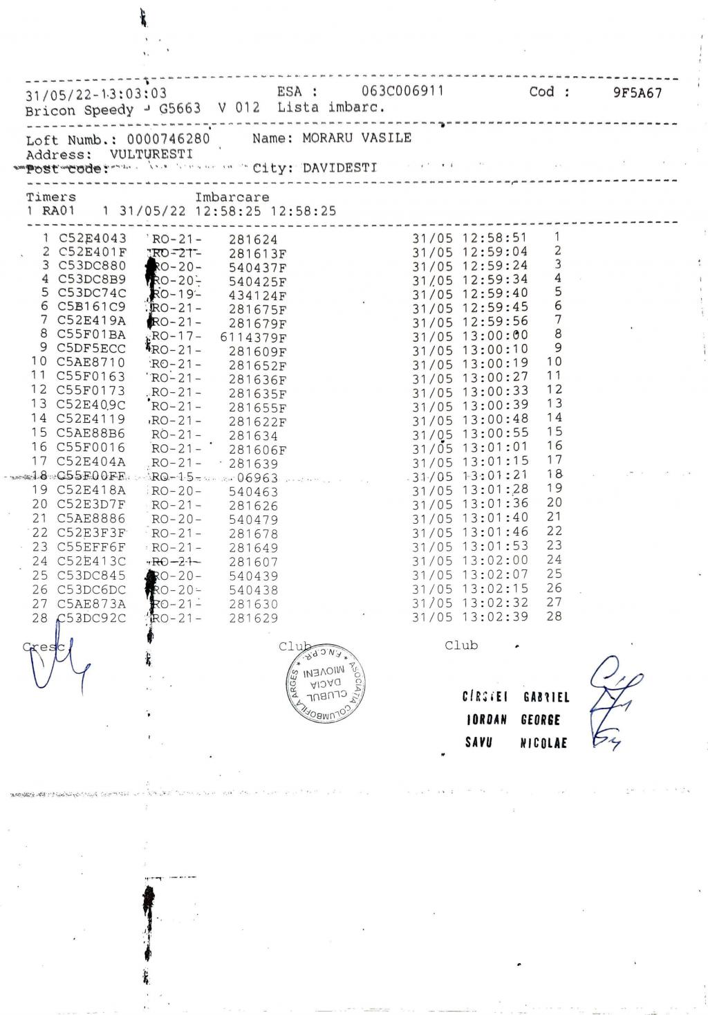 | 1. Procese verbale de imbarcare: | ||||||||
