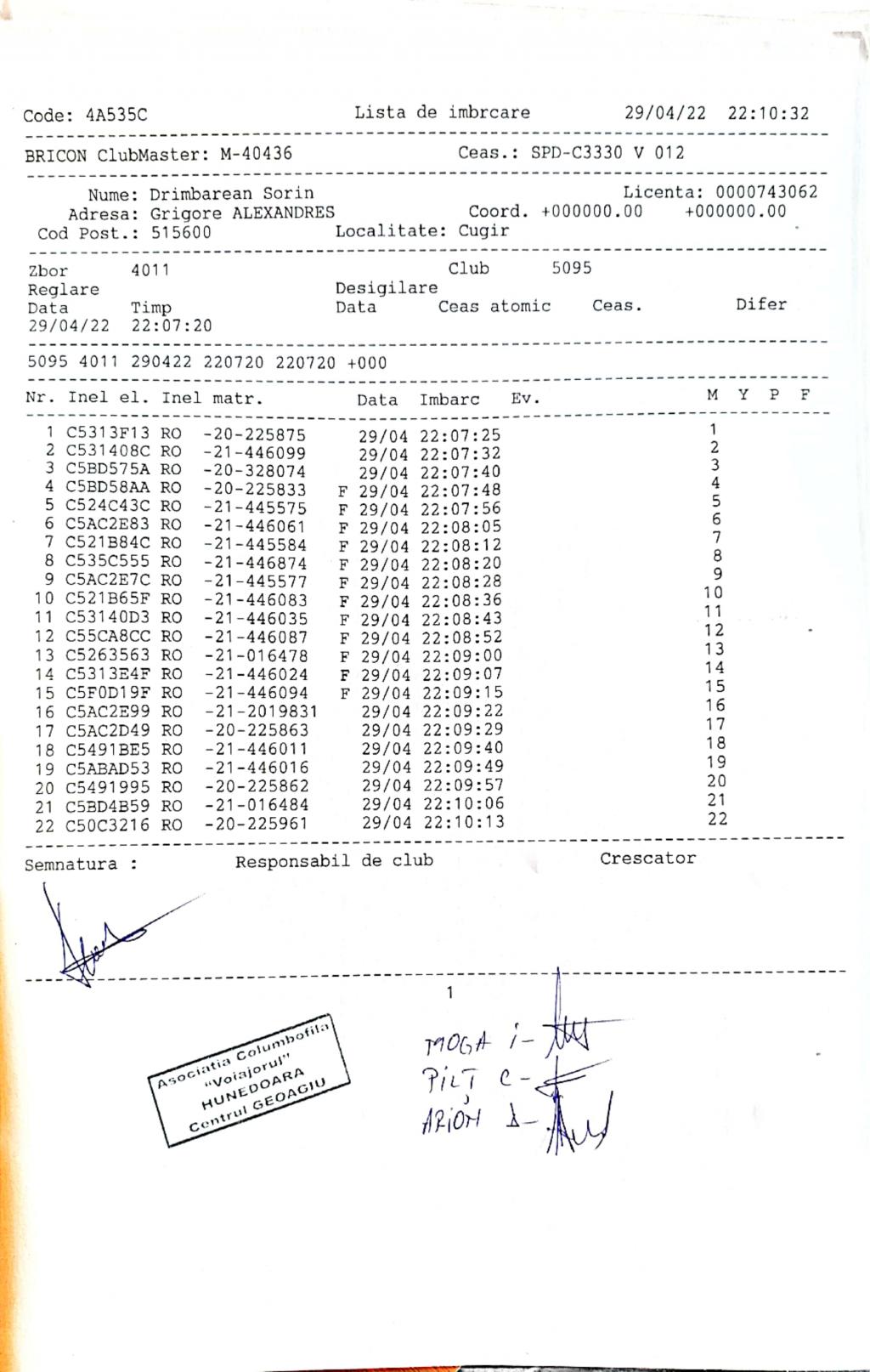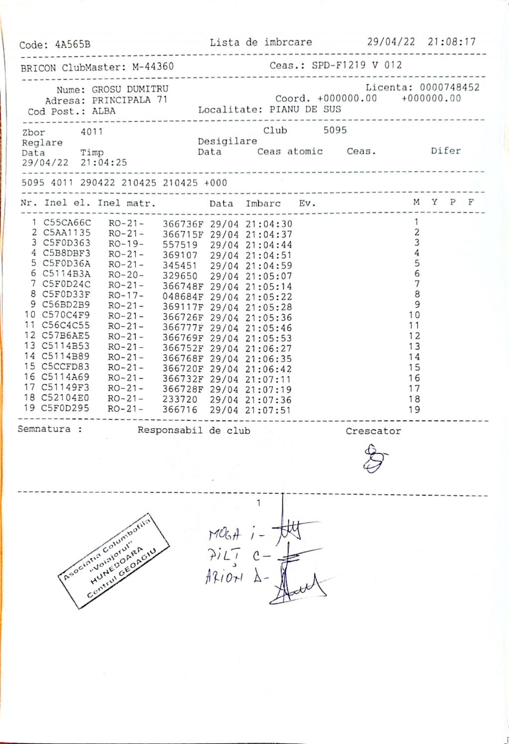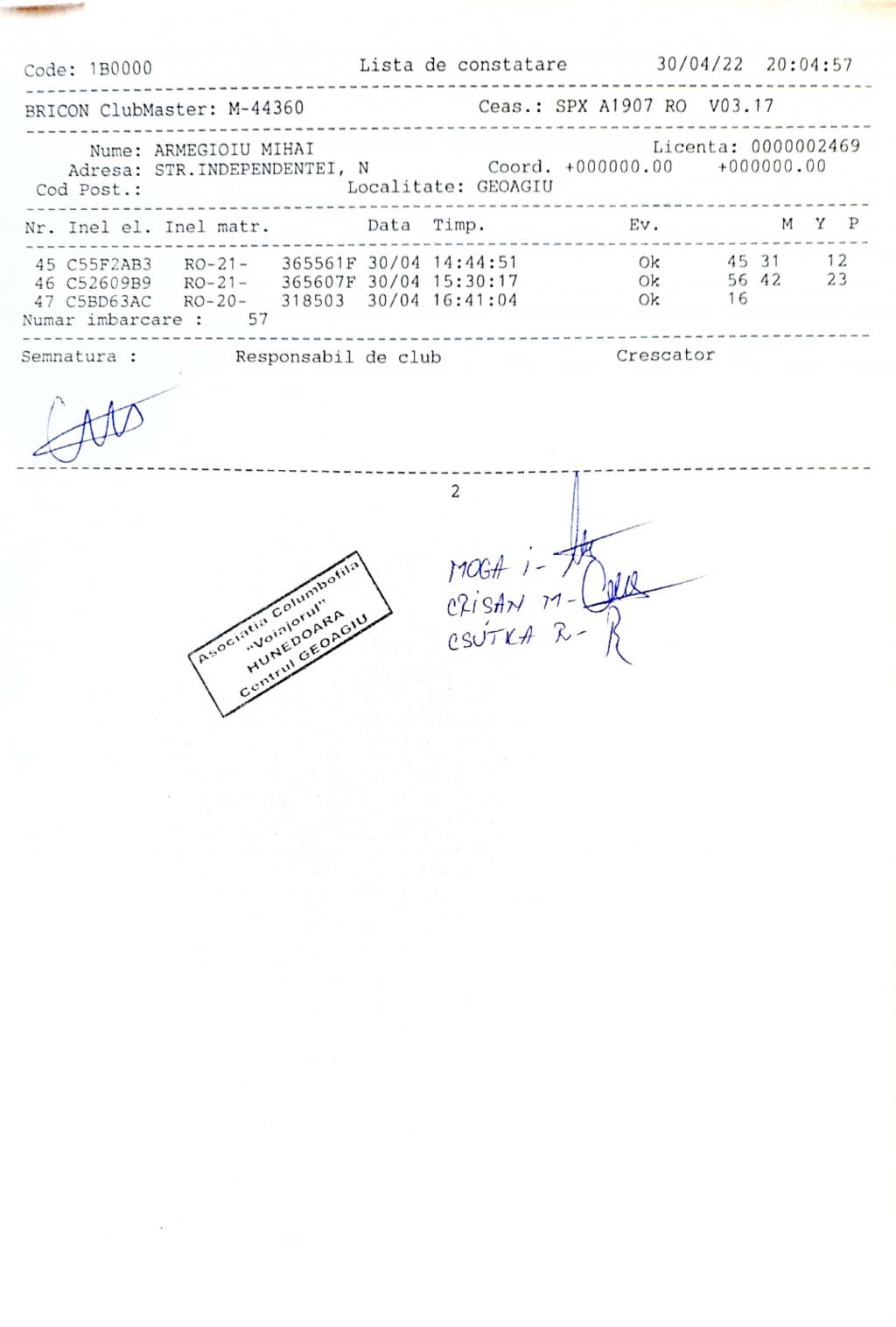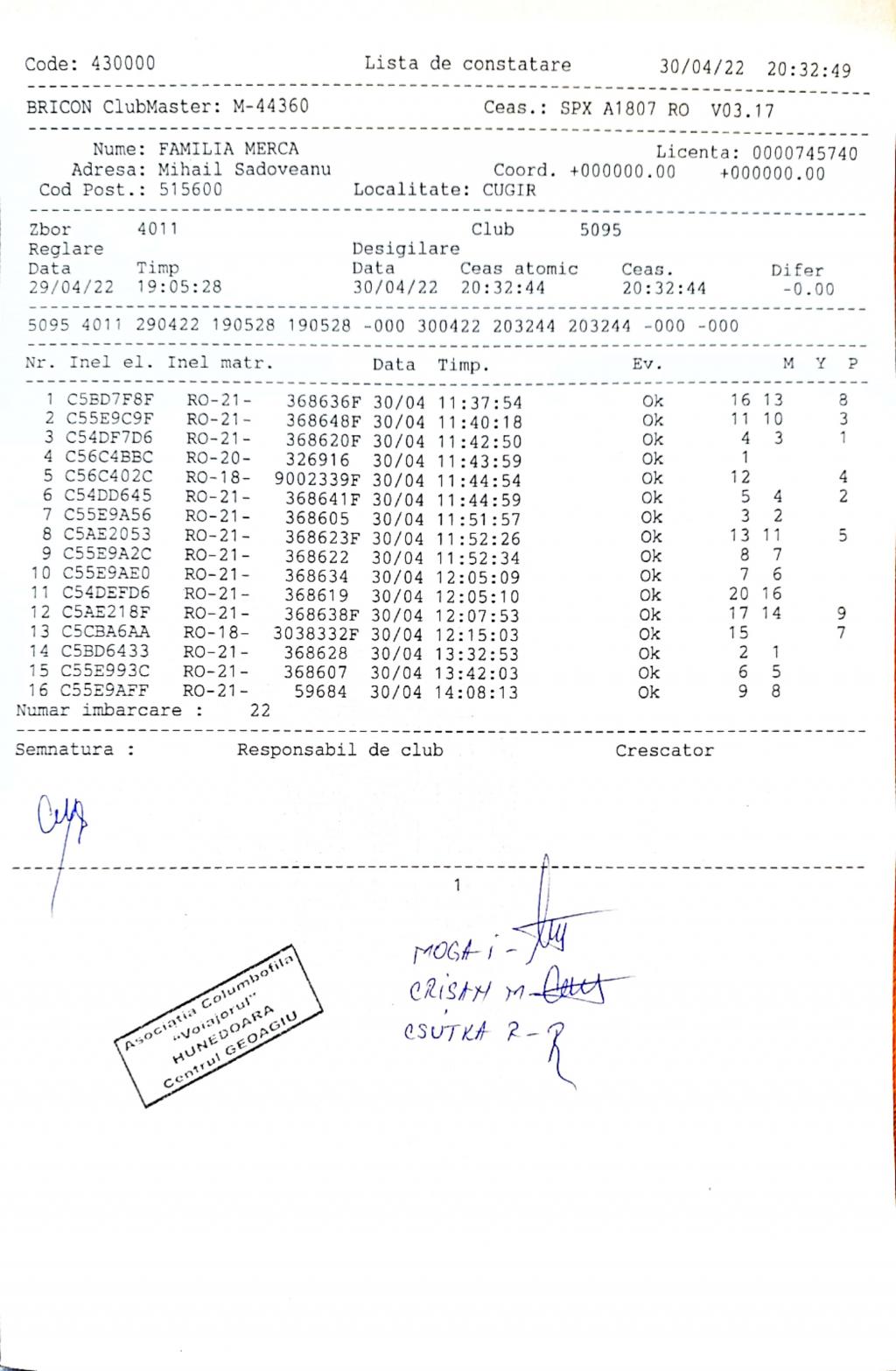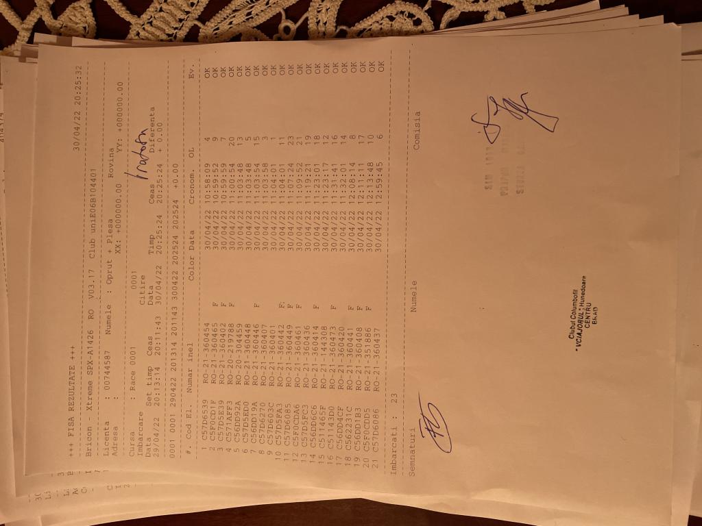 | 1 | Almasan Vasile + Ionut + Alin | HD1009 | BRAD |
