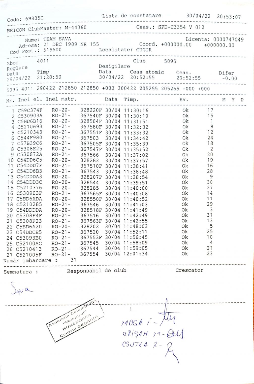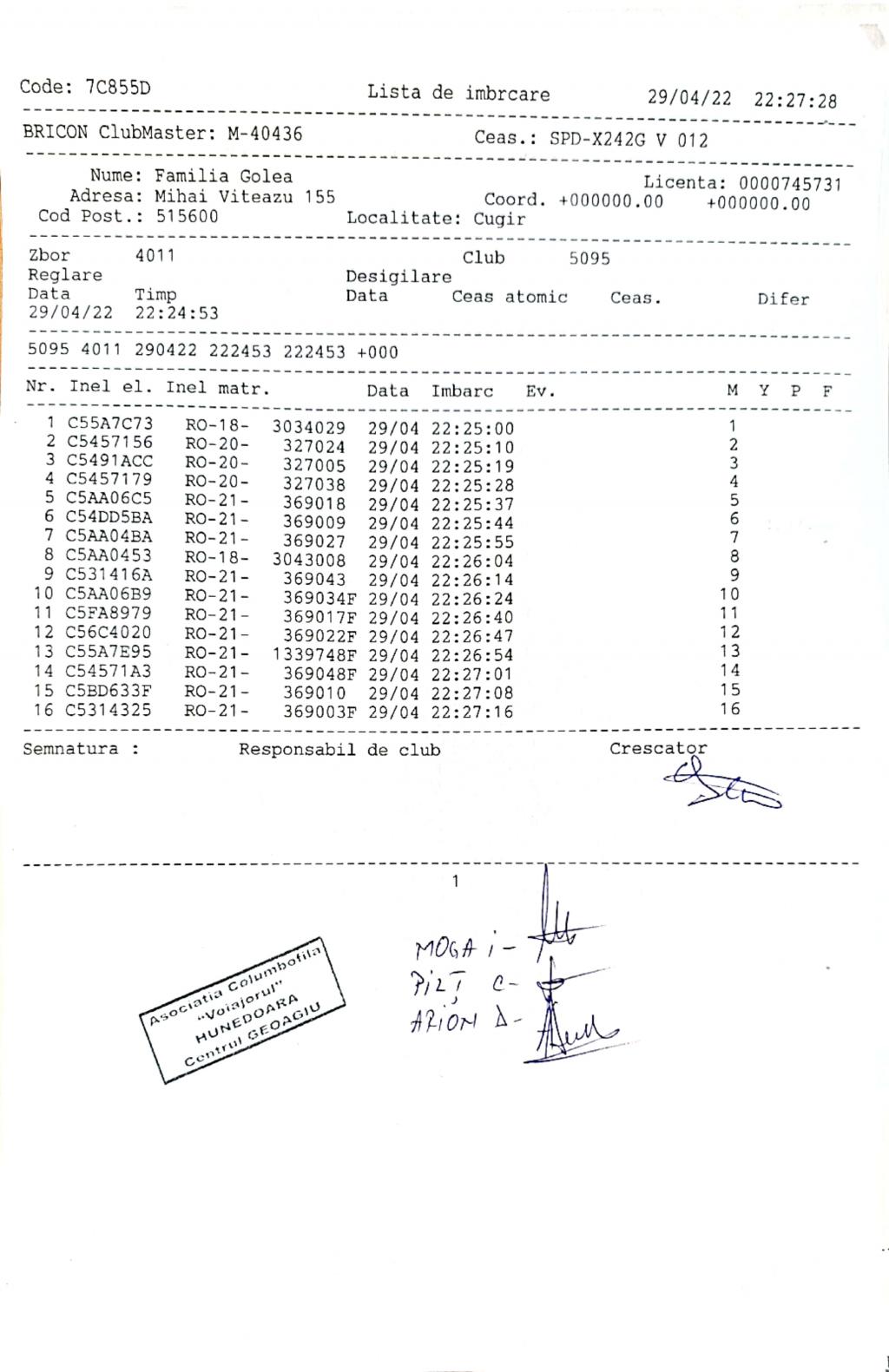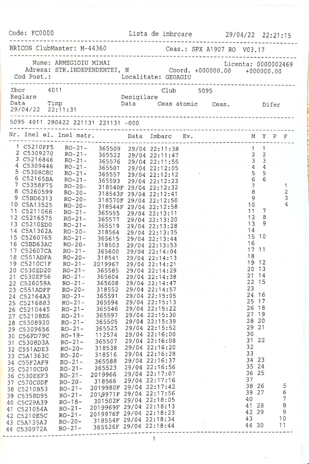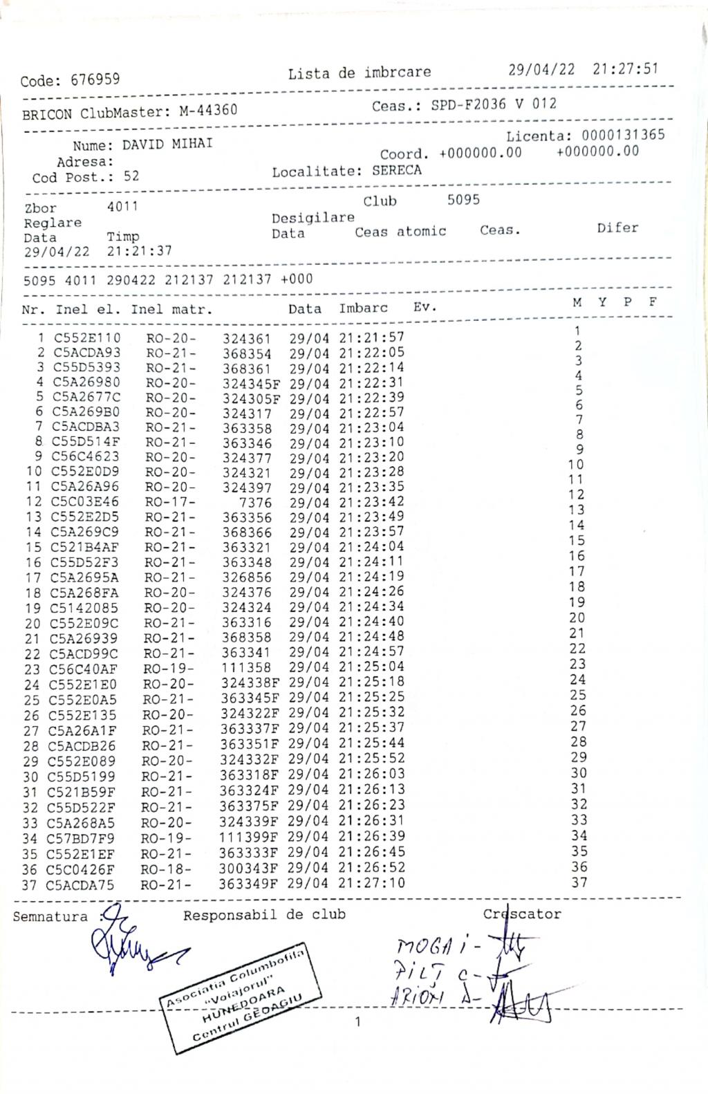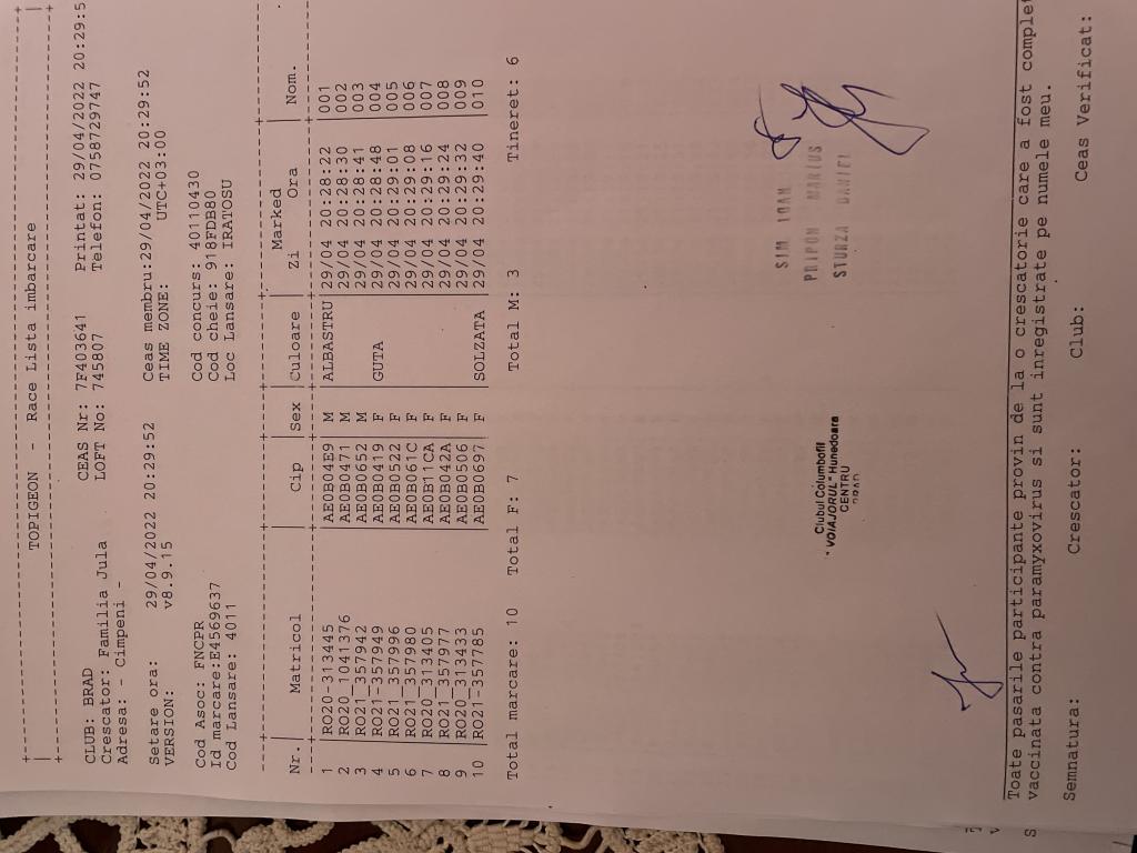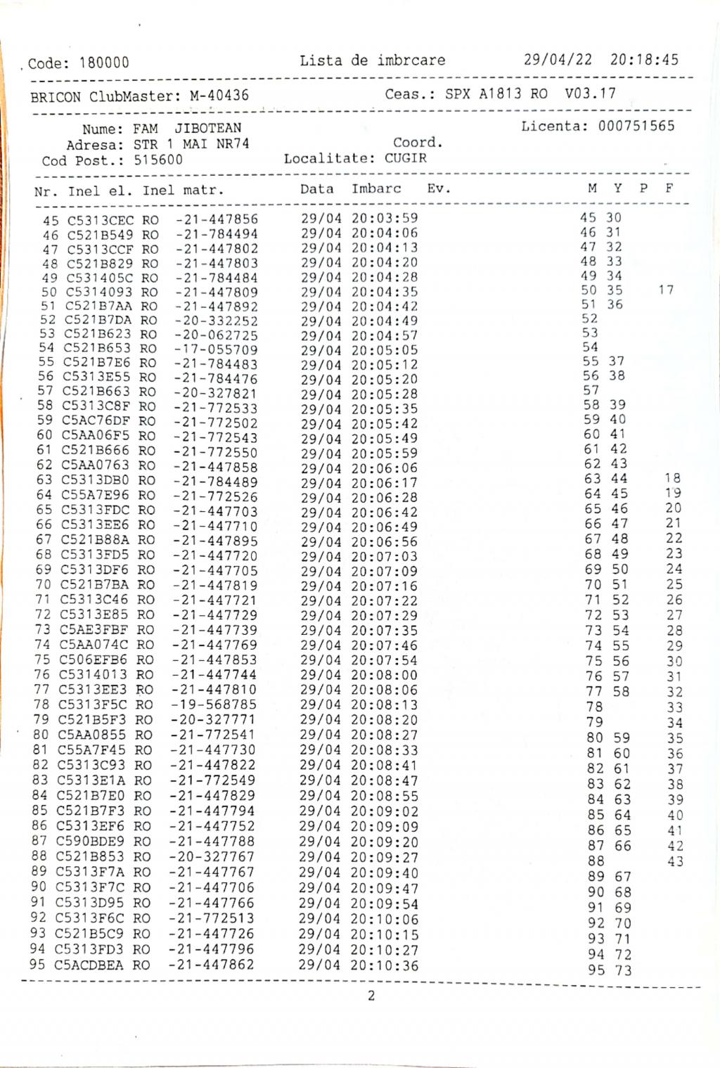 | 1 | Almasan Vasile + Ionut + Alin | HD1009 | BRAD |
