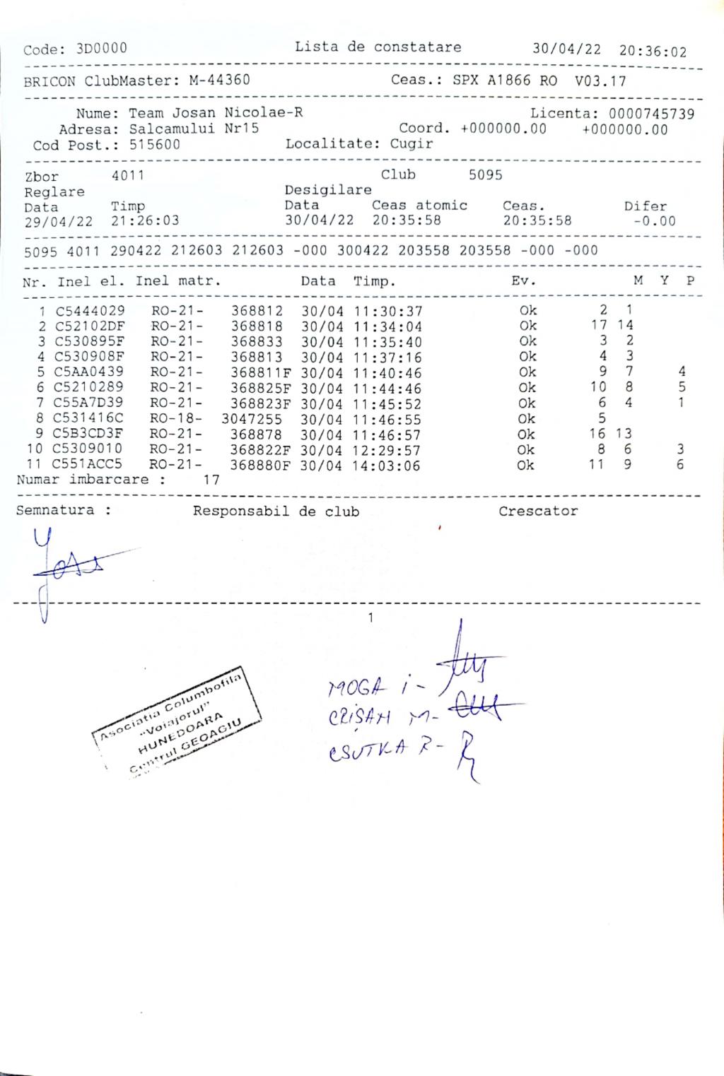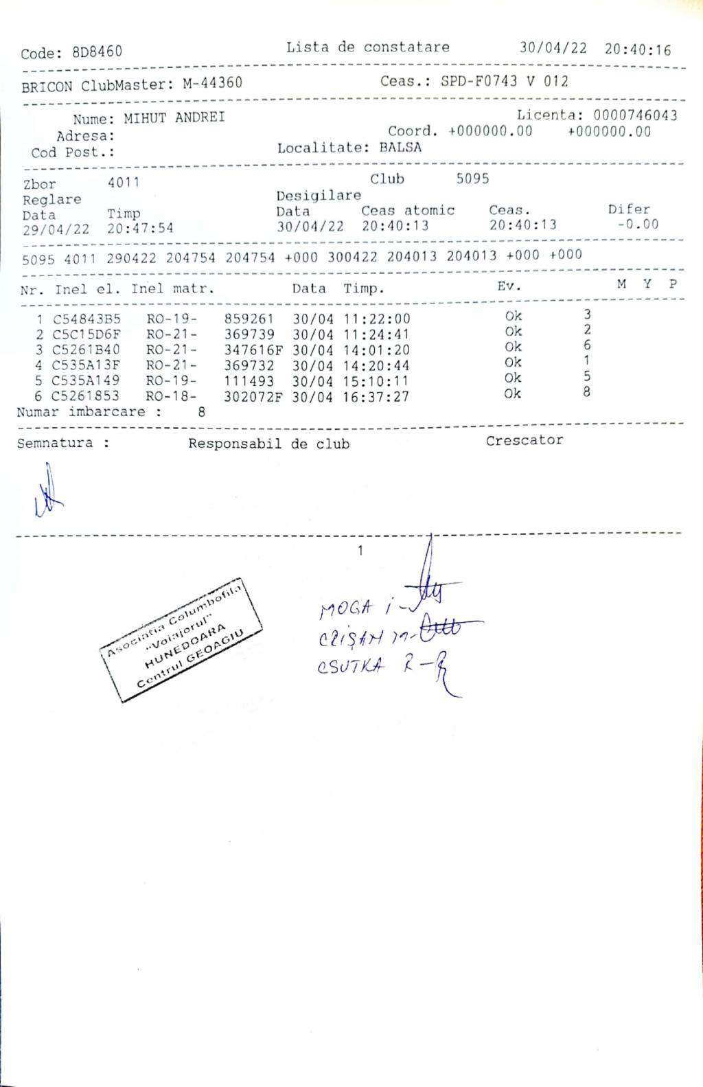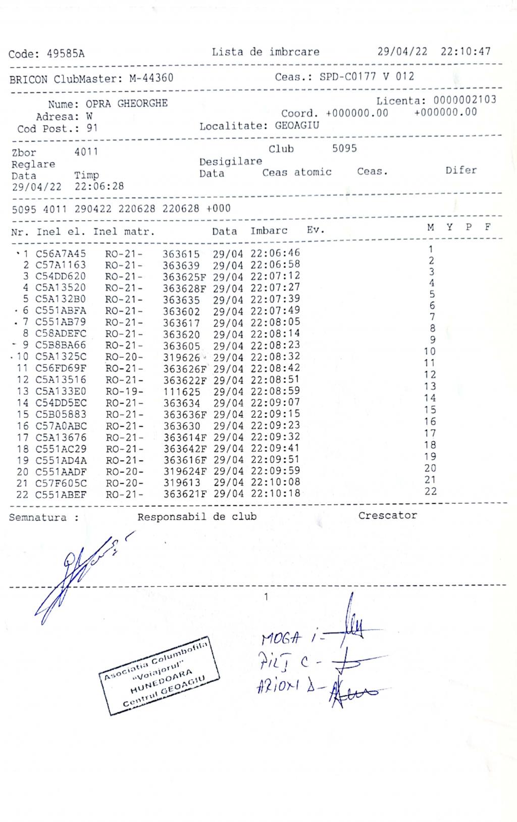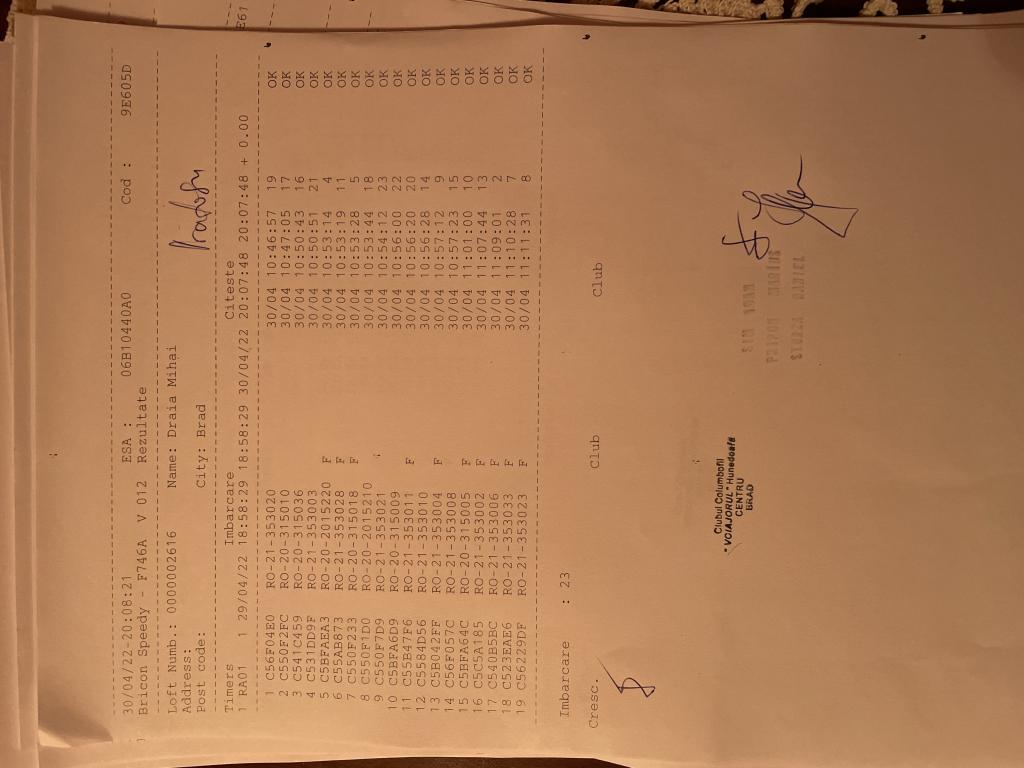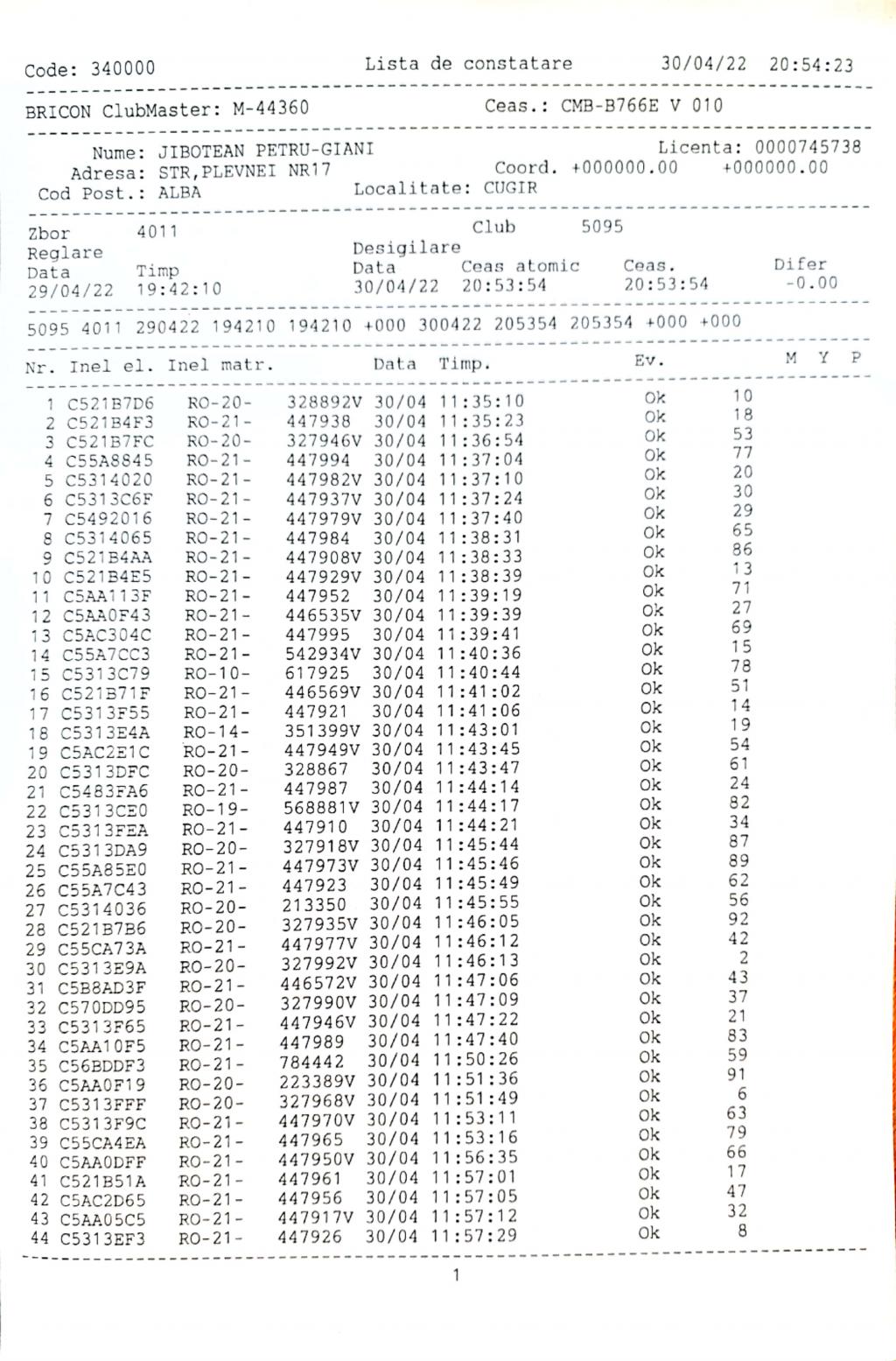 | 1 | Almasan Vasile + Ionut + Alin | HD1009 | BRAD |