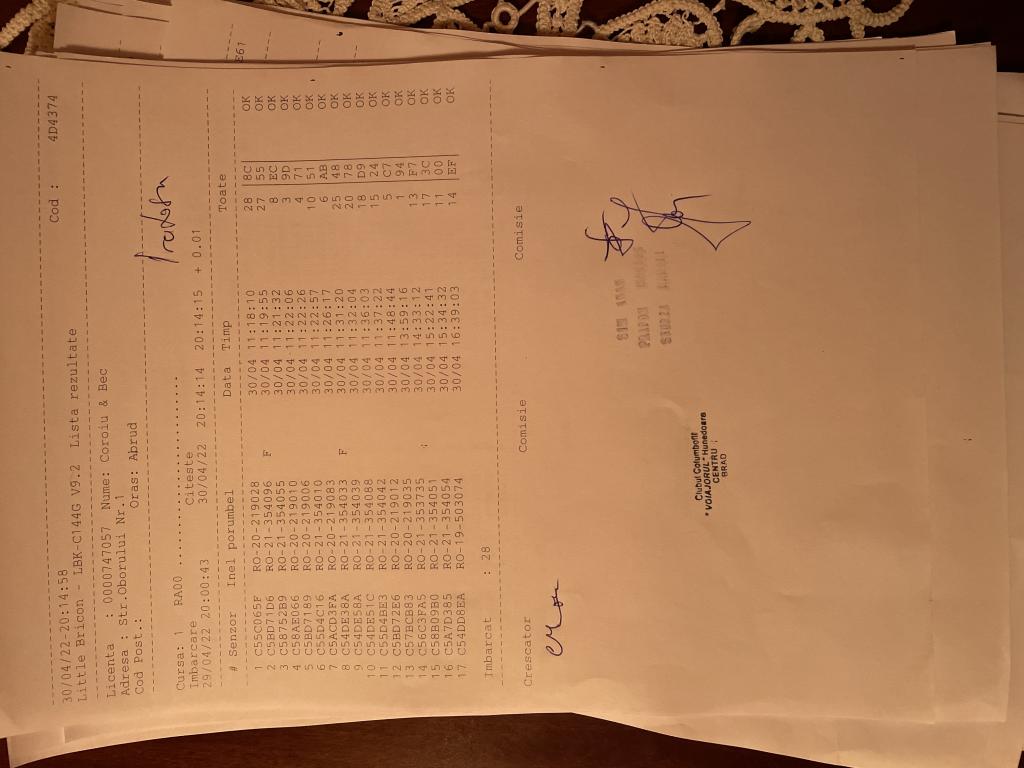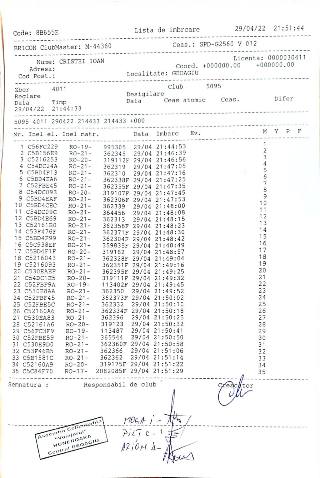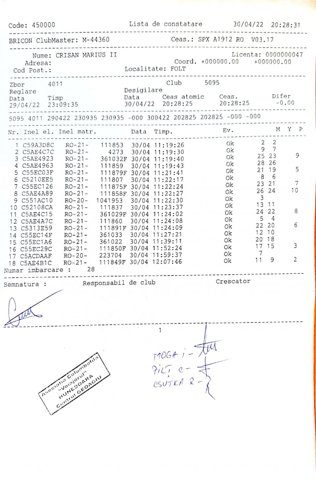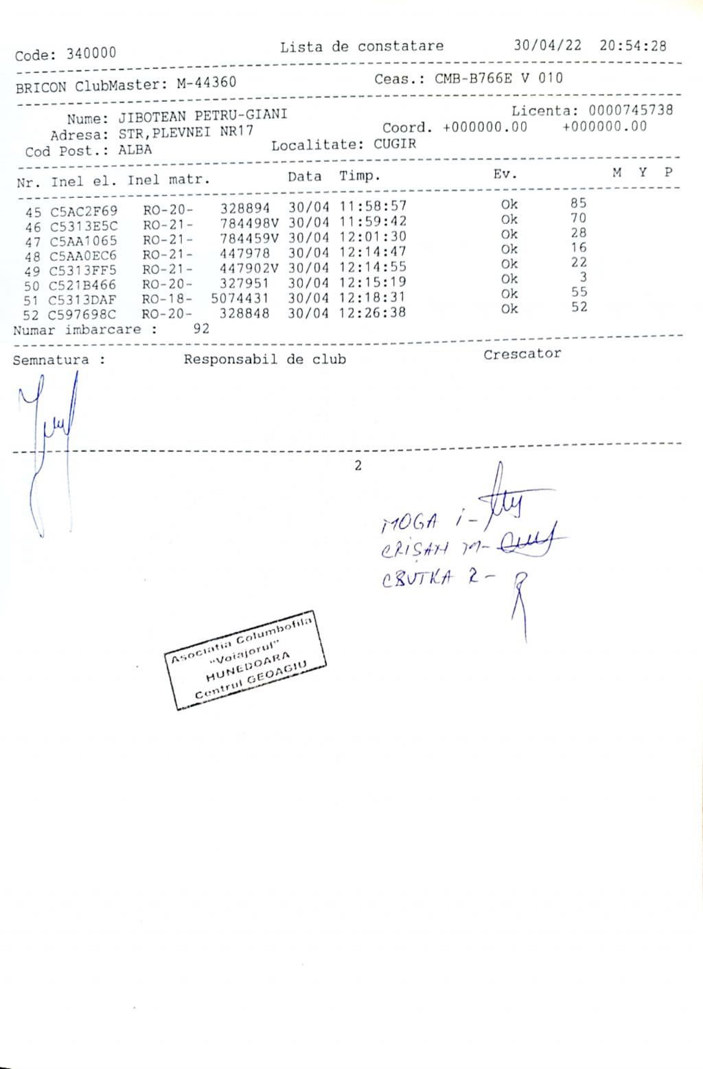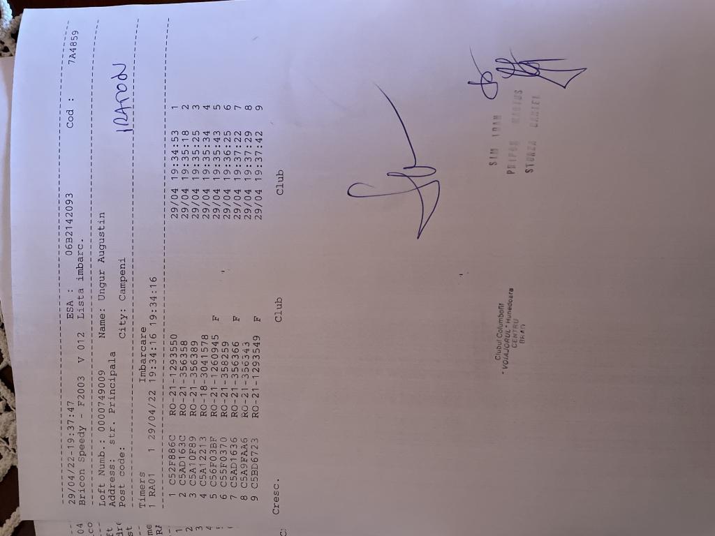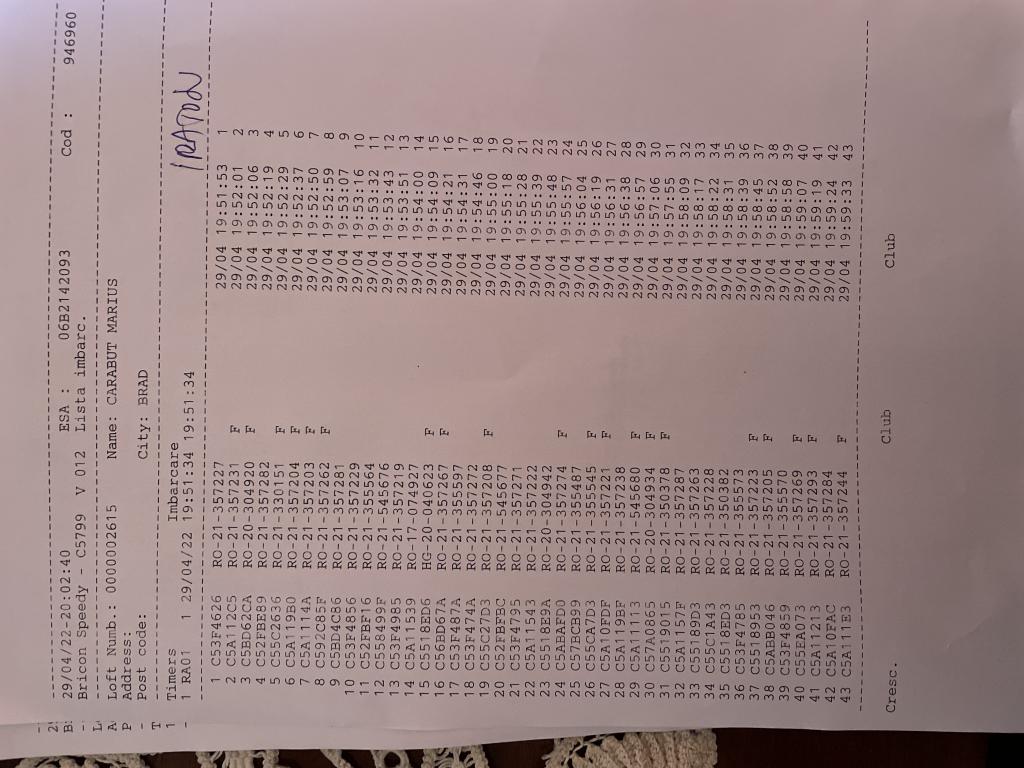 | 1 | Almasan Vasile + Ionut + Alin | HD1009 | BRAD |