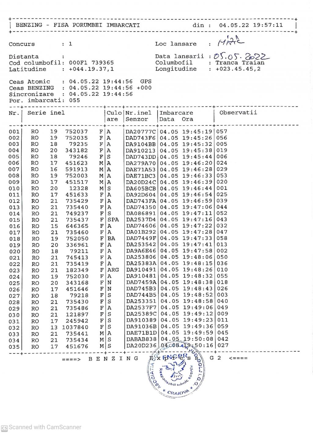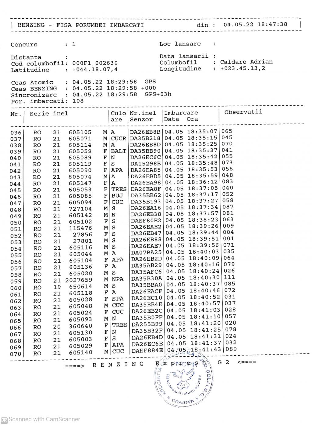 | 31 | Tranca Traian | DJ630 | Gold Pigeons Craiova | [IMB P0] [IMB P1] | [DES P0] [DES P1] |