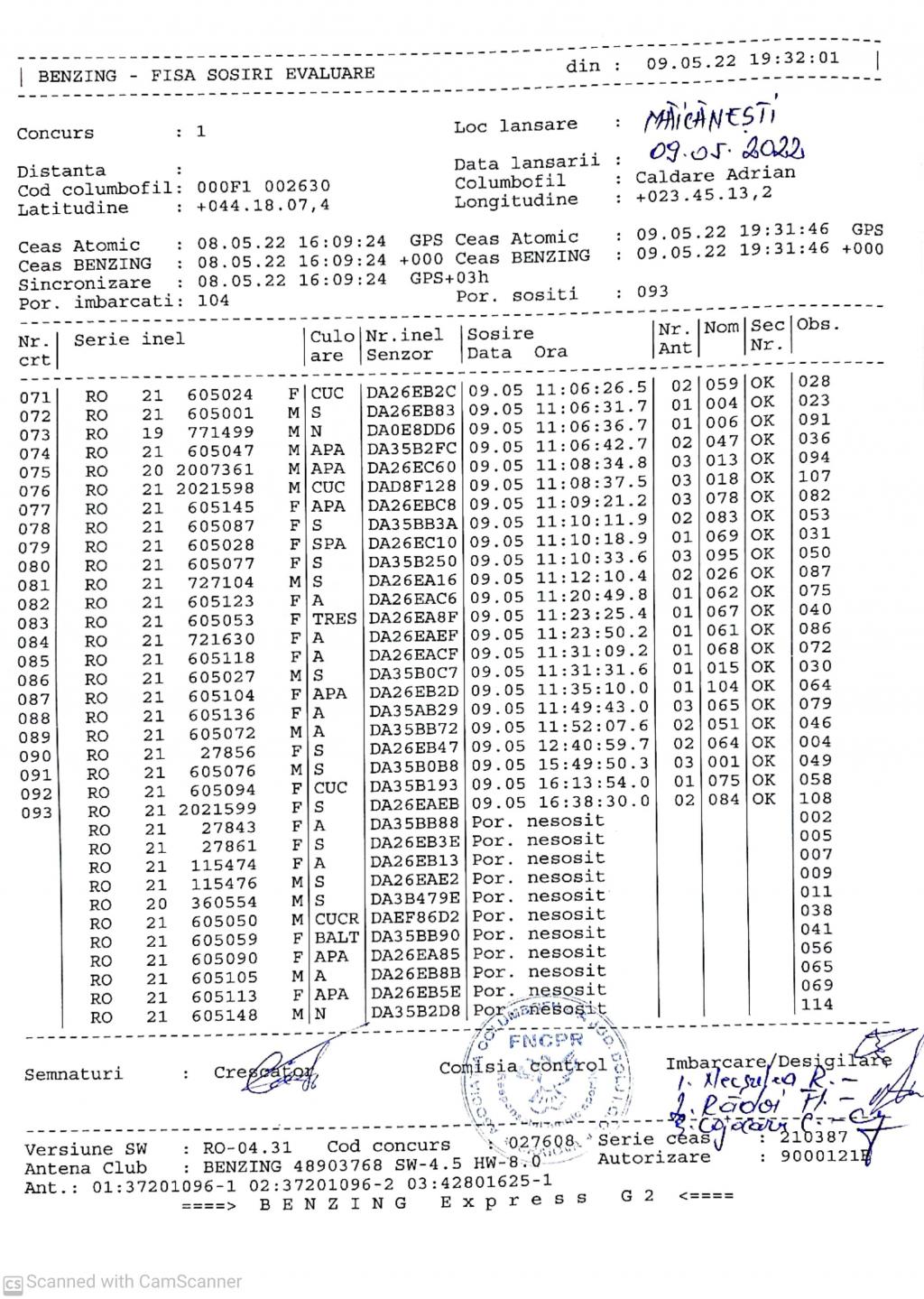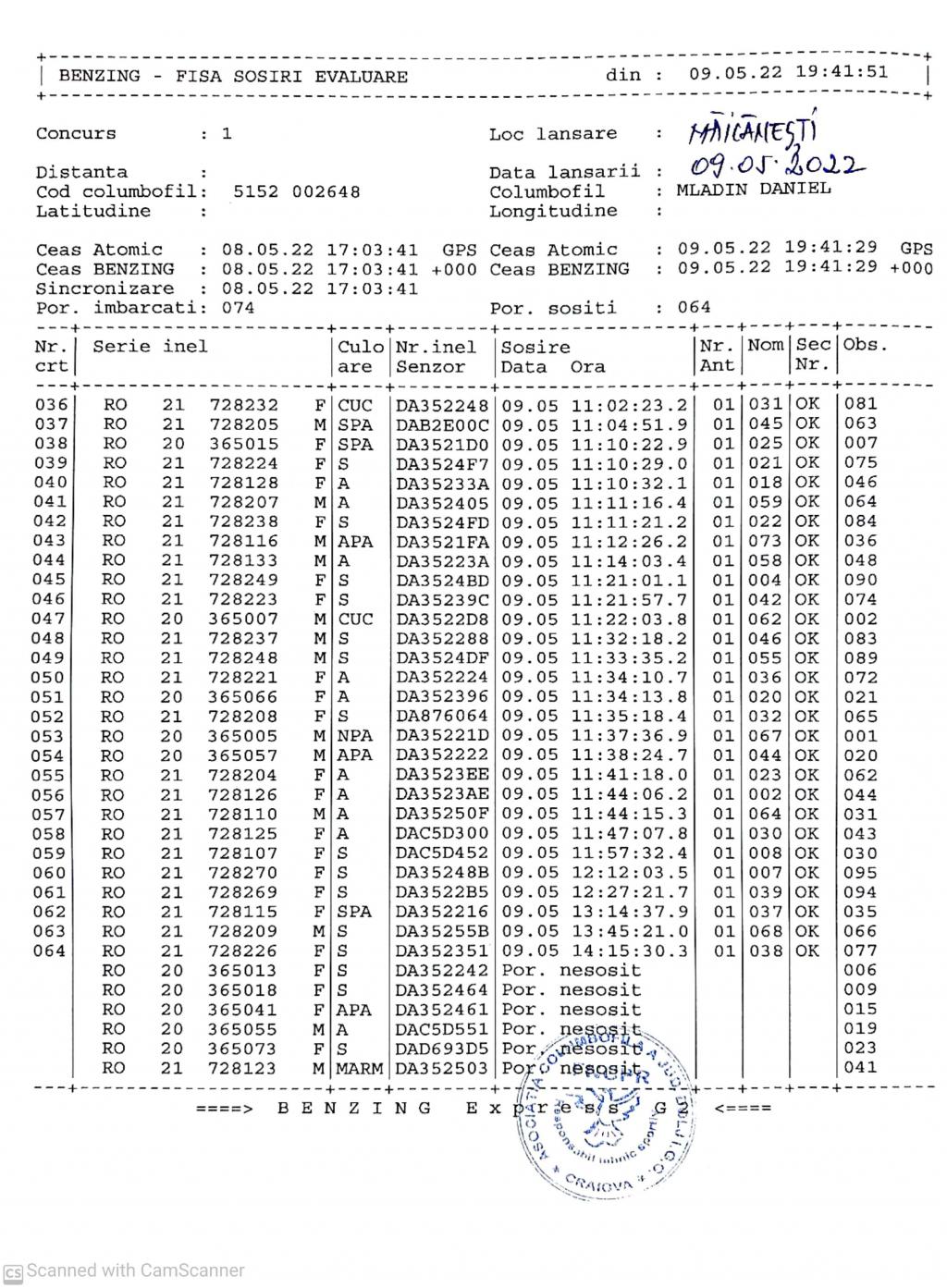 | 6 | Ciurlin Adi Valentin | DJ874 | Gold Pigeons Craiova | [IMB P0] | [DES P0] |