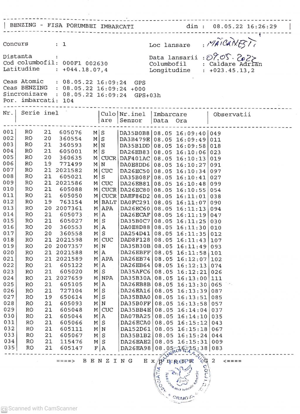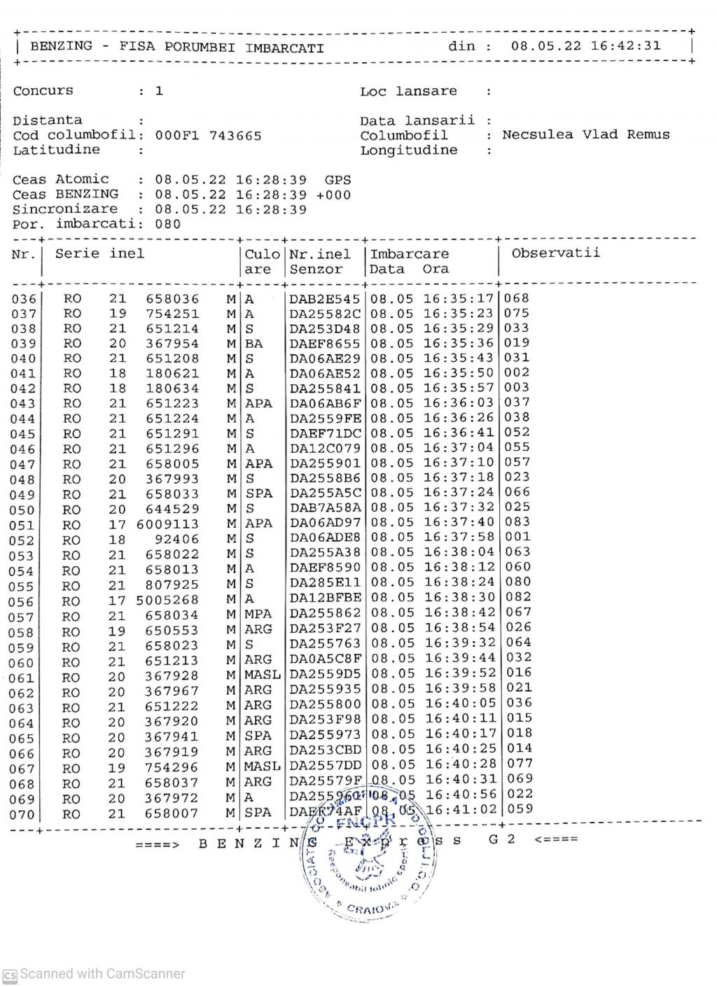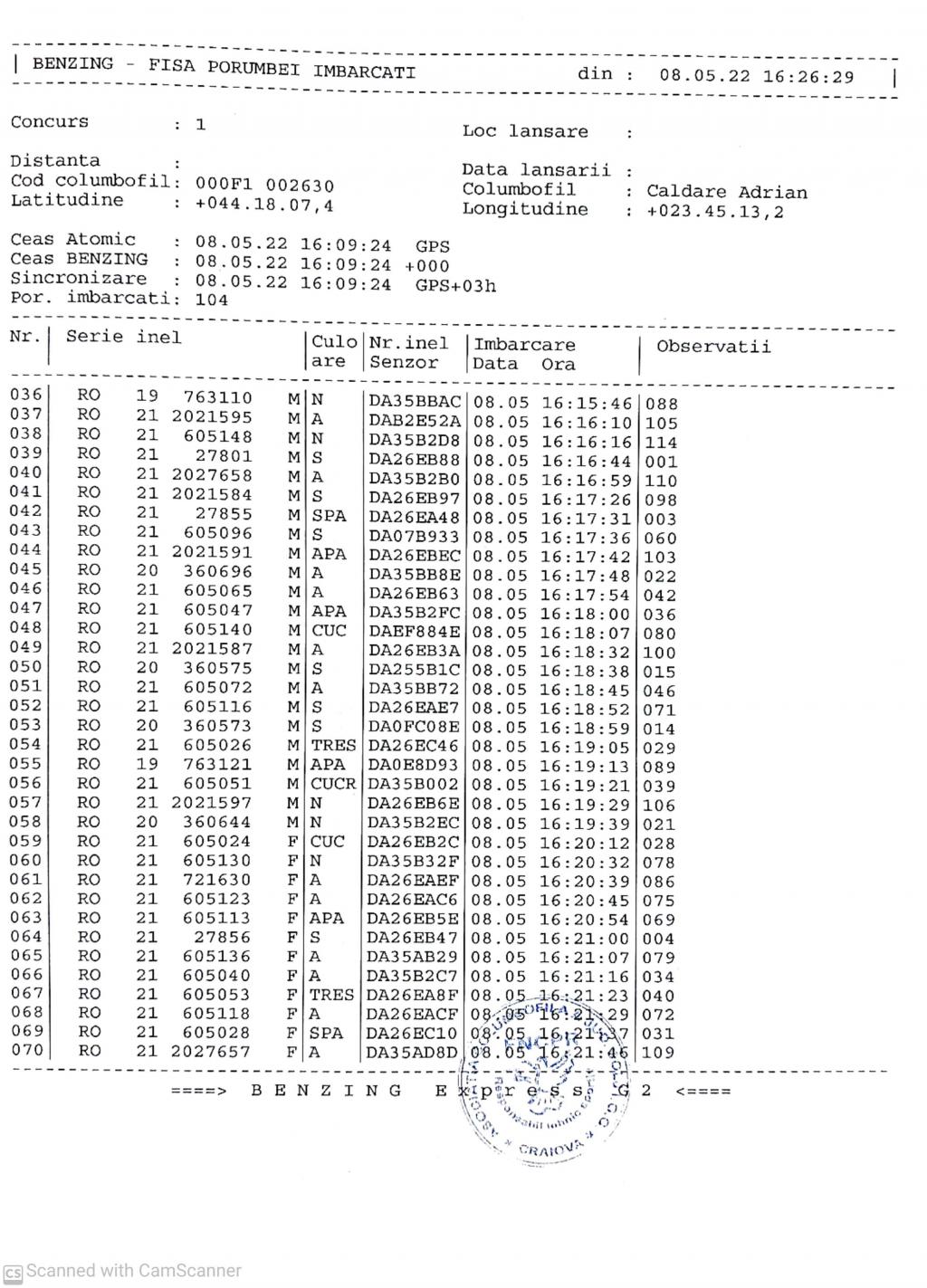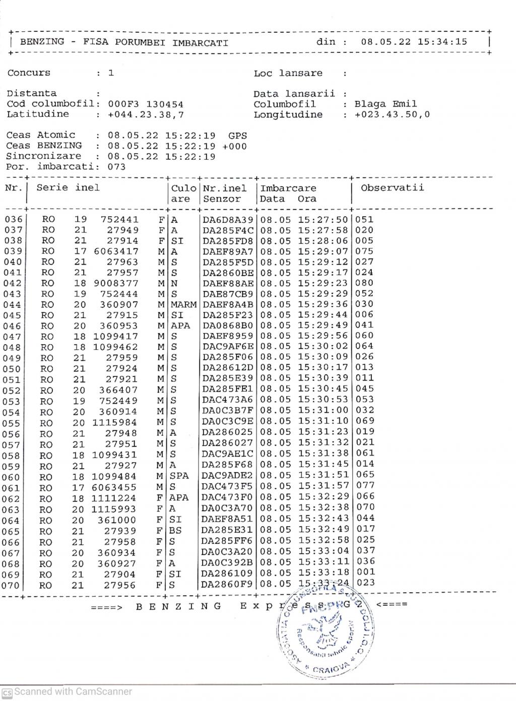 | 32 | Tranca Traian | DJ630 | Gold Pigeons Craiova | [IMB P0] [IMB P1] | [DES P0] [DES P1] |