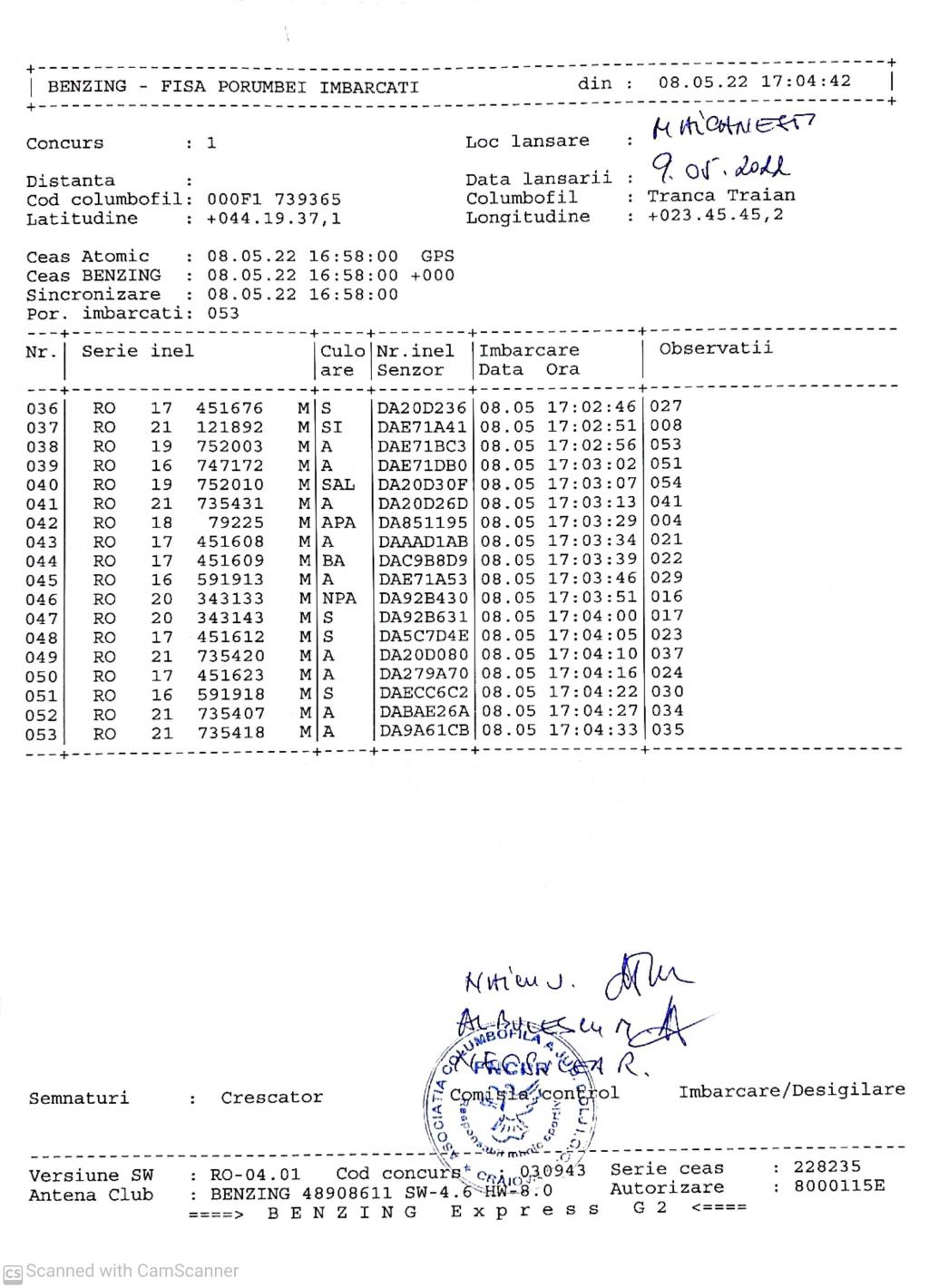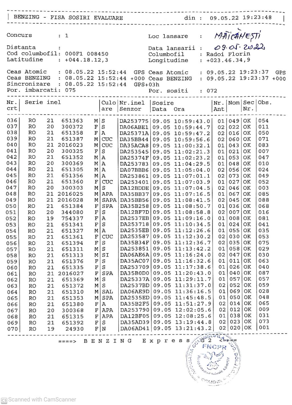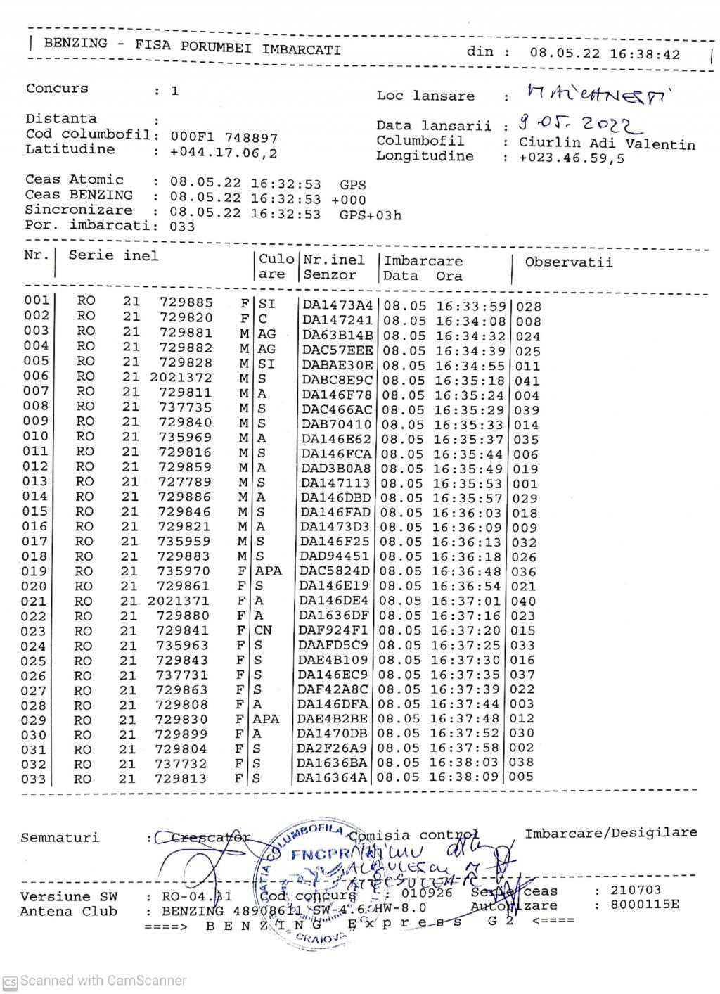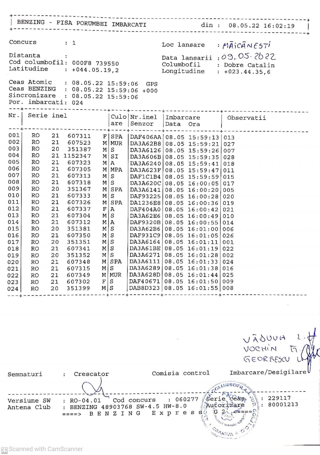 | 32 | Tranca Traian | DJ630 | Gold Pigeons Craiova | [IMB P0] [IMB P1] | [DES P0] [DES P1] |