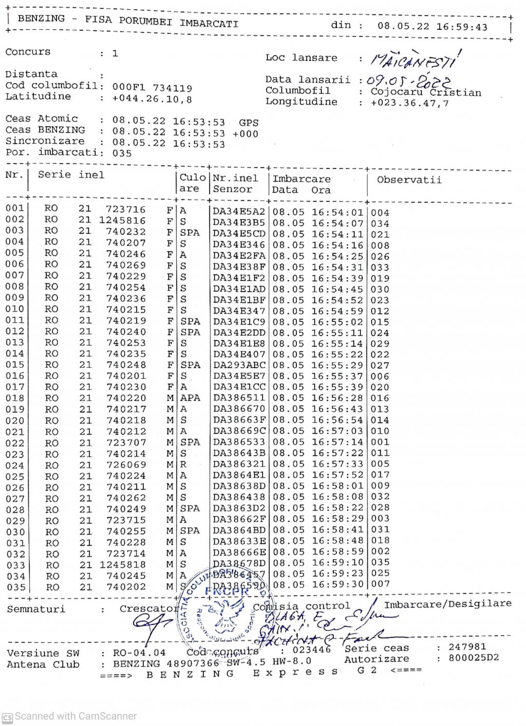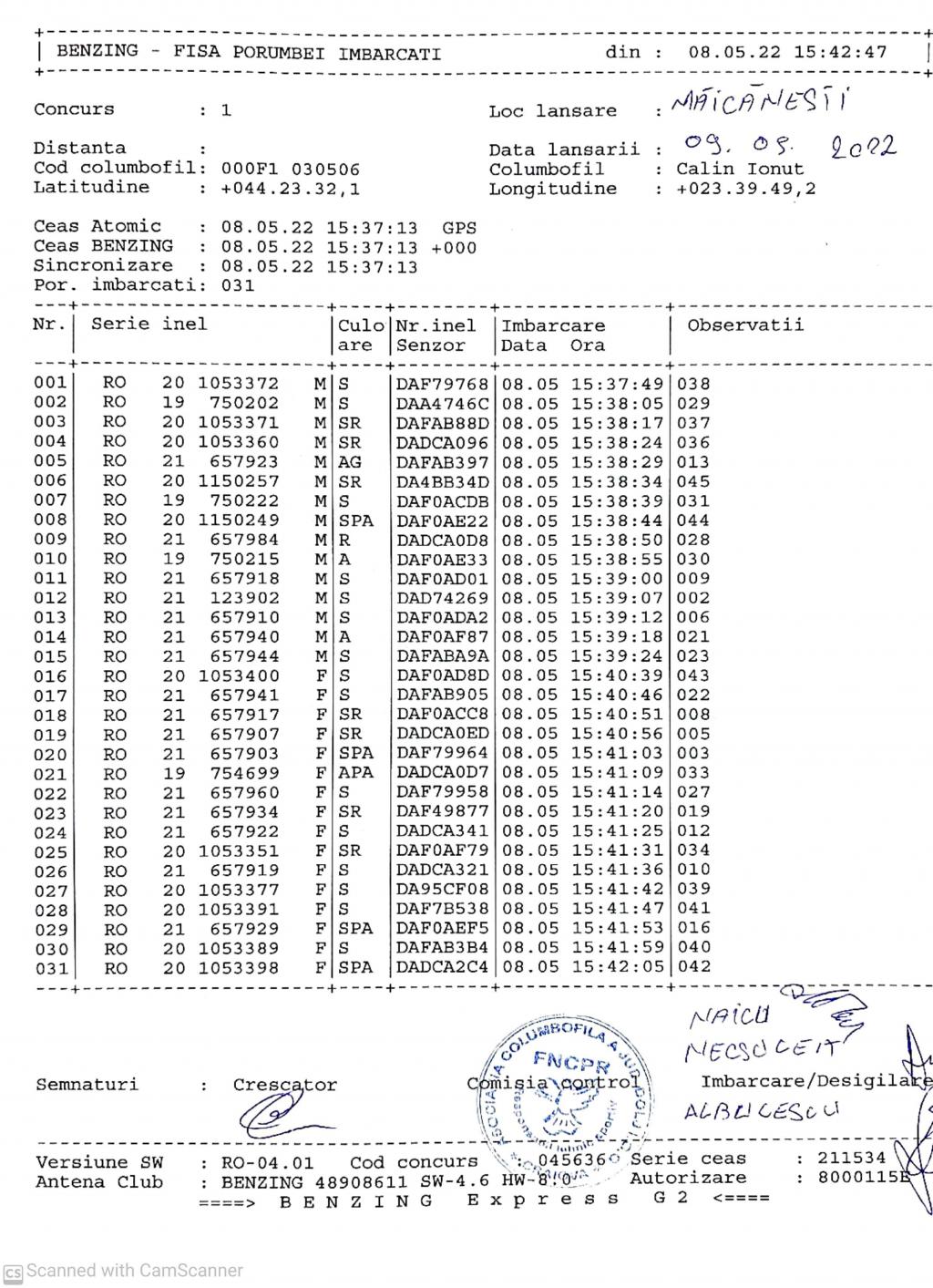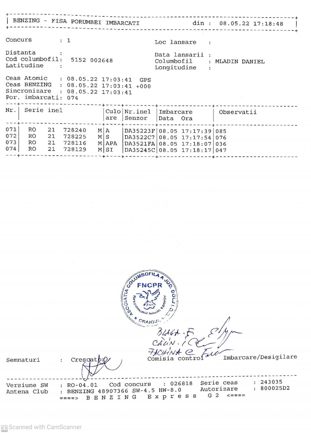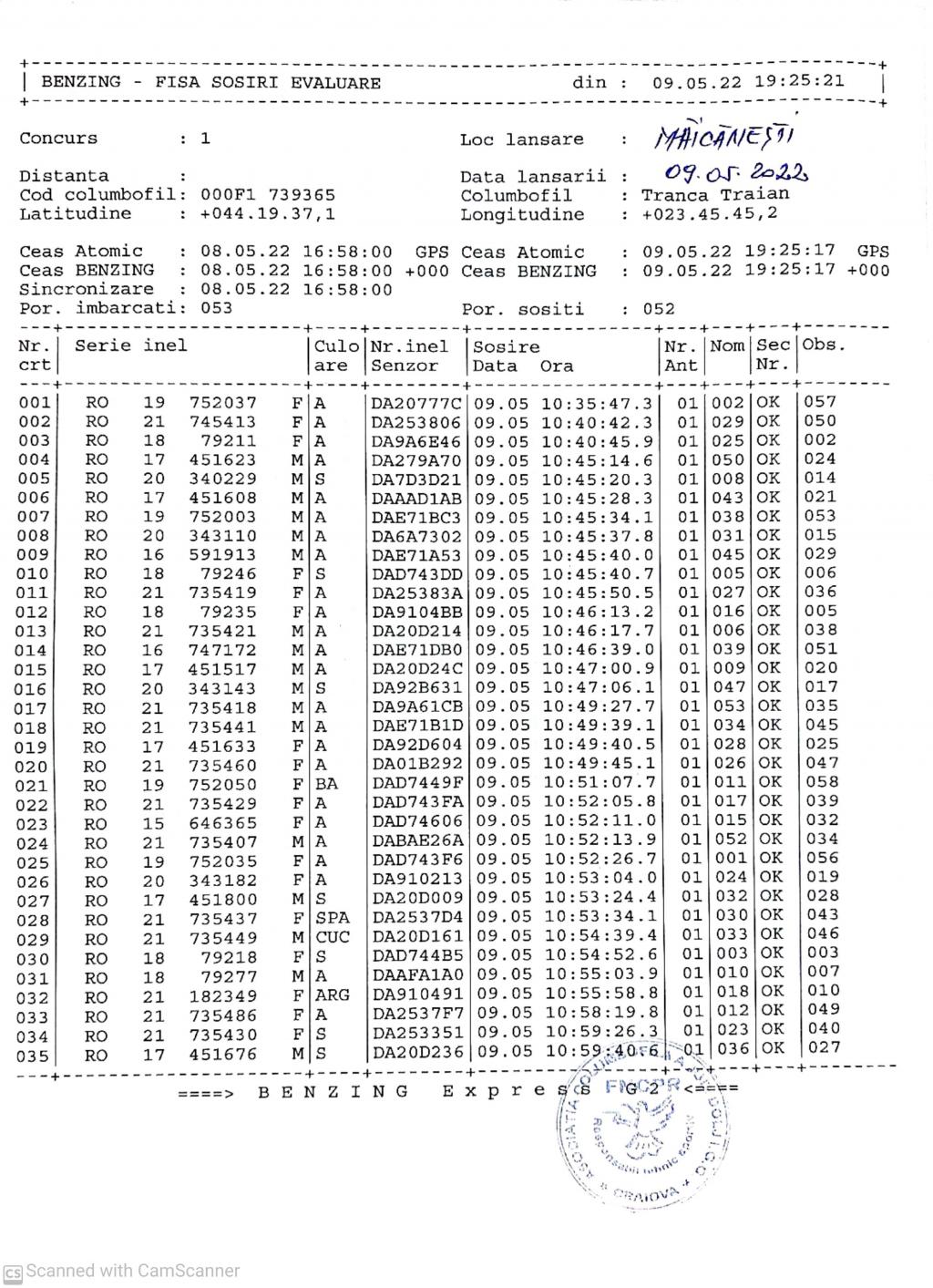 | 32 | Tranca Traian | DJ630 | Gold Pigeons Craiova | [IMB P0] [IMB P1] | [DES P0] [DES P1] |