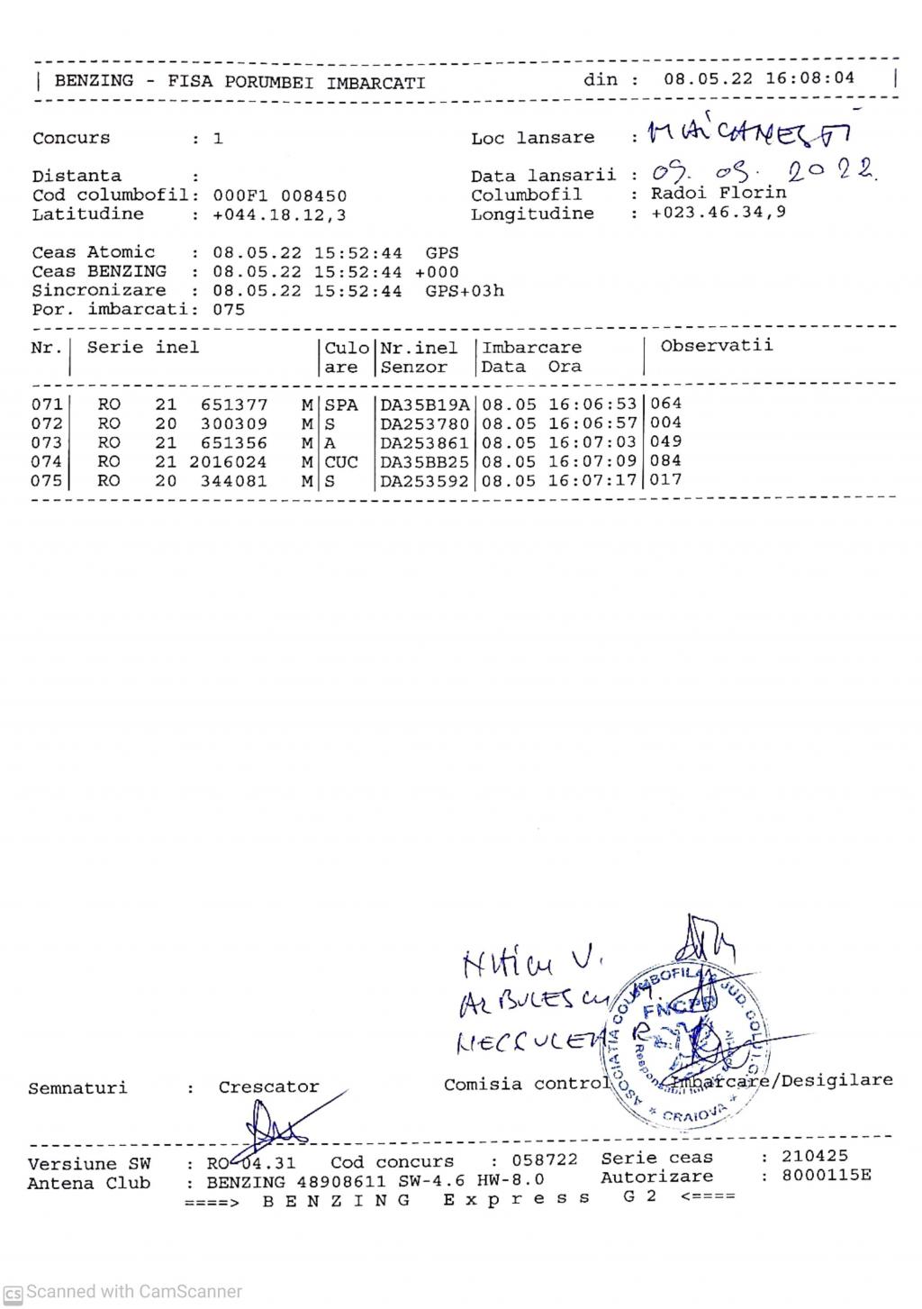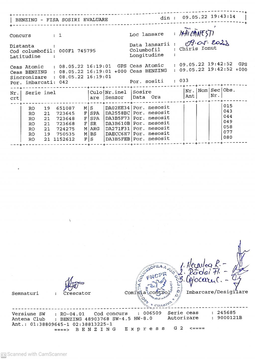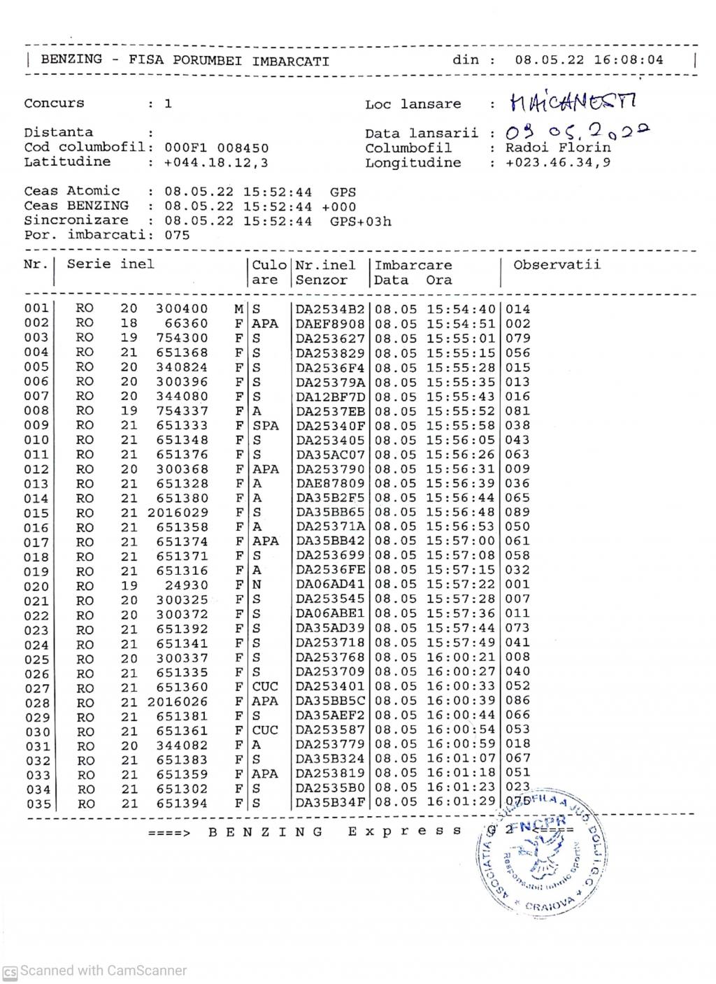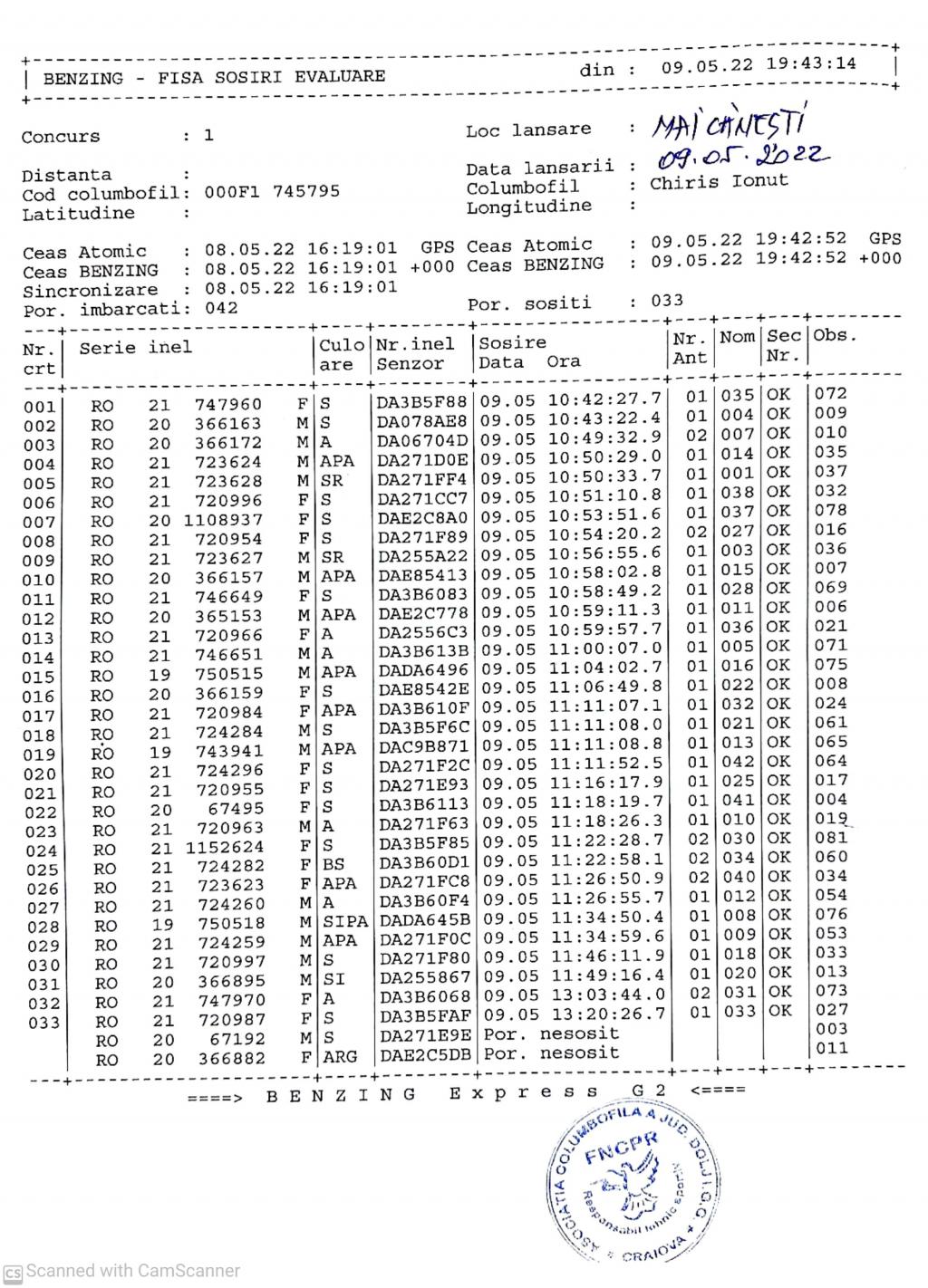 | 5 | Chiris Ionut | DJ784 | Gold Pigeons Craiova | [IMB P0] [IMB P1] | [DES P0] [DES P1] |
