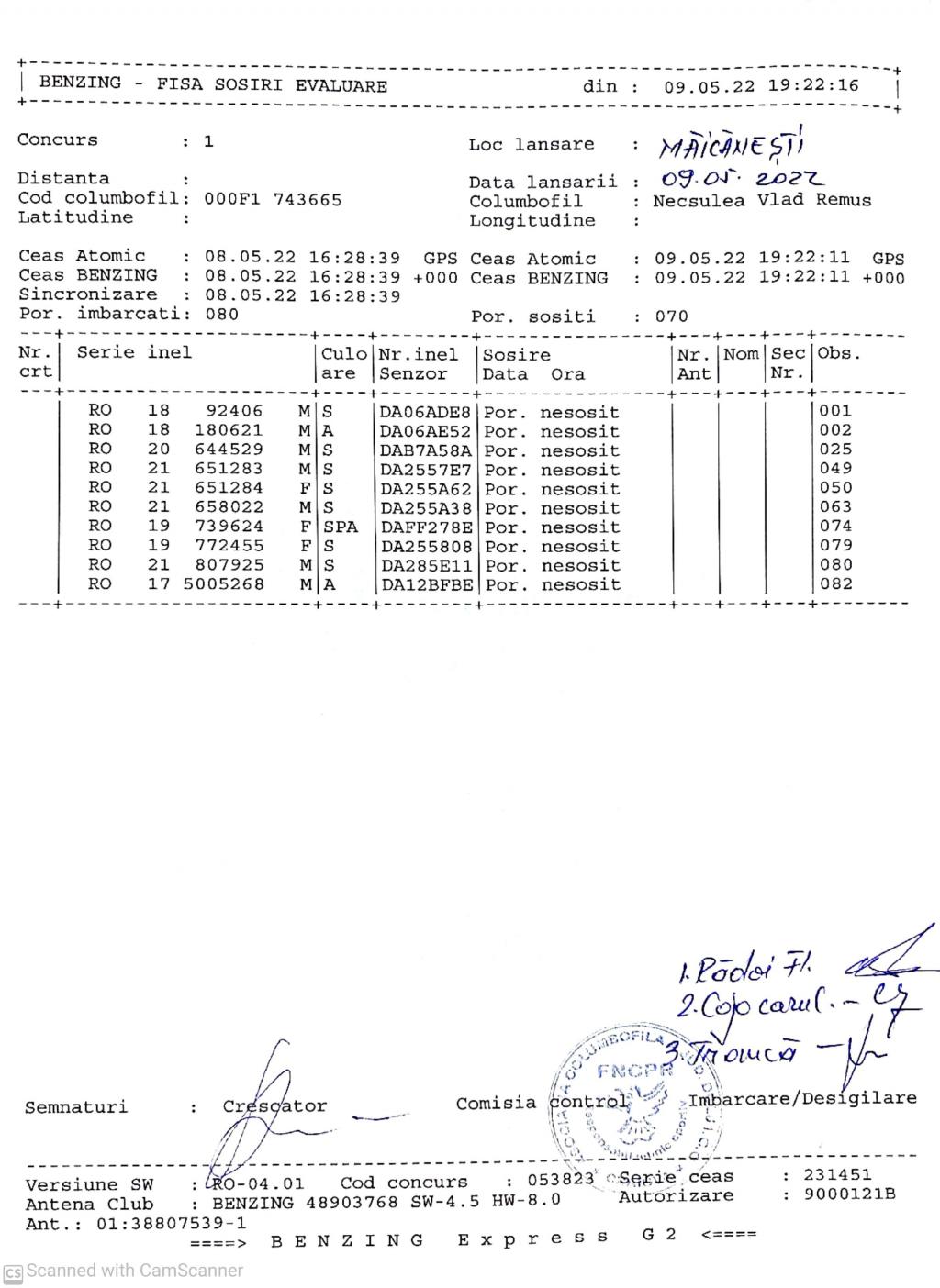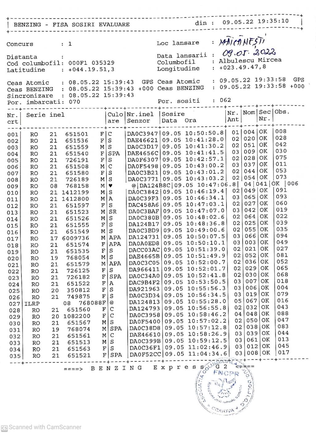 | 17 | Georgescu Vasile | DJ951 | Gold Pigeons Craiova |