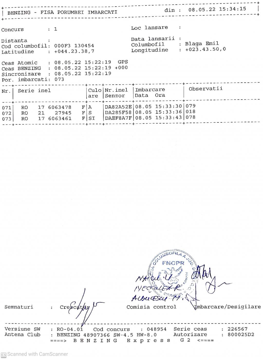 | 2 | Blaga Emil | DJ493 | Gold Pigeons Craiova | [IMB P0] [IMB P1] [IMB P2] | [DES P0] [DES P1] [DES P2] |