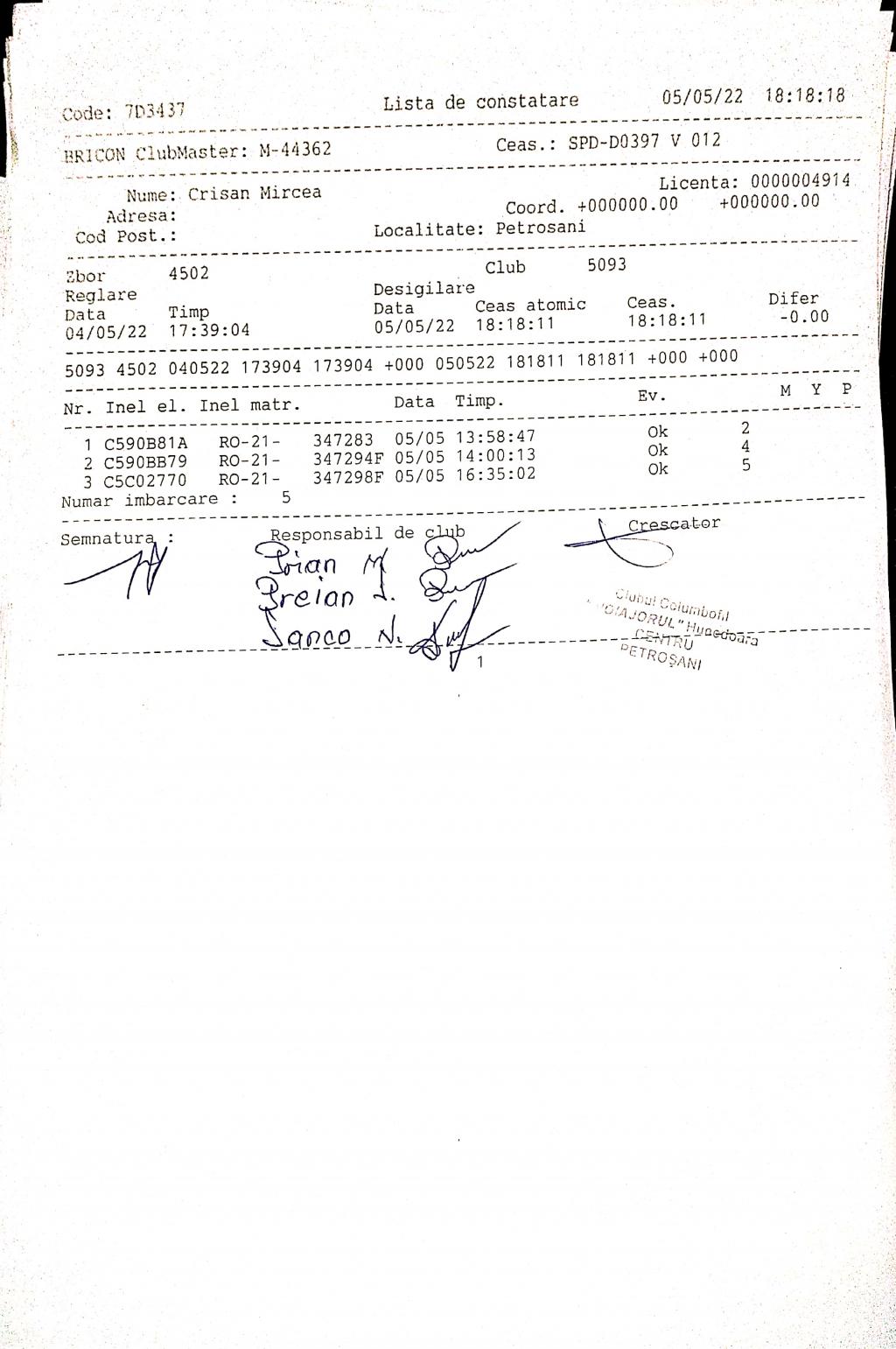 | 9 | Danco Nicolae | HD1345 | petrosani | [IMB P0] | [DES P0] |