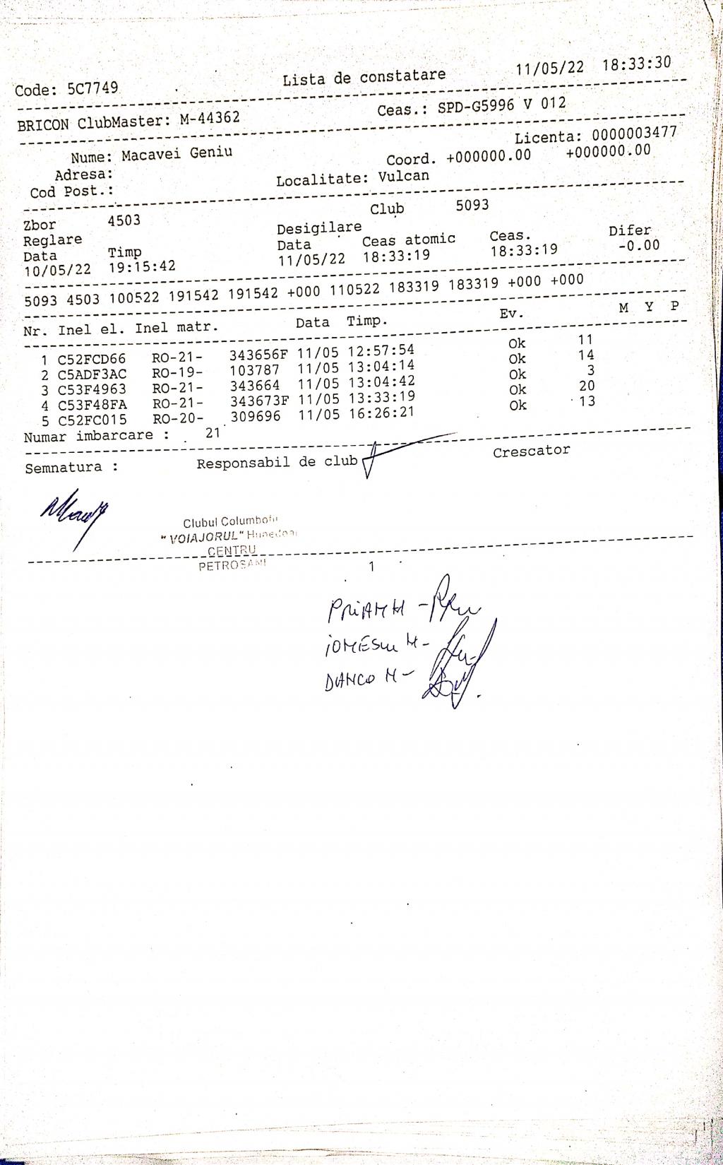 | 5 | Bardac Gheorghe Viorel | HD267 | petrosani | [IMB P0] | [DES P0] |