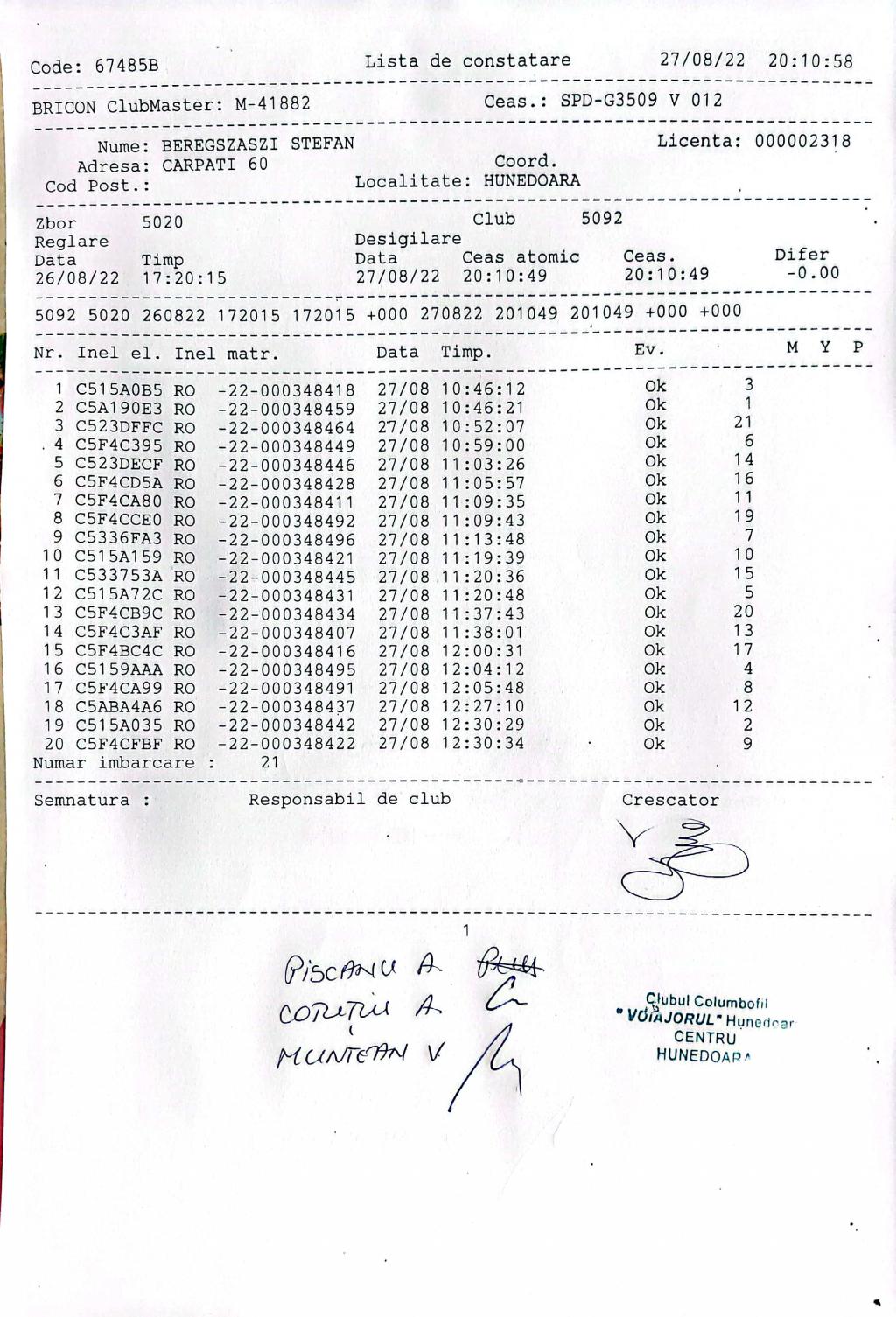 | 22 | Amihaesei Catalin-ioan | HD1405 | Hunedoara | [IMB P0] | |