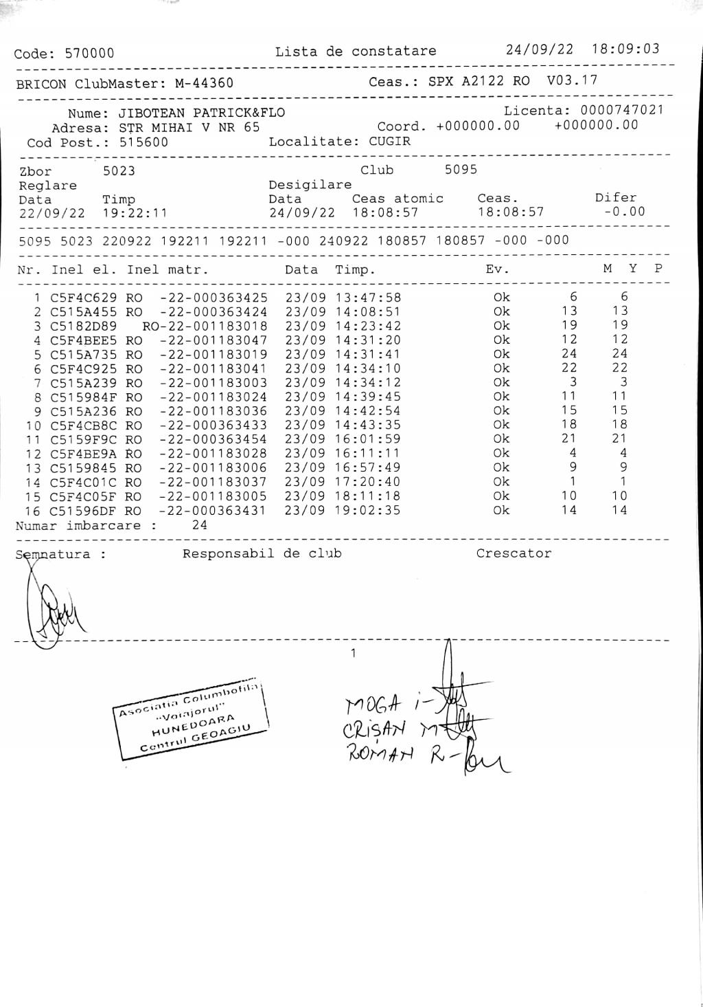 | 1 | Almasan Vasile + Ionut + Alin | HD1009 | BRAD |